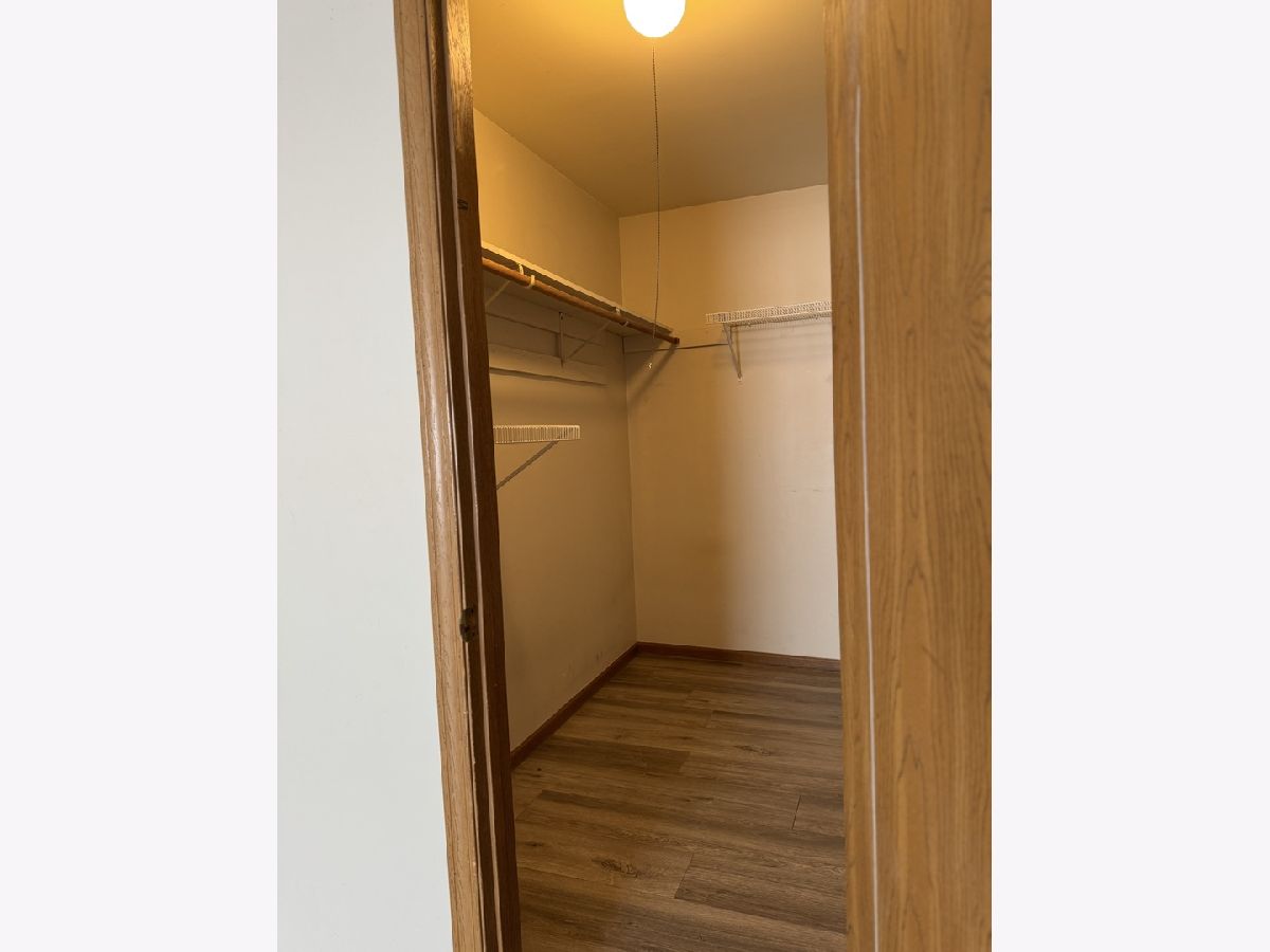 Lovely & spacious 2nd floor with 1 car detached garage unit with laminate wood floor & painted throughout; new installed kitchen cabinets & counters tops, 2 bedrooms, 2 baths, glass sliding door to balcony; washer & dryer in unit; walk-in closet in primary bedroom; very clean & neutral decor; move-in condition; 2 stop lights away easy access to I-355, 6 minutes away to downtown train station, 3 stop light away to Rt. 53, 4-5 miles to Rt. 83.