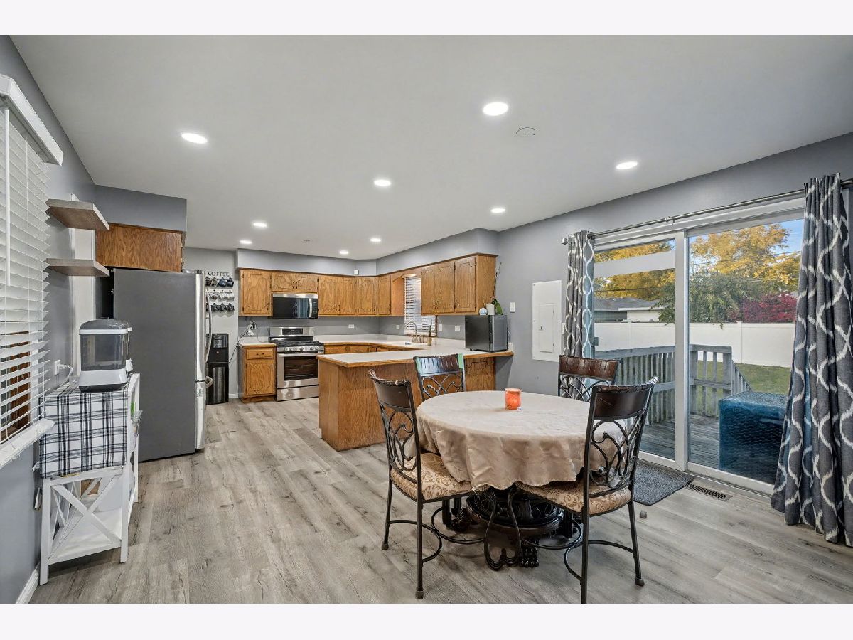 Welcome to this beautifully maintained ranch style home in Crest Hill, offering true maintenance free living and exceptional updates throughout. From the moment you arrive, the charming curb appeal and inviting covered front porch set the tone for what awaits inside. Step through and enter the open layout featuring brand new luxury vinyl plank flooring and freshly painted interiors. The spacious kitchen is the heart of the home, filled with natural light and designed for effortless everyday living. You'll love the oak cabinetry, generous countertop space, breakfast bar, pantry, and large dining area, perfect for hosting family and friends. Both bathrooms feature skylights, adding a touch of warmth and brightness. New fixtures and flooring continue throughout, giving the home a fresh, move in ready feel. Wait until you see the spacious backyard ready to entertain al your guests, yet still provides privacy with the 6 ft. fence recently added. Conveniently located near shopping, restaurants, and major highways, this home delivers comfort, style, and unbeatable convenience. Come take a look, your search may just end right here! Please exclude the detached garage as part of the lease.
