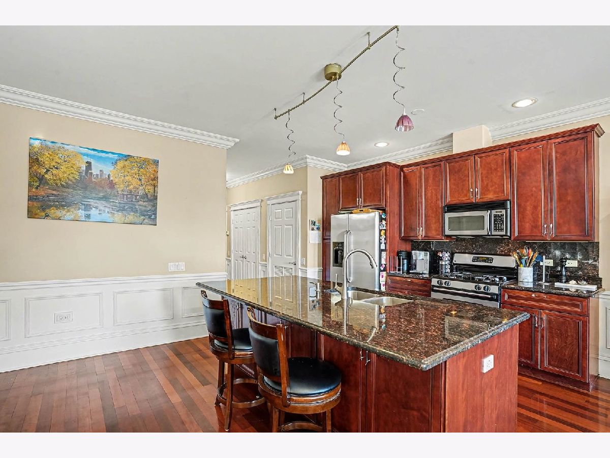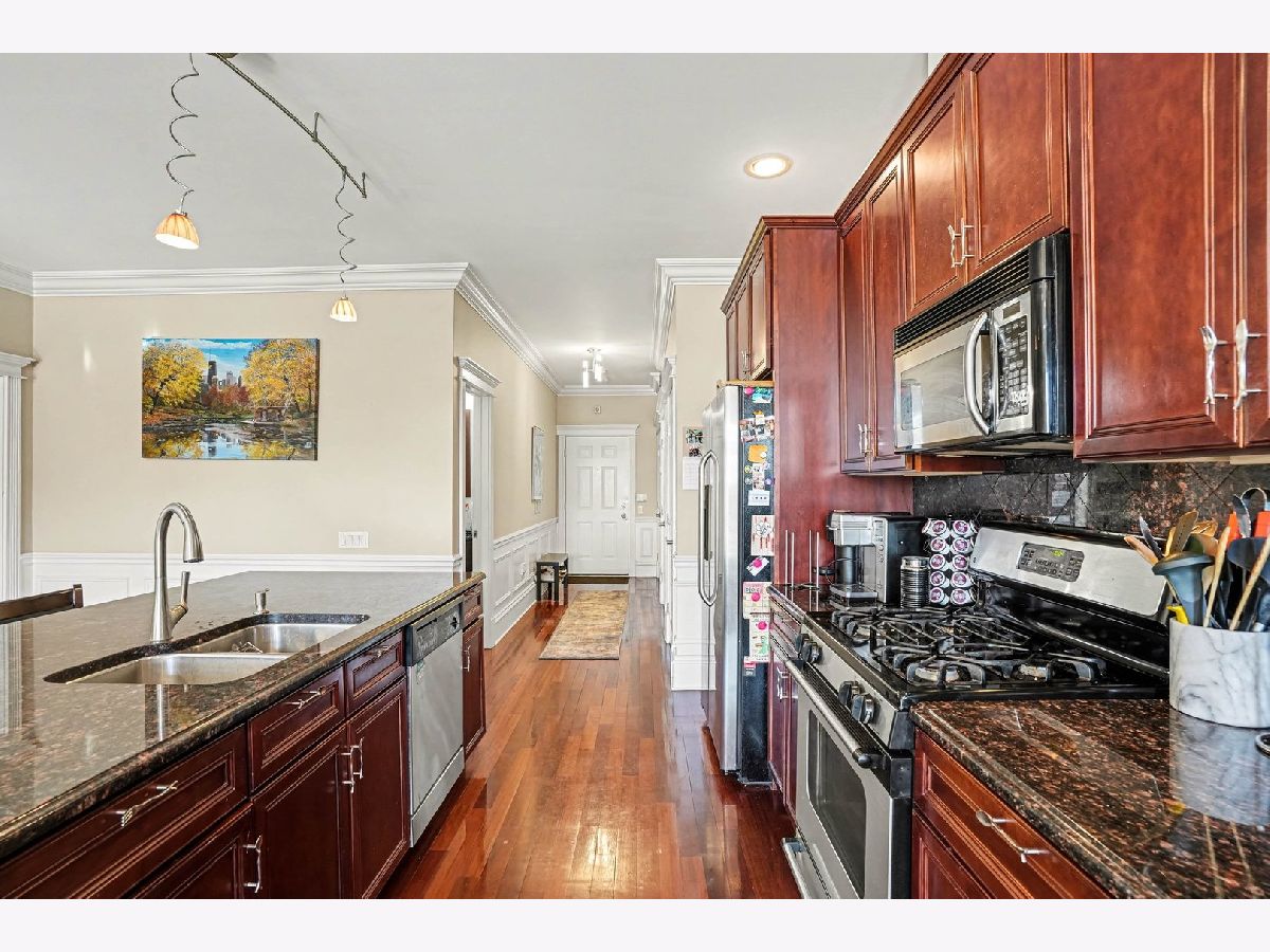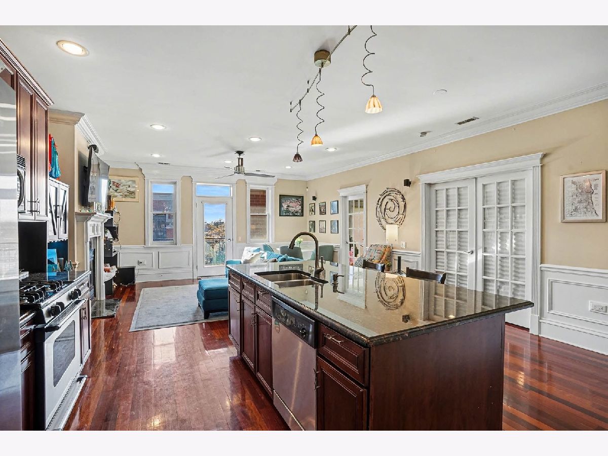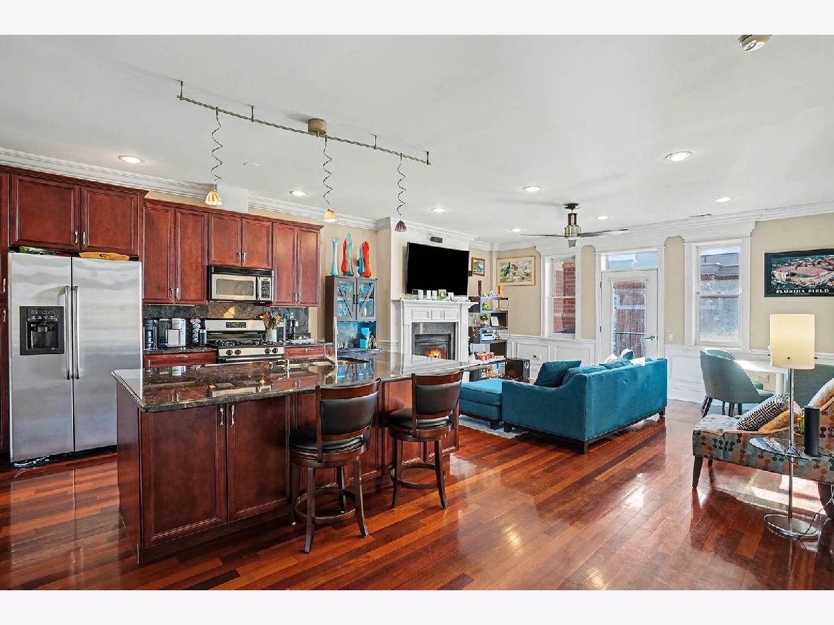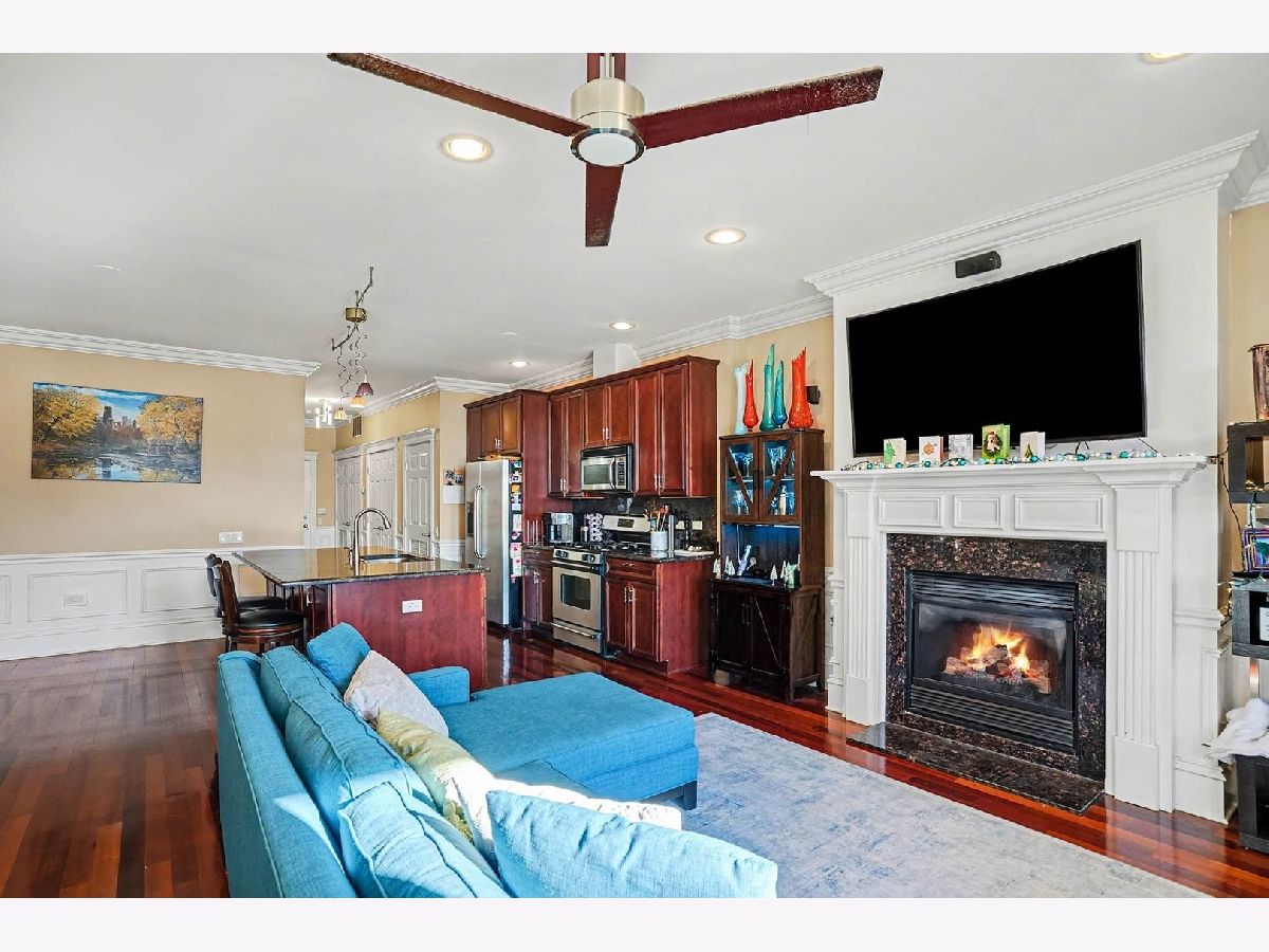 Discover this stunning 3-bedroom, 2-bath condominium for RENT in the heart of Roscoe Village. Step inside to gorgeous Brazilian cherry hardwood floors that flow throughout the entire unit, creating a warm and elegant foundation. The chef's kitchen is a true highlight, boasting sleek granite countertops, beautiful cherry cabinets, and a large island with breakfast bar-perfect for casual meals, entertaining, or culinary creations. The spacious living area features a cozy fireplace (with a TV mounted above included for your use), built-in surround sound speakers in the living room, master bedroom, and master bath for an immersive audio experience. Step out onto the huge private balcony, complete with a grill-ideal for summer barbecues, morning coffee, or just unwinding. The generous master suite is a retreat in itself, with a large wall-to-wall walk-in closet and a spa-like ensuite bathroom featuring a relaxing Jacuzzi tub, separate shower, and additional surround sound speakers. Additional highlights include in-unit laundry (assumed modern convenience), plus exclusive building amenities: your own sectioned-off area on the rooftop deck with breathtaking Chicago skyline views, private heated indoor parking, elevator access, secure building entrance, and a dedicated bicycle room. Available March 1st, in this highly sought-after location-close to parks, public transit, shops, and the lively Roscoe Street scene. Don't miss this rare opportunity to live in luxury in one of Chicago's most vibrant and welcoming neighborhoods!