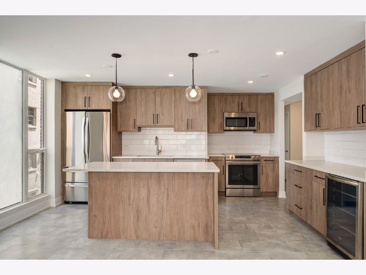 Available 6/1 possibly sooner. Recently rehabbed unit in boutique elevator building! Spacious 2 bed, 2 bath unit in a prime location! Open floorplan. Large living space with plenty of room for living and dining. Kitchen features all stainless steel appliances, beverage fridge, quartz countertops and tile backsplash, new custom cabinetry, dishwasher, garbage disposal and island with breakfast bar. Both bedrooms can accommodate a king sized bed and furniture. Hardwood floors throughout. Custom closet organizers. Washer/Dryer in unit. Garage and outdoor parking available. Building features an elevator, gym, rooftop deck with lake views, community room, package room, and updated lobby. Entry door system is Butterfly and the unit doors are electronic Latch locks. Perfect location steps from the lake, parks, Michigan ave, restaurants, shopping, etc. A+