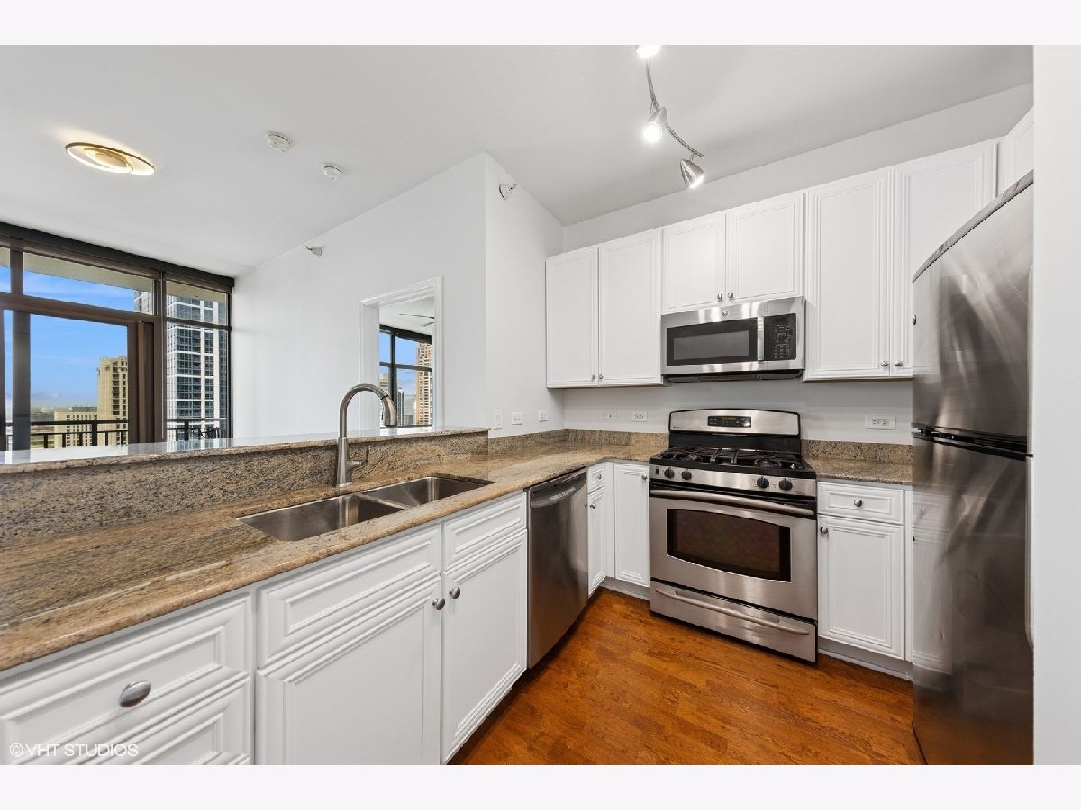 Recently Renovated, Bright, spacious, and perfectly positioned in the heart of the South Loop-welcome to Museum Park Place! This stunning 2 bed, 2 bath condo offers a split floor plan with floor-to-ceiling windows, and spectacular city views you'll love coming home to. The open-concept kitchen features white cabinets, granite countertops, a breakfast bar, and flows seamlessly into the living/dining room combo, ideal for entertaining. Step out onto your large private balcony with stunning city views-ideal for your morning coffee or sunset wine. The second bedroom is perfect for guests, a home office, or a roommate setup-flexible living at its best. Enjoy the convenience of in-unit laundry, generous closet space, and hardwood floors throughout the main living area. This luxury, full-amenity building offers everything: 24-hour door staff, penthouse party room with amazing views and wraparound balcony, fitness center, clubhouse lounge and game room, outdoor pool and sundeck, bike room, on-site dry cleaners and convenience store-it's city living at its finest! Located minutes from Grant Park, Millennium Park, the lakefront trail, Museum Campus, CTA, dining, shopping, and more. All utilities included in assessments except electric. Tandem garage parking additional $250/mo. This South Loop gem delivers location & lifestyle - schedule your private tour today!