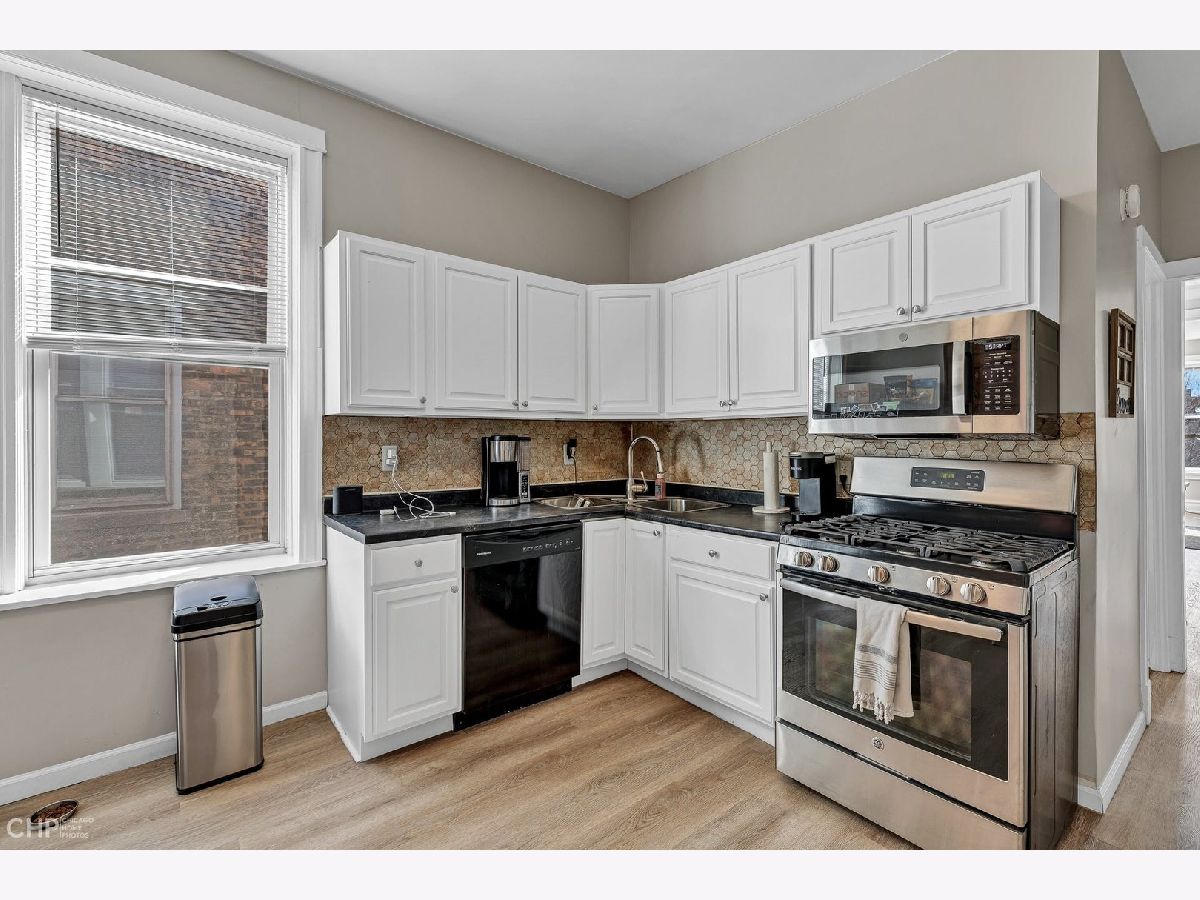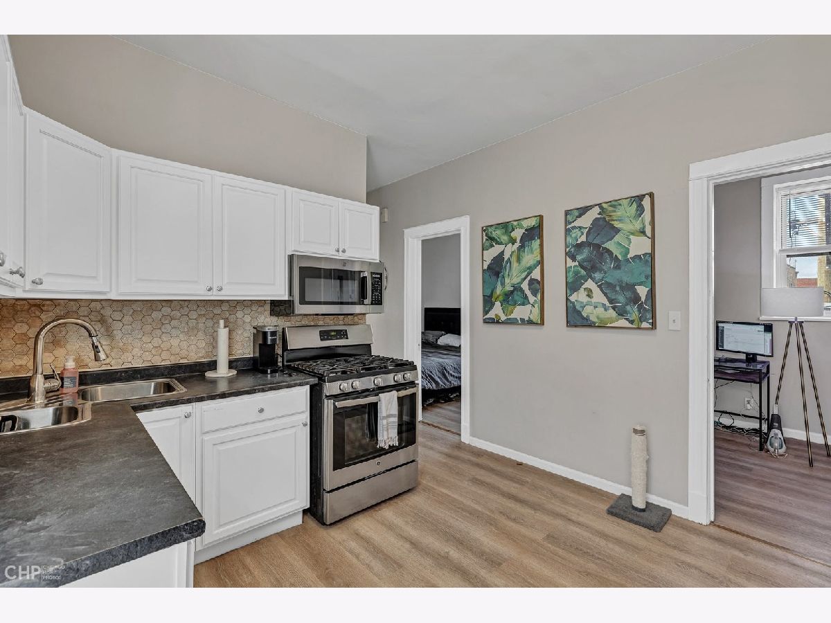 This 3-bedroom, 1-bath apartment is located on a quiet, tree-lined street in Ukrainian Village. It features freshly painted walls, an updated kitchen with stainless steel appliances, including a dishwasher, and a renovated bathroom. The unit has central air conditioning, hardwood floors, and plenty of natural light. There's also a nice-sized deck off the back, plus storage and a washer and dryer in the unit. Two of the bedrooms can accommodate queen-size beds, while the third bedroom is suitable for a full bed or can be used as an office. The location is fantastic, as it is close to Division Street. The apartment is available starting May 1st. Please note that the living room and dining room photos are from the first-floor unit, and the floors in the third-floor unit are a lighter shade. As the unit is currently tenant-occupied, please provide 48 hours' notice for any showings.