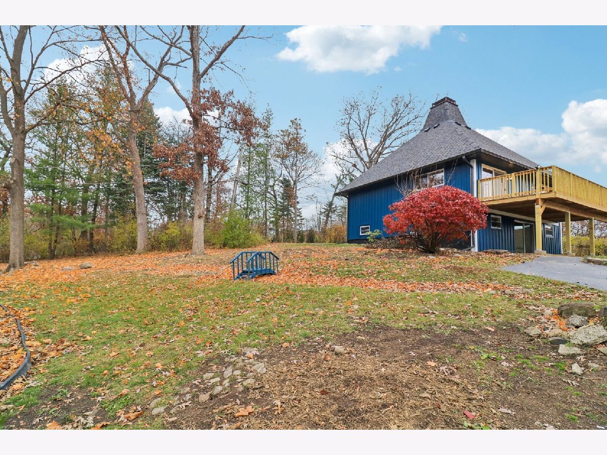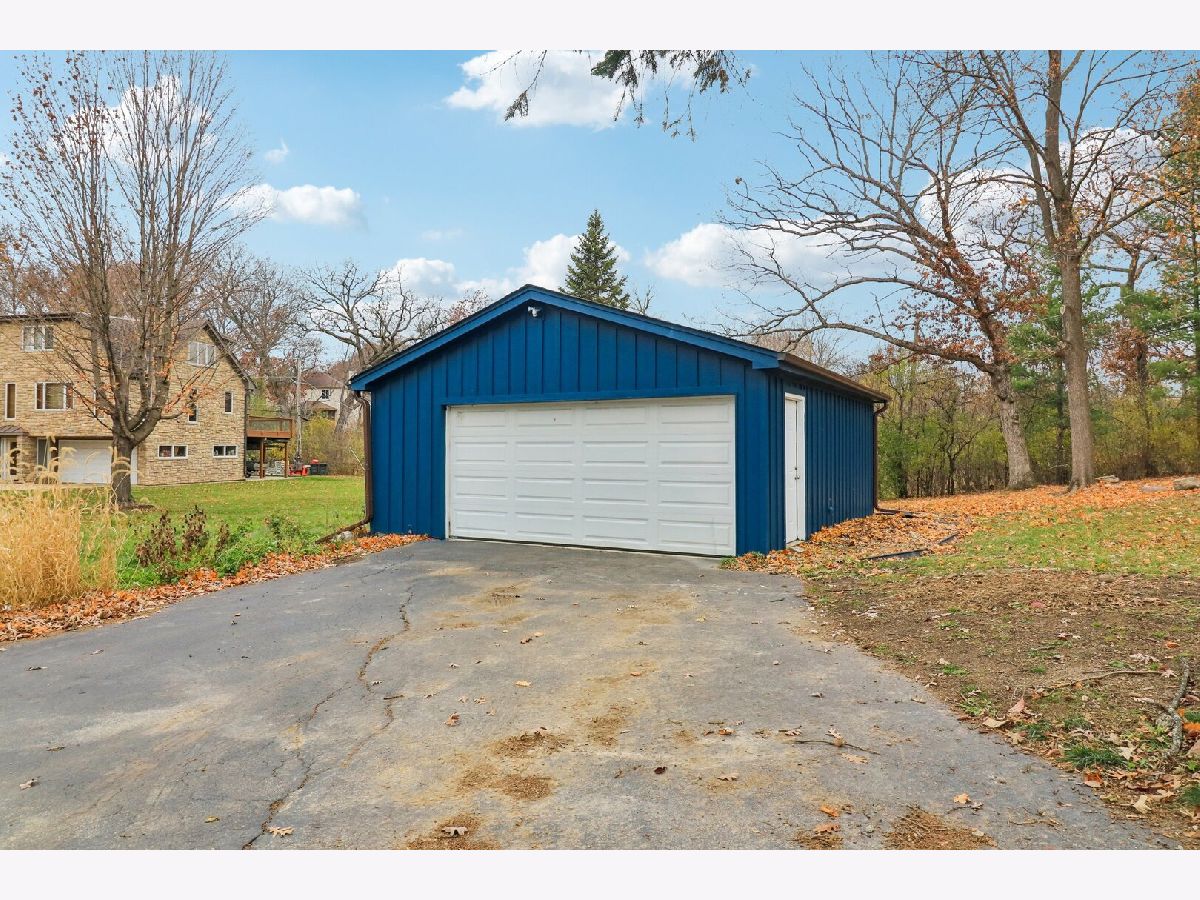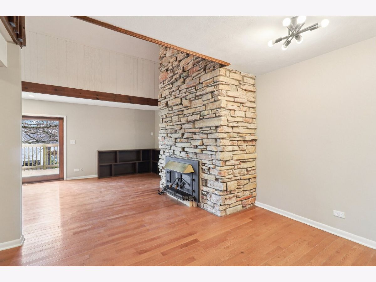 Welcome to this stunning three-level, 4-bedroom, 2.5-bath lakefront home-an inviting hidden gem offering peace and privacy on a spacious 0.5-acre lot. Hardwood floors run throughout the home, leading you past the staircase into a bright, open living and dining area highlighted by a striking two-story stone fireplace. Sliding doors open to a newly built balcony-perfect for relaxing and taking in the views. The adjacent galley kitchen features brand-new stainless steel appliances and abundant new cabinetry. Just off the living room, the sun-filled primary bedroom also offers sliding doors to the balcony and an updated ensuite bath with beautiful double sinks. Also on the main level, a spacious second bedroom features a connecting door to the primary bathroom. A second updated bathroom is conveniently situated on the main floor near the foyer. Upstairs, you'll find the third large, remodeled bedroom with a walk-in closet and new flooring. Head down to the walkout lower level, offering even more living space with an added bedroom, a cozy brick fireplace in a recreation room, and a full bath, all with new flooring. The adjacent unfinished area provides ample storage and a laundry space with a brand-new in-unit washer and dryer, plus an extra refrigerator. A 2.5-car detached garage adds convenience, and the home also includes a brand-new septic tank. Located in the highly sought-after Lake Zurich school district-schedule your showing today!