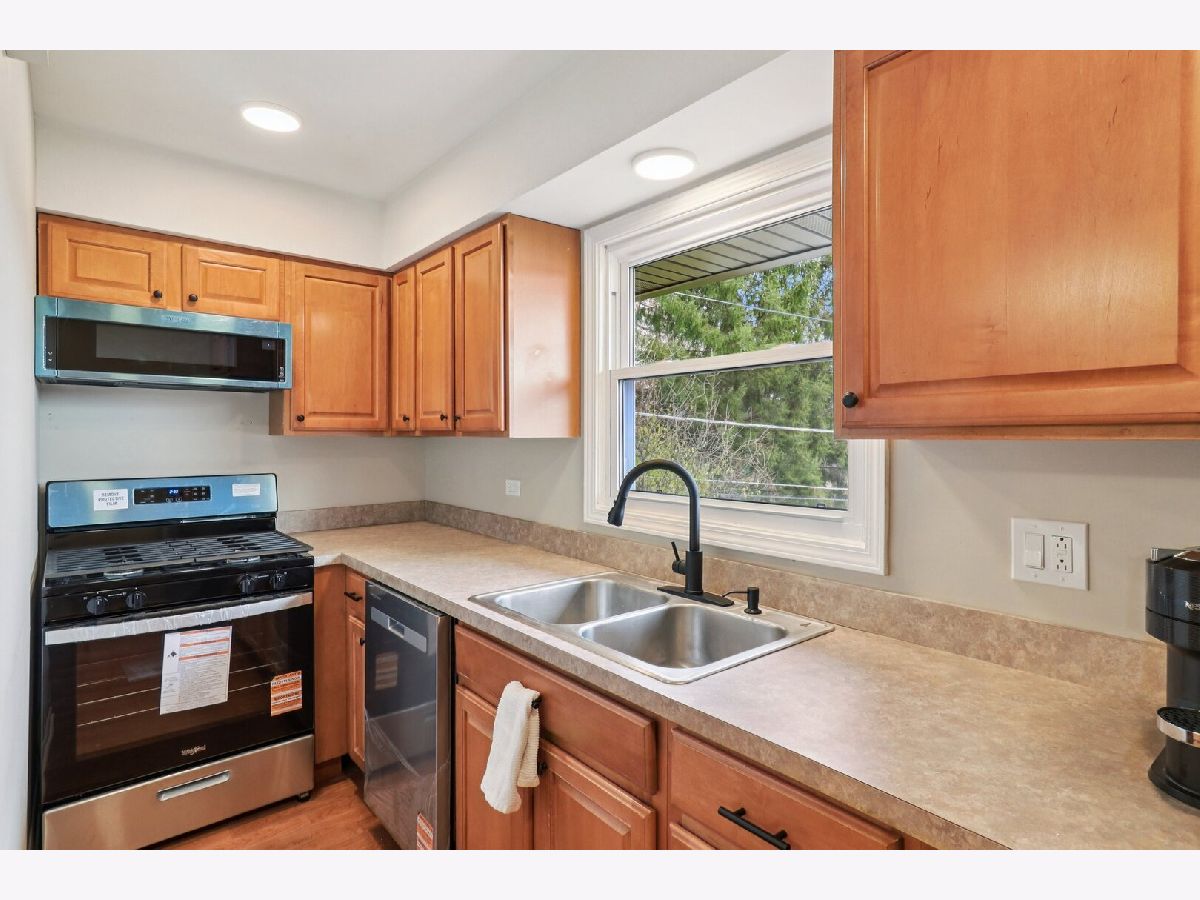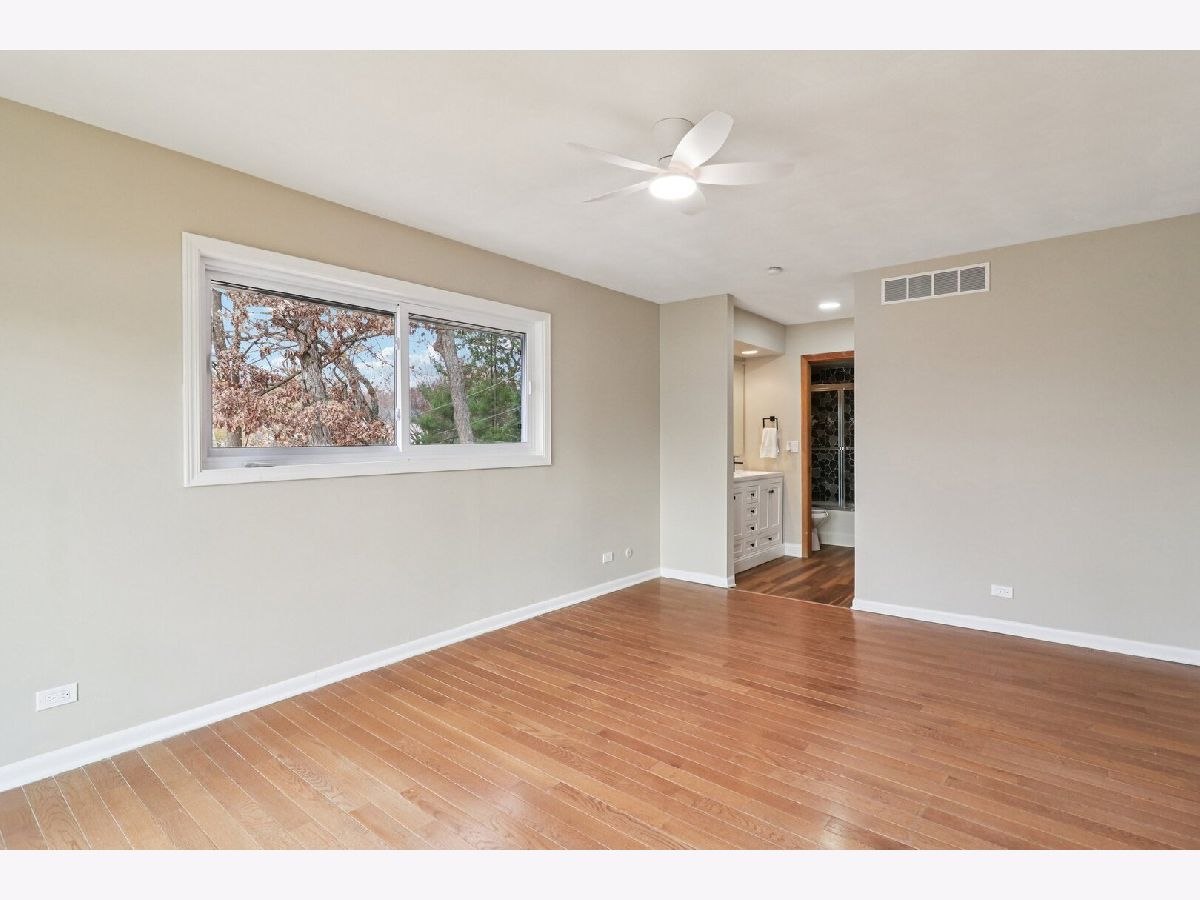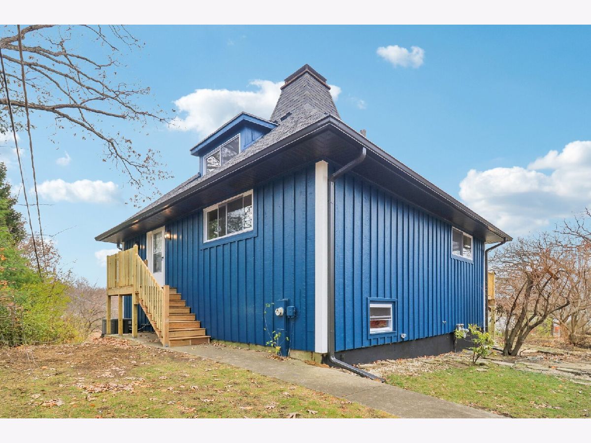 Welcome to this stunning three-level, 4-bedroom, 2.5-bath lakefront home-an inviting hidden gem offering peace and privacy on a spacious 0.5-acre lot. Hardwood floors run throughout the home, leading you past the staircase into a bright, open living and dining area highlighted by a striking two-story stone fireplace. Sliding doors open to a newly built balcony-perfect for relaxing and taking in the views. The adjacent galley kitchen features brand-new stainless steel appliances and abundant new cabinetry. Just off the living room, the sun-filled primary bedroom also offers sliding doors to the balcony and an updated ensuite bath with beautiful double sinks. Also on the main level, a spacious second bedroom features a connecting door to the primary bathroom. A second updated bathroom is conveniently situated on the main floor near the foyer. Upstairs, you'll find the third large, remodeled bedroom with a walk-in closet and new flooring. Head down to the walkout lower level, offering even more living space with an added bedroom, a cozy brick fireplace in a recreation room, and a full bath, all with new flooring. The adjacent unfinished area provides ample storage and a laundry space with a brand-new in-unit washer and dryer, plus an extra refrigerator. A 2.5-car detached garage adds convenience, and the home also includes a brand-new septic tank. Located in the highly sought-after Lake Zurich school district-schedule your showing today!
