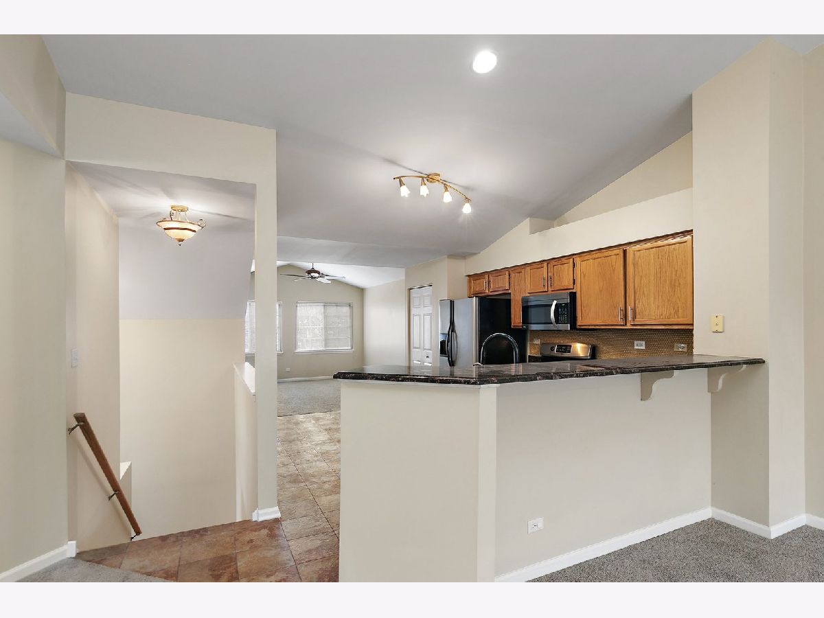 Light, bright open floor plan. Beautiful Townhome with great flow and dramatic vaulted ceilings. The balcony overlooks the open grass area in the back. Fireplace in the living room, slider to the balcony area. Foyer on main level with a coat closet, direct access from garage. Perfect in immaculate condition. Granite kitchen counters, Stainless Steel appliances, ceramic tile, an eat-in breakfast with a bar seating area. Freshly painted, new light fixtures, Great location behind The Home Dept in the heart of Schaumburg. Nothing to do but move in!
