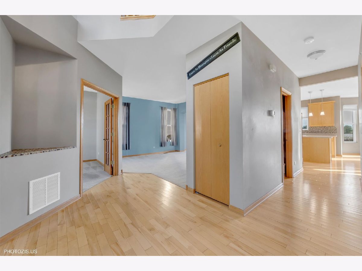 Beautifully Lit Home with Modern Finishes! Gorgeous 4-bedroom, 2.5-bath home with a 3-car garage and elegant modern finishes throughout. Features a grand two-story foyer, 42" maple cabinets, and stunning hardwood floors flowing through the kitchen and bayed breakfast room. The spacious master suite includes a huge walk-in closet and a luxurious bath with double sinks and a separate shower. The first floor offers formal living and dining rooms, a private den with French doors, and an extra-large mud/laundry room. Enjoy the scenic walking path and open area behind the home. A huge unfinished basement provides endless possibilities. Located within the highly acclaimed Plainfield North High School district! Ready for Immediate Occupancy!