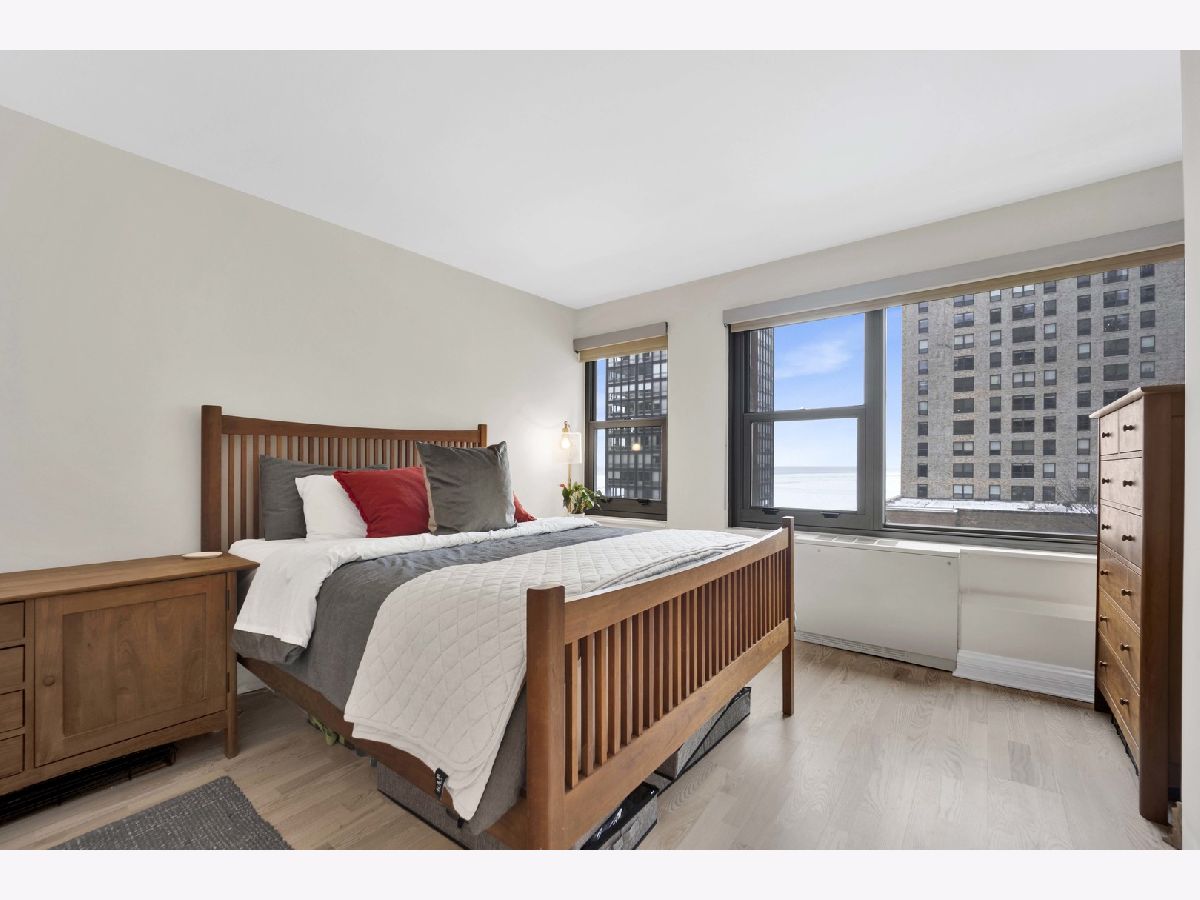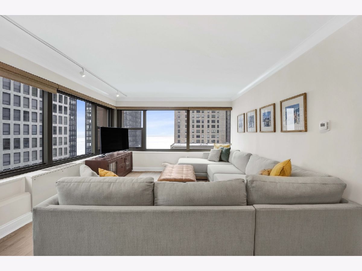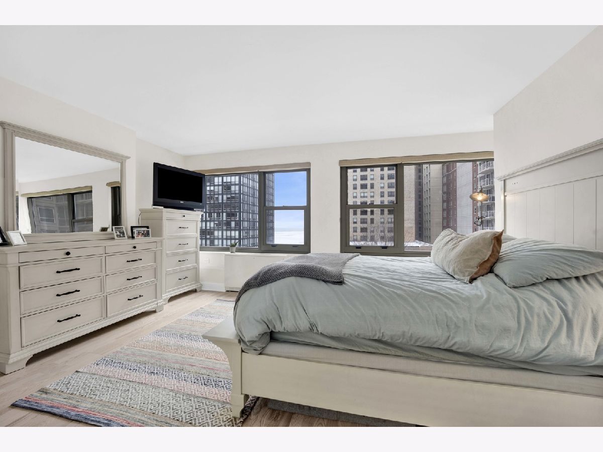 Welcome home! This professionally designed and updated corner 3BR/2BA condominium in desirable Streeterville/Gold Coast with breathtaking north-facing lake views of Lake Michigan. Thoughtfully architected for luxury living, featuring an open floor plan with seamless great room and dining flow. Interior upgrades include custom wood cabinetry, quartz countertops, renovated baths, and a designer kitchen with built-in pantry/coffee bar. Expansive wood doors enhance the refined interior. This is the most ideal floor plan! Full-service luxury building steps from Chicago's finest dining, shopping, lakefront, and cultural attractions. No in-unit washer/dryer; laundry facilities in building.