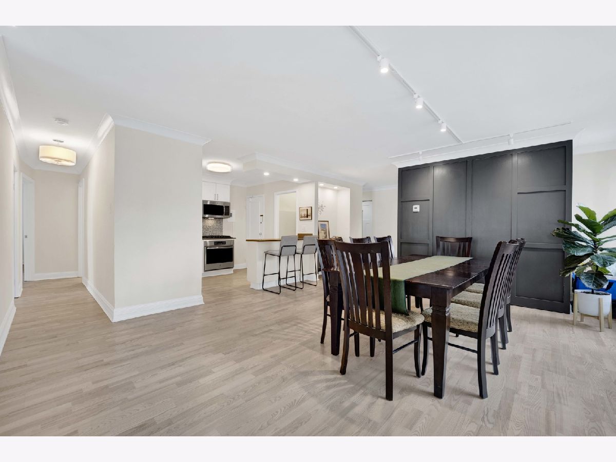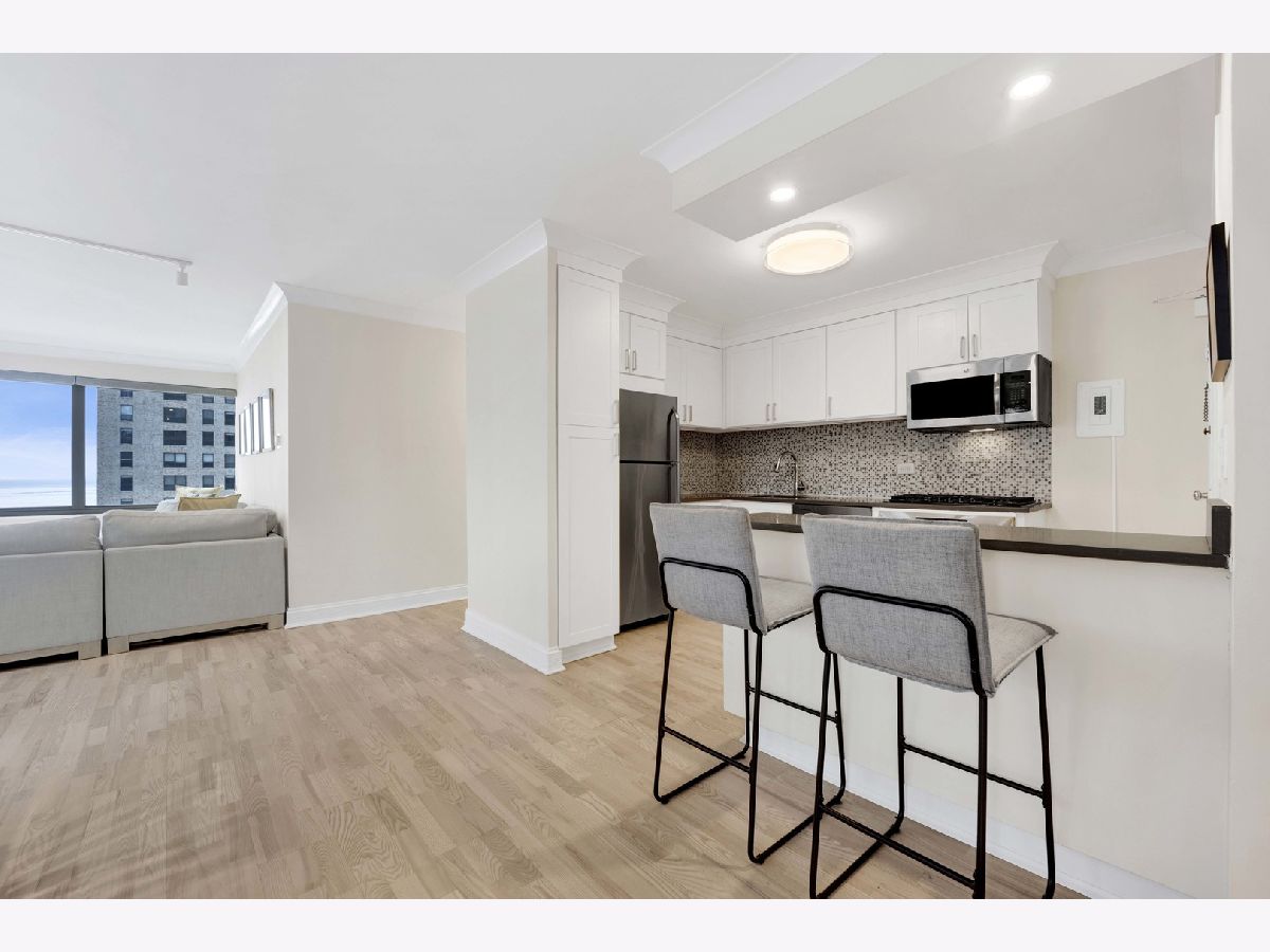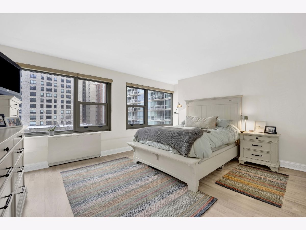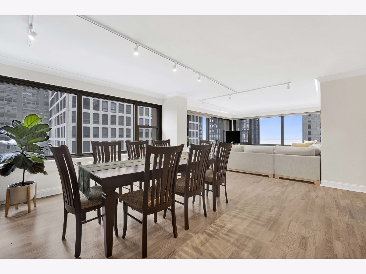 Welcome home! This professionally designed and updated corner 3BR/2BA condominium in desirable Streeterville/Gold Coast with breathtaking north-facing lake views of Lake Michigan. Thoughtfully architected for luxury living, featuring an open floor plan with seamless great room and dining flow. Interior upgrades include custom wood cabinetry, quartz countertops, renovated baths, and a designer kitchen with built-in pantry/coffee bar. Expansive wood doors enhance the refined interior. This is the most ideal floor plan! Full-service luxury building steps from Chicago's finest dining, shopping, lakefront, and cultural attractions. No in-unit washer/dryer; laundry facilities in building.