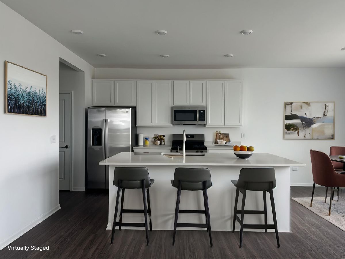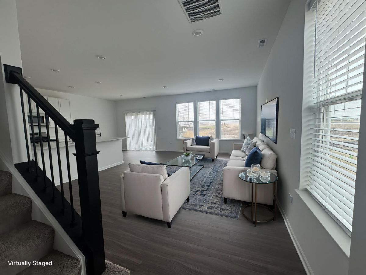 Brand New Construction corner-unit duplex in Autumn Glen, Plainfield offering 3 bedrooms, 2.1 bathrooms, and a 2-car garage with a bright, open-concept layout. The corner location provides additional windows, abundant natural light, and enhanced ventilation. The main level features a spacious great room flowing into the dining area and a modern kitchen with large island and breakfast bar, quartz countertops, 42" cabinets, stainless steel appliances, and luxury vinyl plank flooring. The second level includes two secondary bedrooms, a full bath, convenient laundry room, and a private owner's suite with walk-in closet and en-suite bath. Community amenities include open green space, walking paths, a park with tot lot, native prairie area, and central courtyard. Ideally located just ~6 minutes to elementary and middle schools, ~7 minutes to high school, and ~5 minutes to Town Hall and Post Office, with easy access to downtown Plainfield shopping, dining, and events.