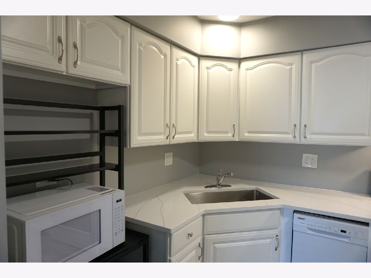 Sunny first floor location. No stairs to enter building or unit. First floor condo with white kitchen and new quartz counters in kitchen and bathroom. Convenient to 53/90/Woodfield. Freshly painted for you in light gray. Floors recently replaced in gray/brown vinyl planks. New microwave. Curtains professionally cleaned. Handicapped parking available. Bike room key available. Large storage unit on first floor. Close to 53. Close to grocery, library. Living room, dining room and bedroom are all virtually staged. Full wall closet in bedroom with over 15 feet of closet space. Linen closet in bathroom. 2 parking spaces. Tenant pays electric and cable. 2 laundry rooms on floor 2 and 3. Come see this gem today.