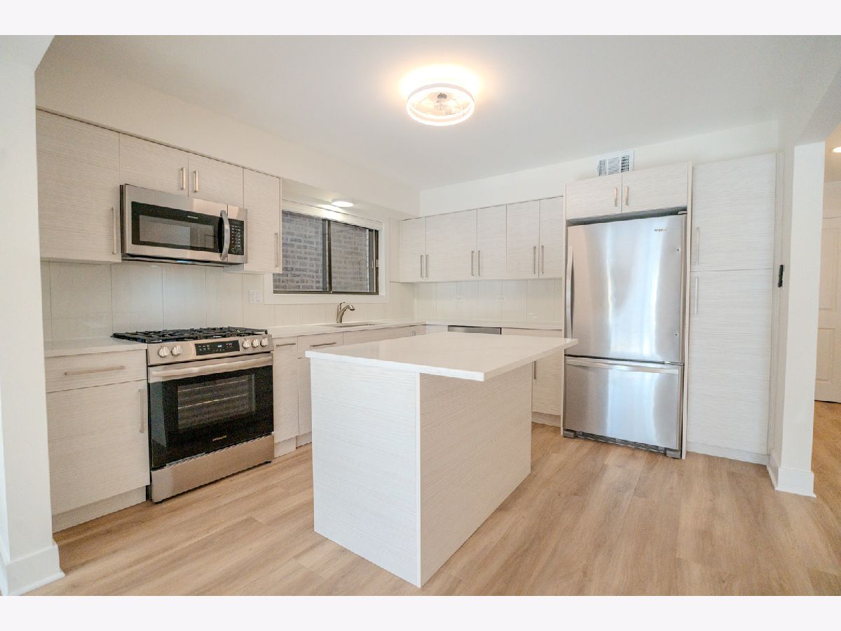 Welcome to this fully renovated 3-bedroom, 2.5-bath duplex-down offering over 1,500 square feet in a quiet Budlong Woods location, adjacent to Lincoln Square. The entire unit has been completely renovated and features brand new finishes throughout, including luxury vinyl flooring, a modern kitchen with quartz countertops, new cabinetry, stainless steel appliances, and new, contemporary bathrooms. The spacious layout includes a raised first-floor living level with a front balcony and southern exposures, along with a lower level offering an additional ~400 square feet of flexible living space, ideal for a family room, home office, or both. The unit also offers good closet space with built-in racks, a private walk-in storage closet, and dedicated in-building laundry exclusive to the unit. One assigned uncovered parking space is included. Rent includes water, sewer, and trash; tenant pays gas, electric, and cable/internet. Central heat and air conditioning. Minimum 12-month lease required, with a 15-month lease preferred. Small dogs under 40 lbs considered with additional fee (sorry, no cats). Walking distance to Swedish Covenant Hospital, Galter Center, parks, shopping, and transit, with the North Shore Channel Trail and River Park nearby.