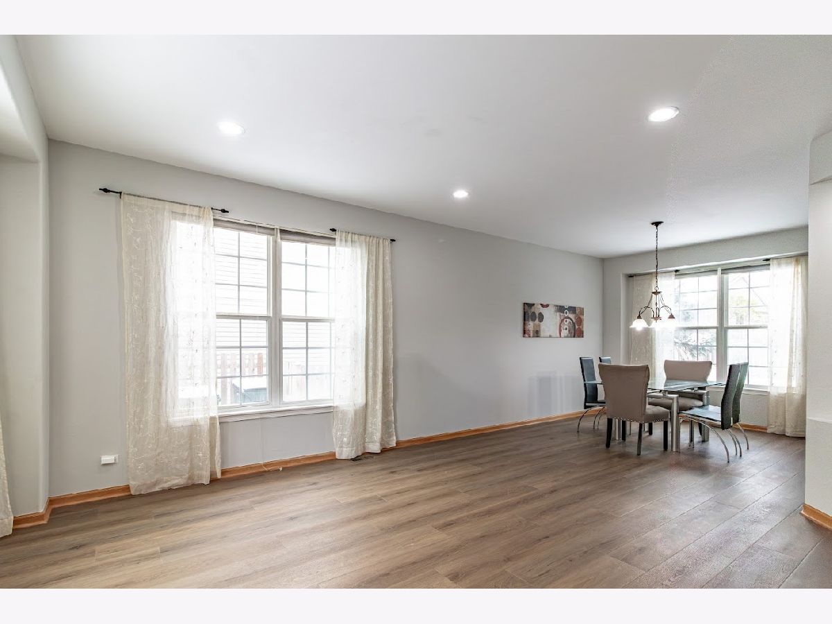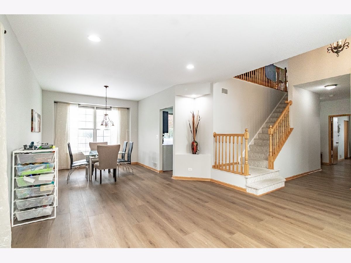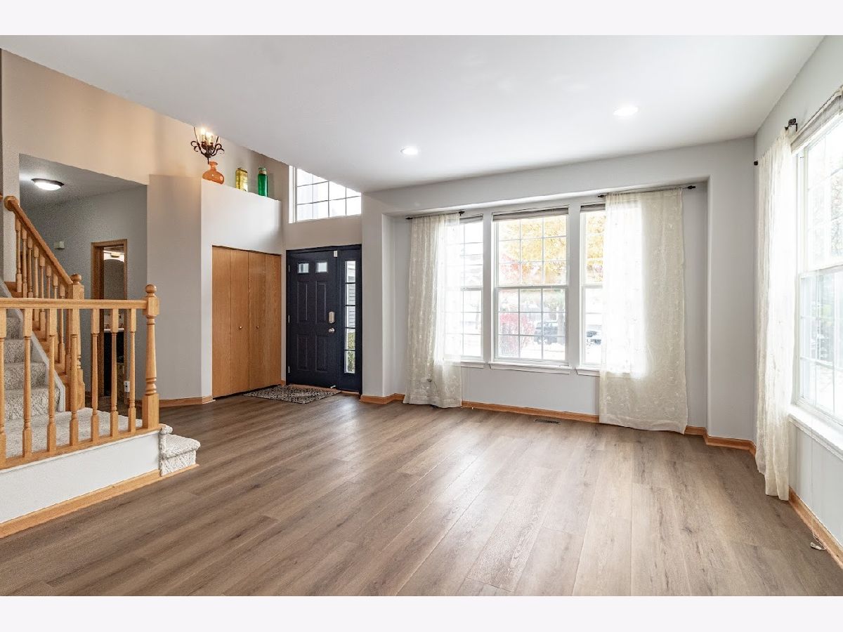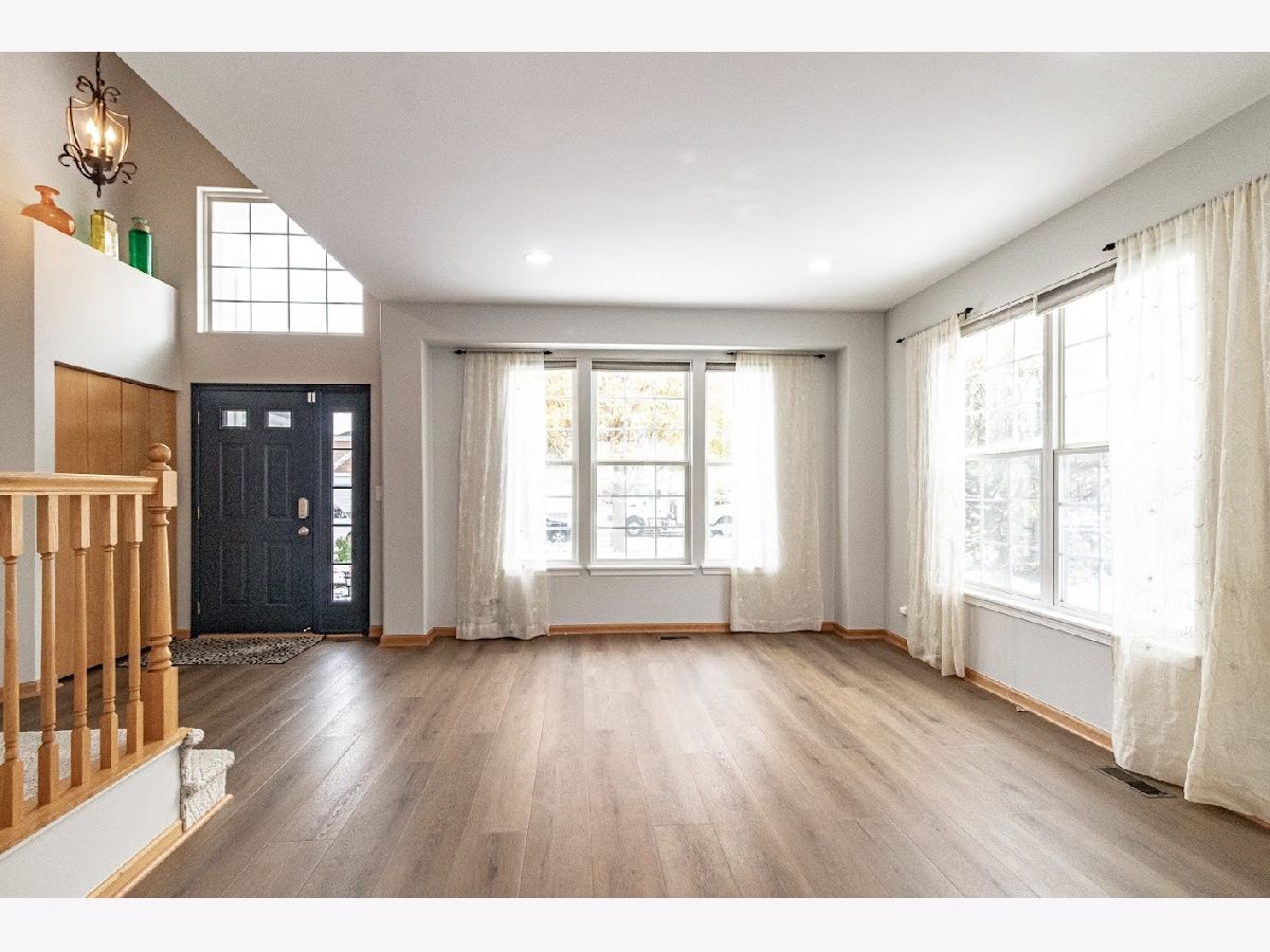 Available December 1st! Beautifully updated 4-bedroom, 2.5-bath home with a finished basement in a prime location near shopping, dining, and commuter routes. Recent upgrades include new main-level flooring (2025), fresh paint (2025), remodeled powder room (2025), updated upstairs hall bath (2025), and newer roof and siding (2021). Enjoy a bright 2-story foyer, an open eat-in kitchen with granite countertops and stainless steel appliances, and a dramatic 2-story family room with fireplace. The flexible main-level bedroom is perfect for guests or a home office. Upstairs, the vaulted primary suite features a private bath with soaking tub, plus two additional bedrooms and a shared hall bath.The finished basement offers a dry bar, storage, and a pool table for entertaining. Extras include a Tesla charger and free TruGreen lawn treatments. Located in highly rated District 73/73/120 schools. Move-in ready and lovingly maintained!