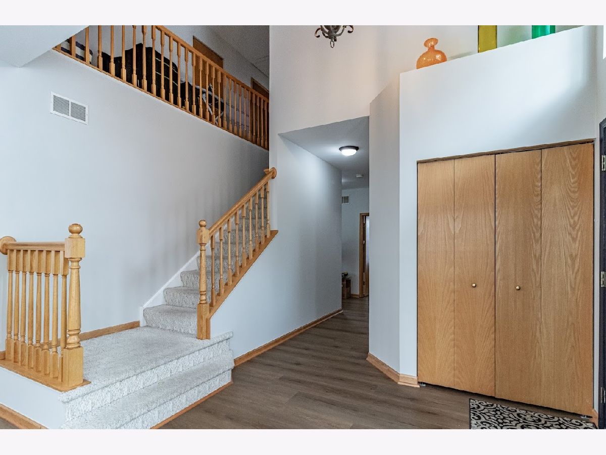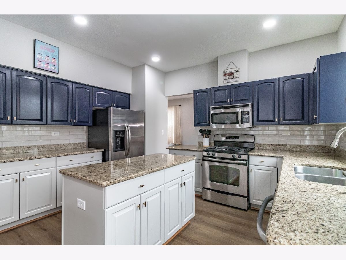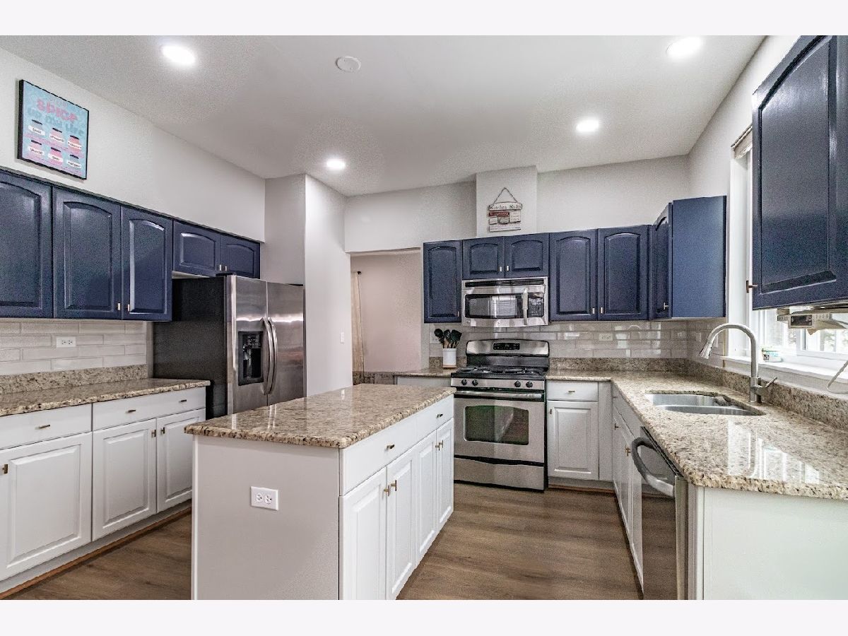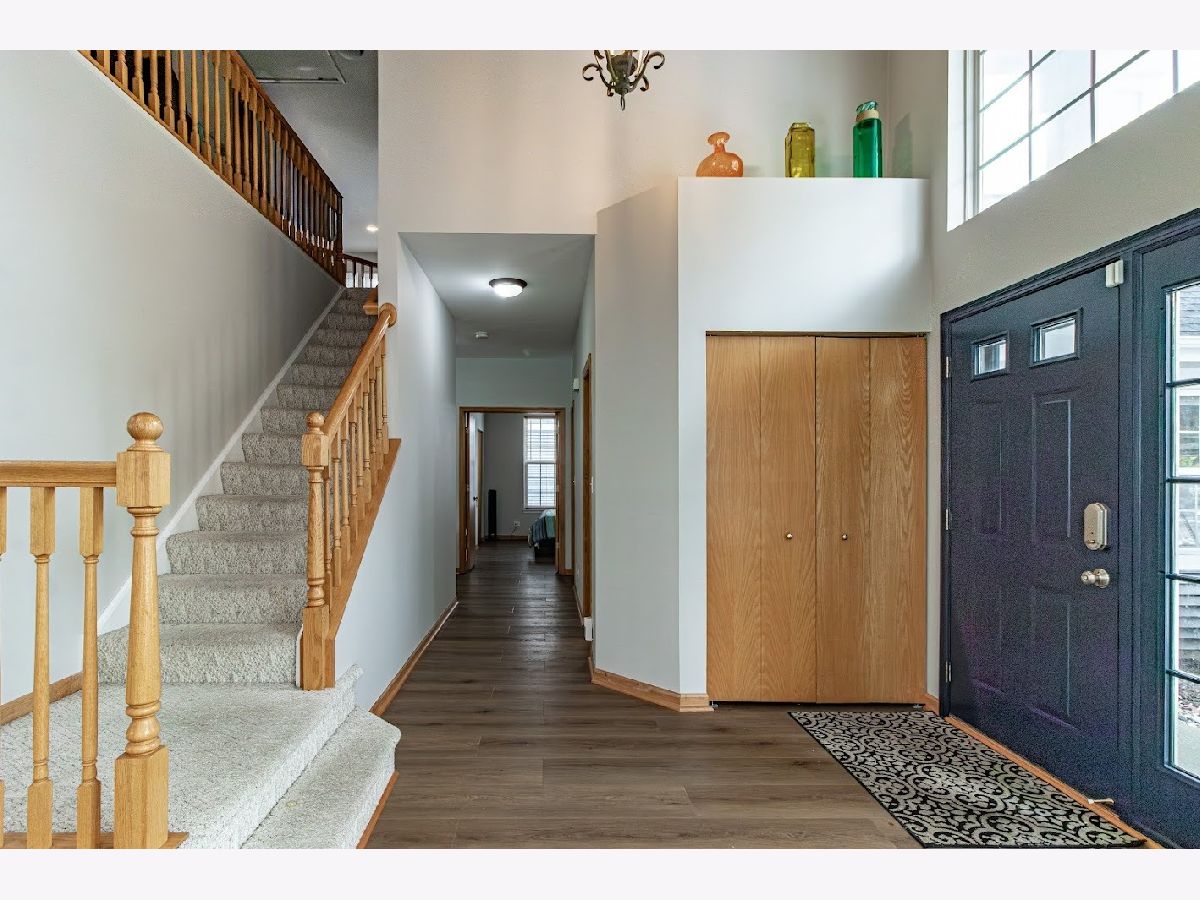 Available December 1st! Beautifully updated 4-bedroom, 2.5-bath home with a finished basement in a prime location near shopping, dining, and commuter routes. Recent upgrades include new main-level flooring (2025), fresh paint (2025), remodeled powder room (2025), updated upstairs hall bath (2025), and newer roof and siding (2021). Enjoy a bright 2-story foyer, an open eat-in kitchen with granite countertops and stainless steel appliances, and a dramatic 2-story family room with fireplace. The flexible main-level bedroom is perfect for guests or a home office. Upstairs, the vaulted primary suite features a private bath with soaking tub, plus two additional bedrooms and a shared hall bath.The finished basement offers a dry bar, storage, and a pool table for entertaining. Extras include a Tesla charger and free TruGreen lawn treatments. Located in highly rated District 73/73/120 schools. Move-in ready and lovingly maintained!