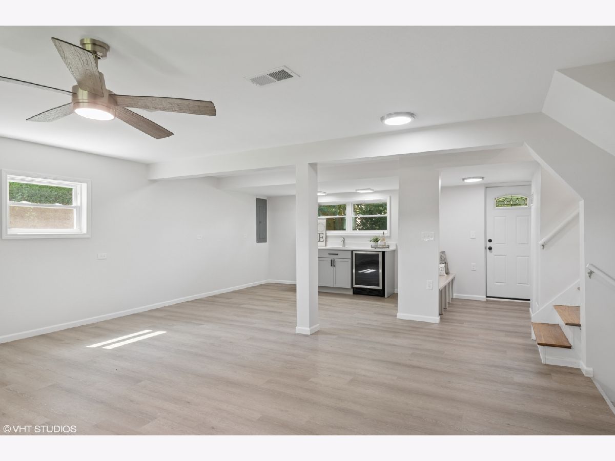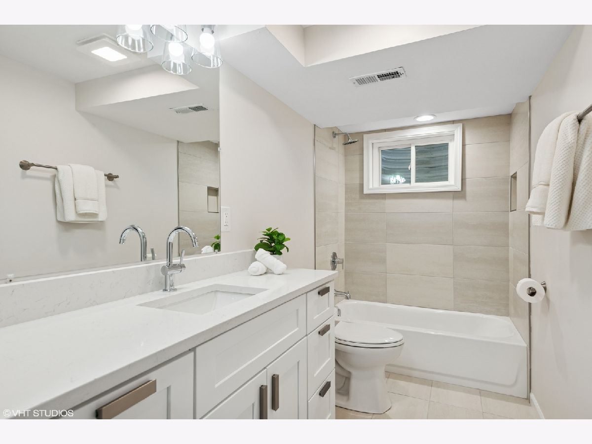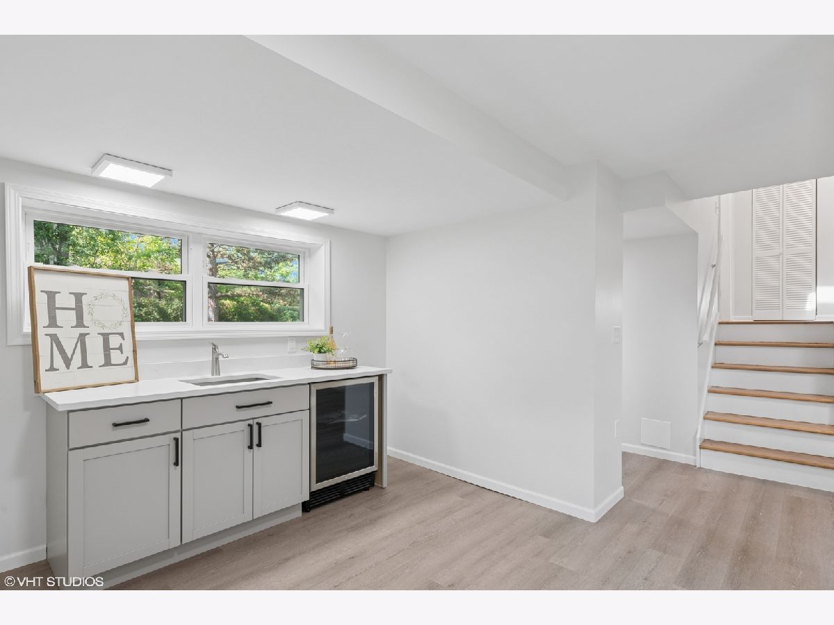 Step into timeless sophistication with this expertly renovated home, where intuitive design meets elevated living across four beautifully finished levels. From the moment you enter, the warm glow of hardwood flooring, a guest coat closet, and curated lighting create a sense of invitation and calm. The main level flows effortlessly-anchored by a luminous living room with a bay window, recessed lighting, and ceiling fan-into a dining area that opens through sliding glass doors to a private brick paver patio. The heart of the home is a chef-worthy kitchen outfitted with sleek porcelain tile flooring, shaker soft-close cabinetry, and a suite of Frigidaire stainless steel appliances including a five-burner gas cooktop and vent hood. A quartz island with seating for four offers the perfect perch for casual meals or spirited conversation. The adjacent main-level bedroom features hardwood floors, a ceiling fan, and double-door closet, while the full bath is richly appointed with a quartz vanity, tile-surround tub/shower with dual sprays, and a niche for modern convenience. Upstairs, a skylit landing leads to a serene primary suite with hardwood flooring, dual walk-in closets, and a spa bath complete with dual quartz vanities, porcelain and penny tile finishes, and a luxurious dual-spray shower. A secondary ensuite bedroom boasts its own chic bath with porcelain tile surround. The lower level is an entertainer's dream with a stylish family room featuring LVP flooring, a custom wet bar with quartz counters, Kohler sink, and Avanti beverage fridge-plus a mudroom with bench seating, coat hooks, and direct access to the backyard. The fully finished basement offers remarkable versatility with a spacious recreation room, fourth bedroom, bonus room, full bath with elegant tile finishes, dedicated laundry with Whirlpool washer/dryer and utility sink, and ample storage. With upgraded systems including a 200-amp electrical panel, Heil furnace with Aprilaire humidifier, new Rheem 75-gallon water heater (2025), and sump pump, this home delivers both form and function. A detached 2-car garage completes the picture. This is not just a home-it's a statement, where every level, finish, and fixture whispers, "you've arrived."