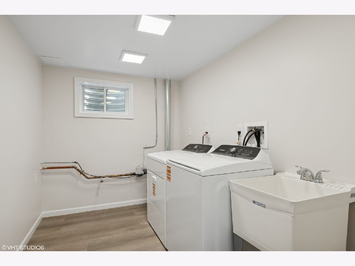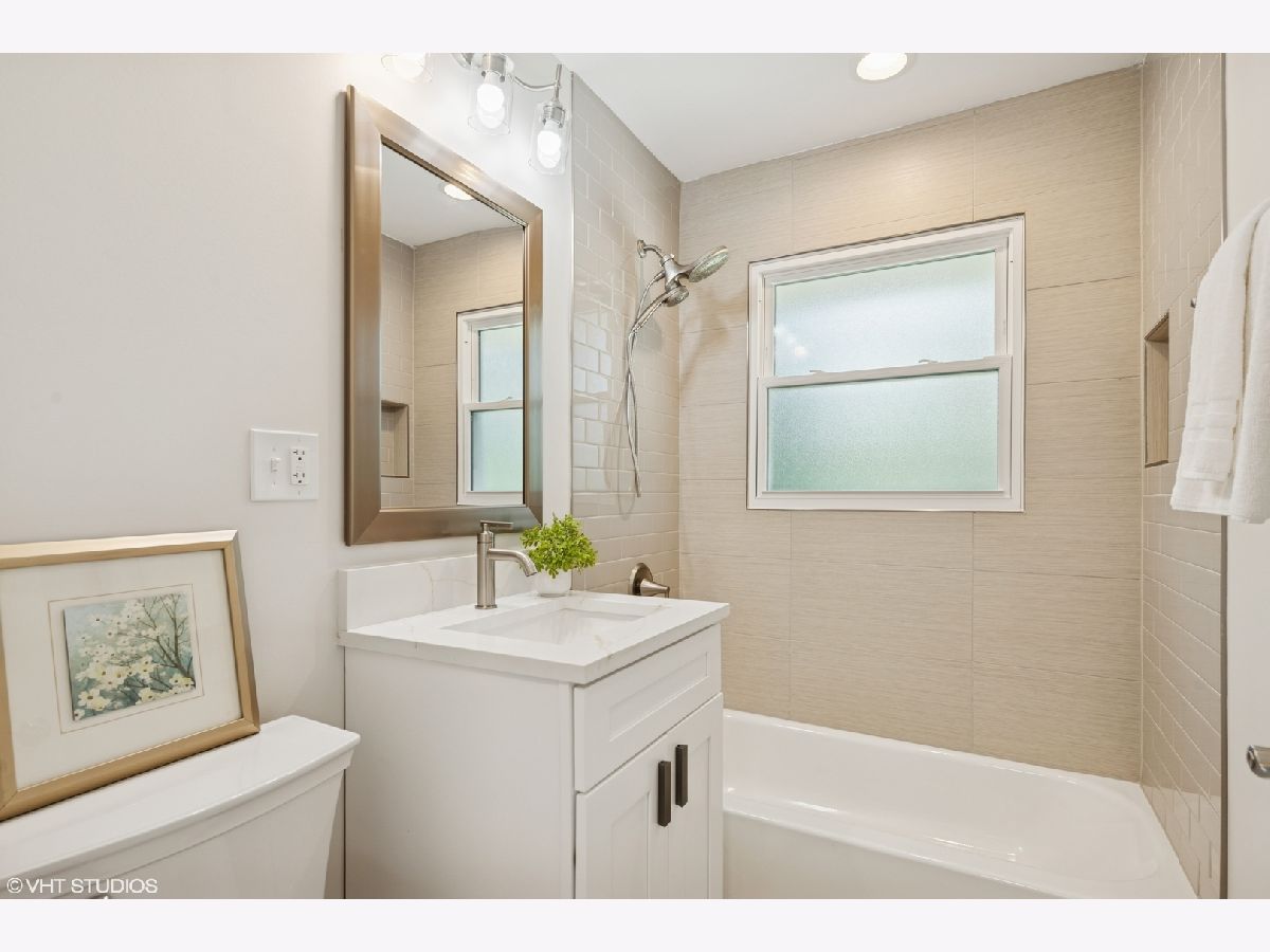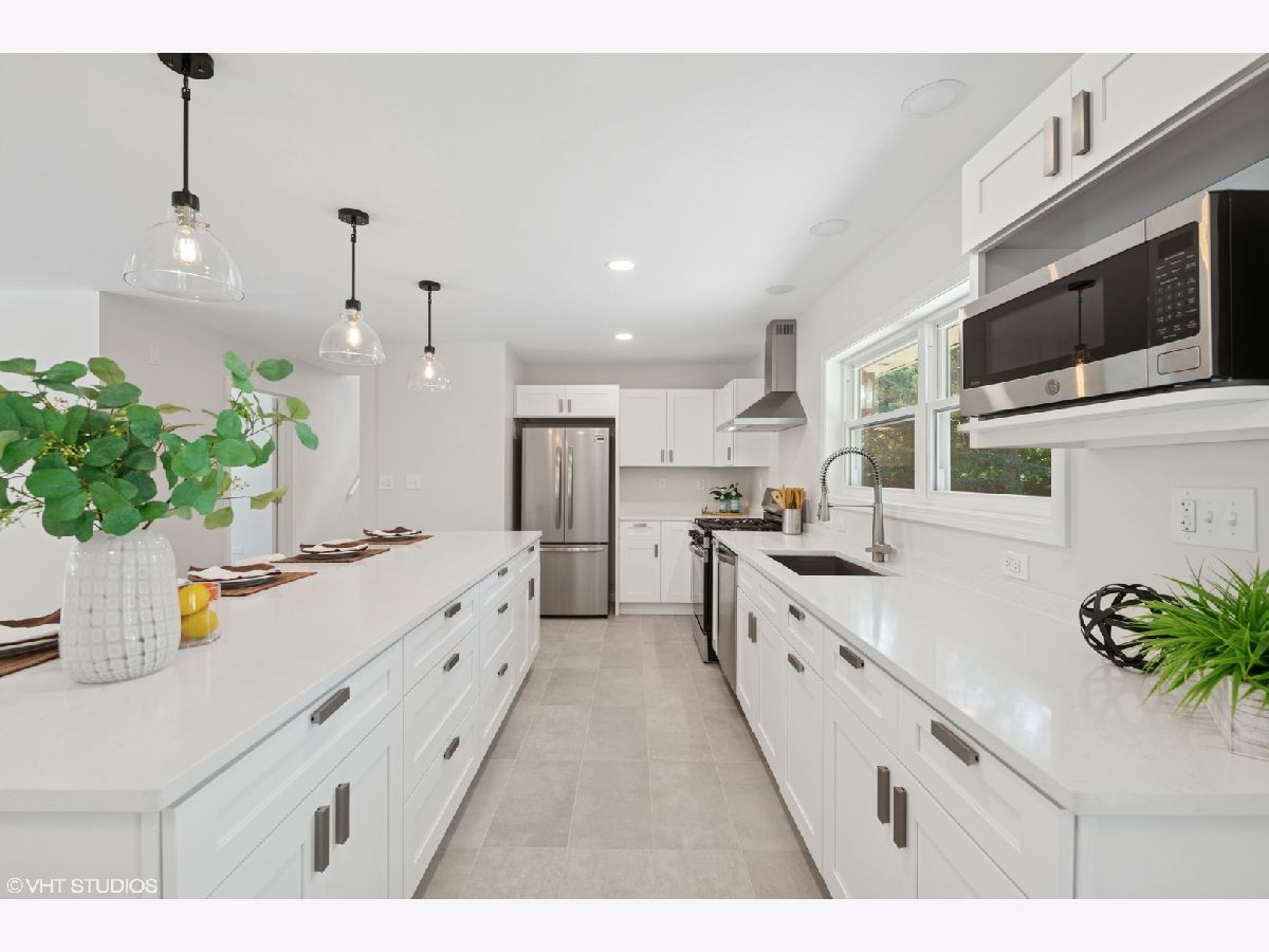 Step into timeless sophistication with this expertly renovated home, where intuitive design meets elevated living across four beautifully finished levels. From the moment you enter, the warm glow of hardwood flooring, a guest coat closet, and curated lighting create a sense of invitation and calm. The main level flows effortlessly-anchored by a luminous living room with a bay window, recessed lighting, and ceiling fan-into a dining area that opens through sliding glass doors to a private brick paver patio. The heart of the home is a chef-worthy kitchen outfitted with sleek porcelain tile flooring, shaker soft-close cabinetry, and a suite of Frigidaire stainless steel appliances including a five-burner gas cooktop and vent hood. A quartz island with seating for four offers the perfect perch for casual meals or spirited conversation. The adjacent main-level bedroom features hardwood floors, a ceiling fan, and double-door closet, while the full bath is richly appointed with a quartz vanity, tile-surround tub/shower with dual sprays, and a niche for modern convenience. Upstairs, a skylit landing leads to a serene primary suite with hardwood flooring, dual walk-in closets, and a spa bath complete with dual quartz vanities, porcelain and penny tile finishes, and a luxurious dual-spray shower. A secondary ensuite bedroom boasts its own chic bath with porcelain tile surround. The lower level is an entertainer's dream with a stylish family room featuring LVP flooring, a custom wet bar with quartz counters, Kohler sink, and Avanti beverage fridge-plus a mudroom with bench seating, coat hooks, and direct access to the backyard. The fully finished basement offers remarkable versatility with a spacious recreation room, fourth bedroom, bonus room, full bath with elegant tile finishes, dedicated laundry with Whirlpool washer/dryer and utility sink, and ample storage. With upgraded systems including a 200-amp electrical panel, Heil furnace with Aprilaire humidifier, new Rheem 75-gallon water heater (2025), and sump pump, this home delivers both form and function. A detached 2-car garage completes the picture. This is not just a home-it's a statement, where every level, finish, and fixture whispers, "you've arrived."