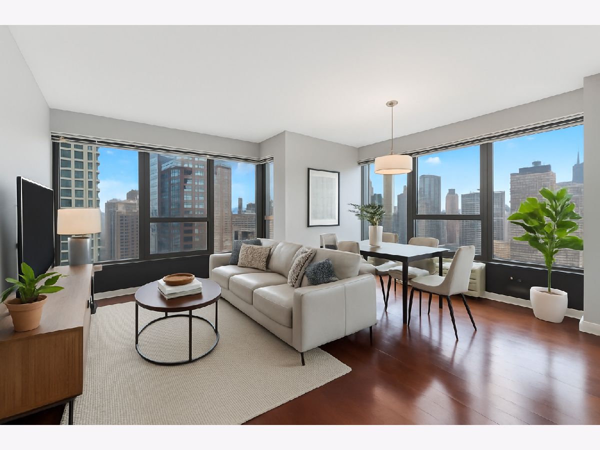 Stunning 2 Bedroom, 1.5 Bath Corner Condo. Perched on a high floor, this sun-filled Southeast corner unit boasts breathtaking lake and city views through expansive windows. Featuring solid Brazilian cherry hardwood floors and premium upgrades in the kitchen and both baths, this home blends style and comfort. Located in a full-service, 24-hour doorman building offering exceptional amenities: a state-of-the-art gym, party room, business center, heated pool with sundeck, dry cleaner, two on-site restaurants, and more. Brand new Miele Washer and dryer in unit.