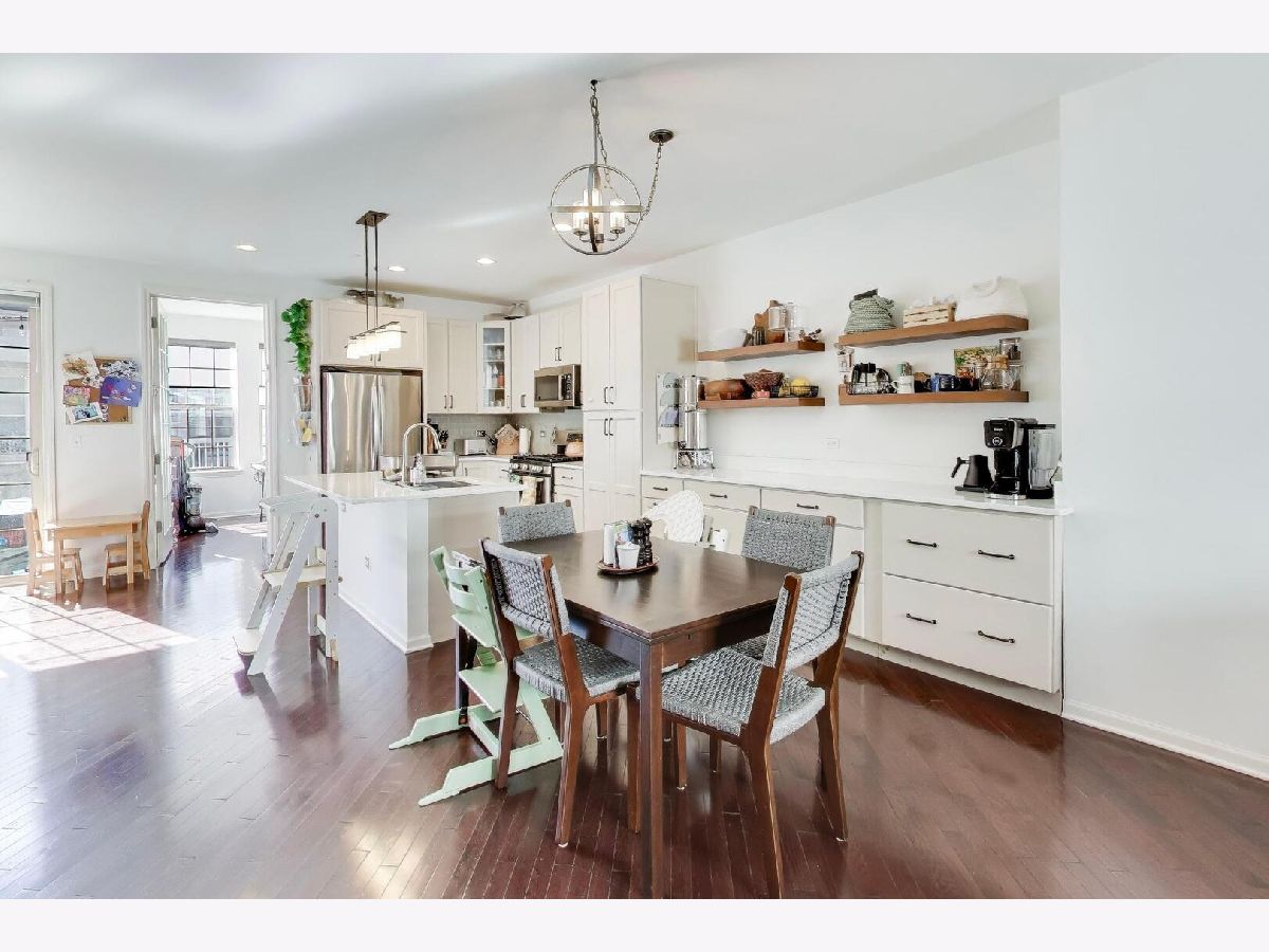 Ideally located just steps from vibrant downtown Park Ridge, this beautifully maintained townhome places you within walking distance of upscale dining, boutique shopping, local art, and the Metra station for an easy commute. Built in 2016, this home offers many of today's most sought-after features. A welcoming covered foyer provides a perfect entry for greeting guests. The main level showcases stunning dark hardwood floors and a bright, open layout designed for comfortable living and entertaining. The spacious living room flows seamlessly into the dining area, highlighted by a newly added buffet station-perfect for hosting gatherings. The modern kitchen features a center island with breakfast bar, stainless steel appliances, and crisp white cabinetry. A sunny eating area with a stylish designer light fixture opens through sliding glass doors to a private balcony-ideal for enjoying the warmer months ahead. A main-floor private office offers flexibility as a workspace, playroom, or quiet homework area. Upstairs, the primary bedroom includes two large closets and a private full bathroom. Bedrooms two and three share a well-appointed hallway bath. A second-floor laundry area adds everyday convenience. The finished English basement provides additional living space with a family room, wet bar, and extra storage, and offers direct access to the attached two-car garage. With its unbeatable location and easy access to the Metra, this home offers both comfort and convenience in one of Park Ridge's most desirable neighborhoods. No Pets