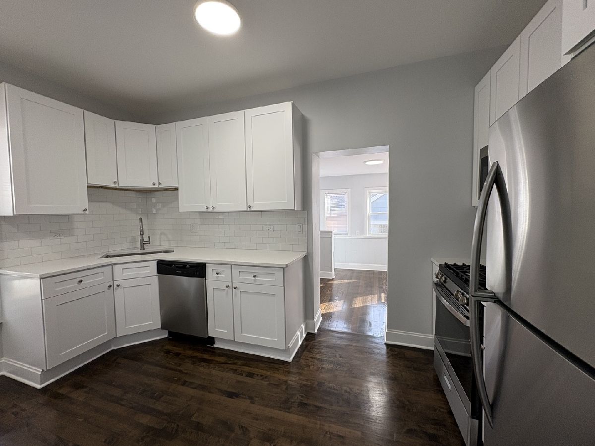 Charming 3 bed / 1 bath single-family home for rent in Highwood featuring modern updates, spacious living areas, and a large yard. Step inside to a bright open living and dining space with newly refinished dark hardwood floors, fresh neutral paint, and abundant natural light. The new kitchen offers white shaker cabinetry, quartz countertops, subway tile backsplash, and stainless steel appliances, creating a clean and modern feel. The home includes three bedrooms plus a beautifully updated full bath with contemporary tile finishes. A sun-filled enclosed porch provides the perfect space for a home office, playroom, or additional lounge area. Enjoy outdoor living with a large backyard and deck, ideal for entertaining or relaxing. The property also features a detached garage and additional driveway parking. Full basement offers laundry and ample storage space. Located in desirable Highwood, close to restaurants, shopping, parks, Metra, and lakefront amenities.