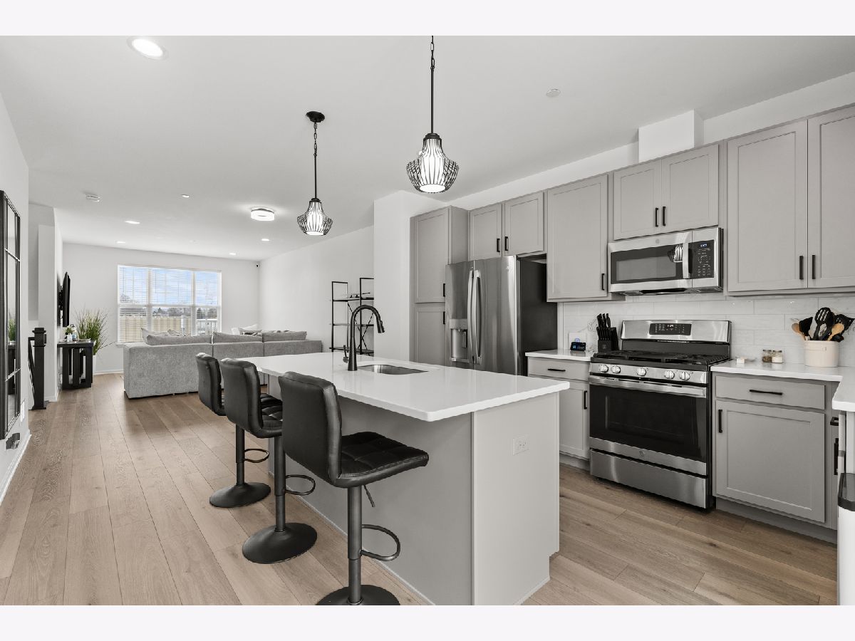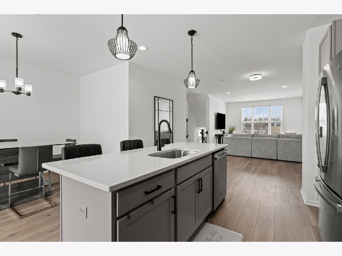 This Incredible Tri-Level Townhouse was built in 2024 and offers over 1,930 square feet of living space. The undeniable features include an Electrical Vehicle charger that is conveniently located inside the attached 2 car garage, the spacious open concept floor plan that shows off the kitchen quartz countertops, the dark 4 inch cabinetry hardware, the mounted double sink island with a trash compacter that seats 4 comfortably, the stainless steel appliances, and the spacious dining and family area that you may rest your furniture on the mocha wooden flooring. Enjoy all the beautiful light fixtures, including the benefit of having the newer blue washer and dryer off the hallway on the 2nd floor, that is next to the master suite that provides a luxury and customized walk-in closet, and a bathroom with a roomy standing shower and double sinks. These 3 bedrooms with 2 and half baths townhouse, balcony off the kitchen and lower level recreational or family area has the style you have been waiting for! Schedule your showing now!
