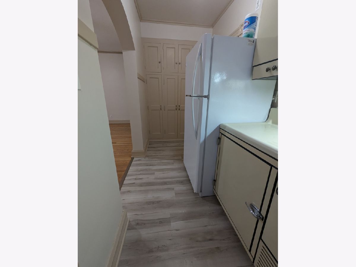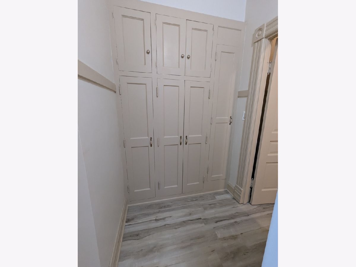 Rarely available 2nd floor unit in quiet 4-flat building across from Walgreens in downtown Lombard. Walk to train. ONE PERSON ONLY. No pets. No smokers, freshly painted and beautifully updated. Extra high ceilings and recently refinished oak floor. New flooring in kitchen and bath. One bedroom 10x11 with office 8x10. Large living room, 15x15 with hardwood floors. Galley kitchen 12x5. Foyer 3x4, updated bath with new vanity and commode. Closet in bath plus 2-3 closets in apartment and a walk-in closet with built-in dresser 4x9. Some storage available in basement. Washer and dryer in basement for tenants use only. Rear porch 3x6 with covered stairway. Security building. Interior front stairs. Off street parking. Tenant pays electric and cooking gas. Owner pays for the hot water heat, trash removal, snow removal, water, sewer and lawn maintenance. Credit score must be 700 or better. Tenant income must be at least $4050 per month in order to qualify. Galley kitchen with table and benches that folds away into the wall. Light & bright office. Thermal windows tilt in for easy cleaning. Available immediately. Lease will go through May 31, 2027 and is renewable at that time, year to year lease. Agent must accompany.