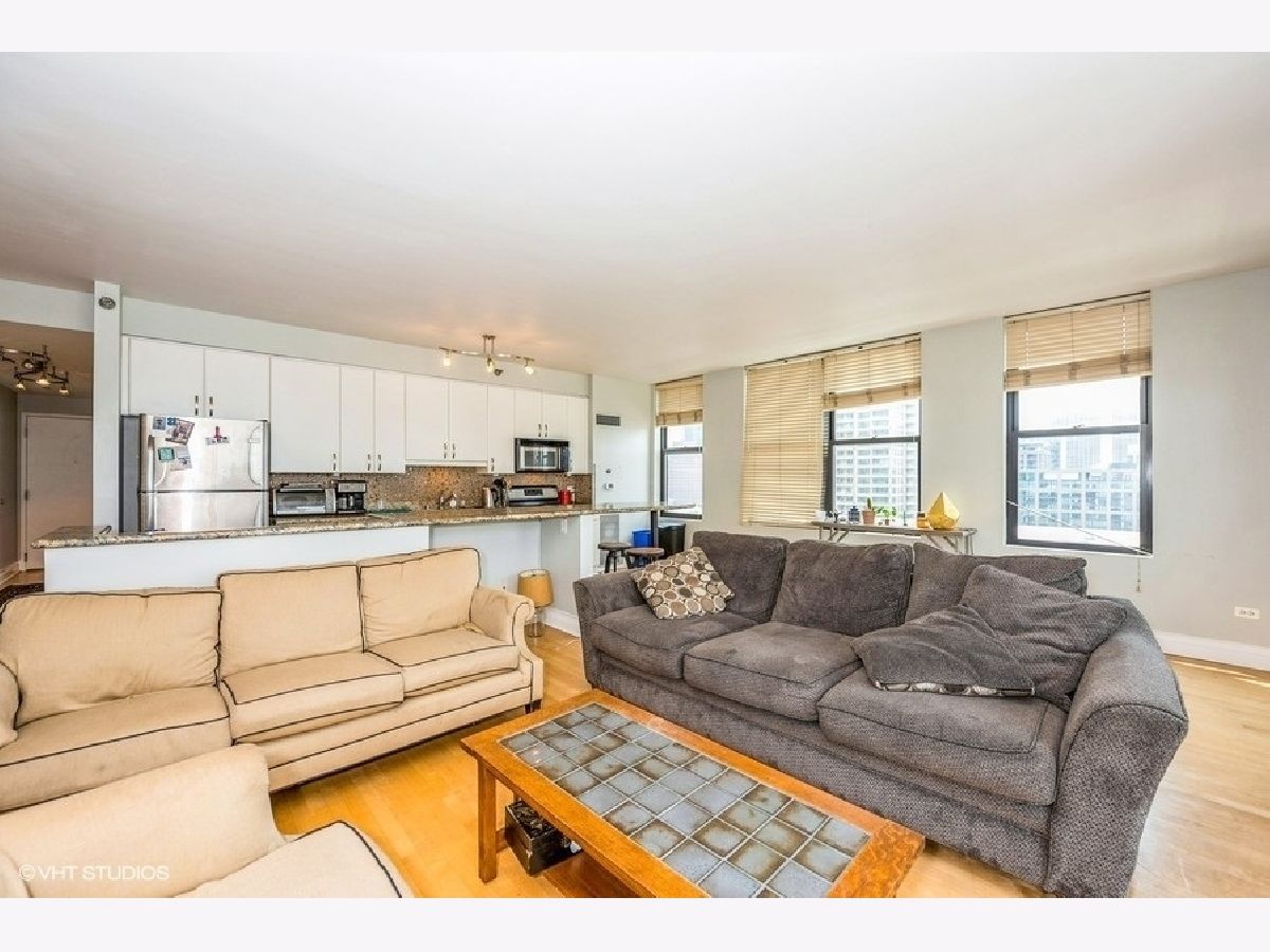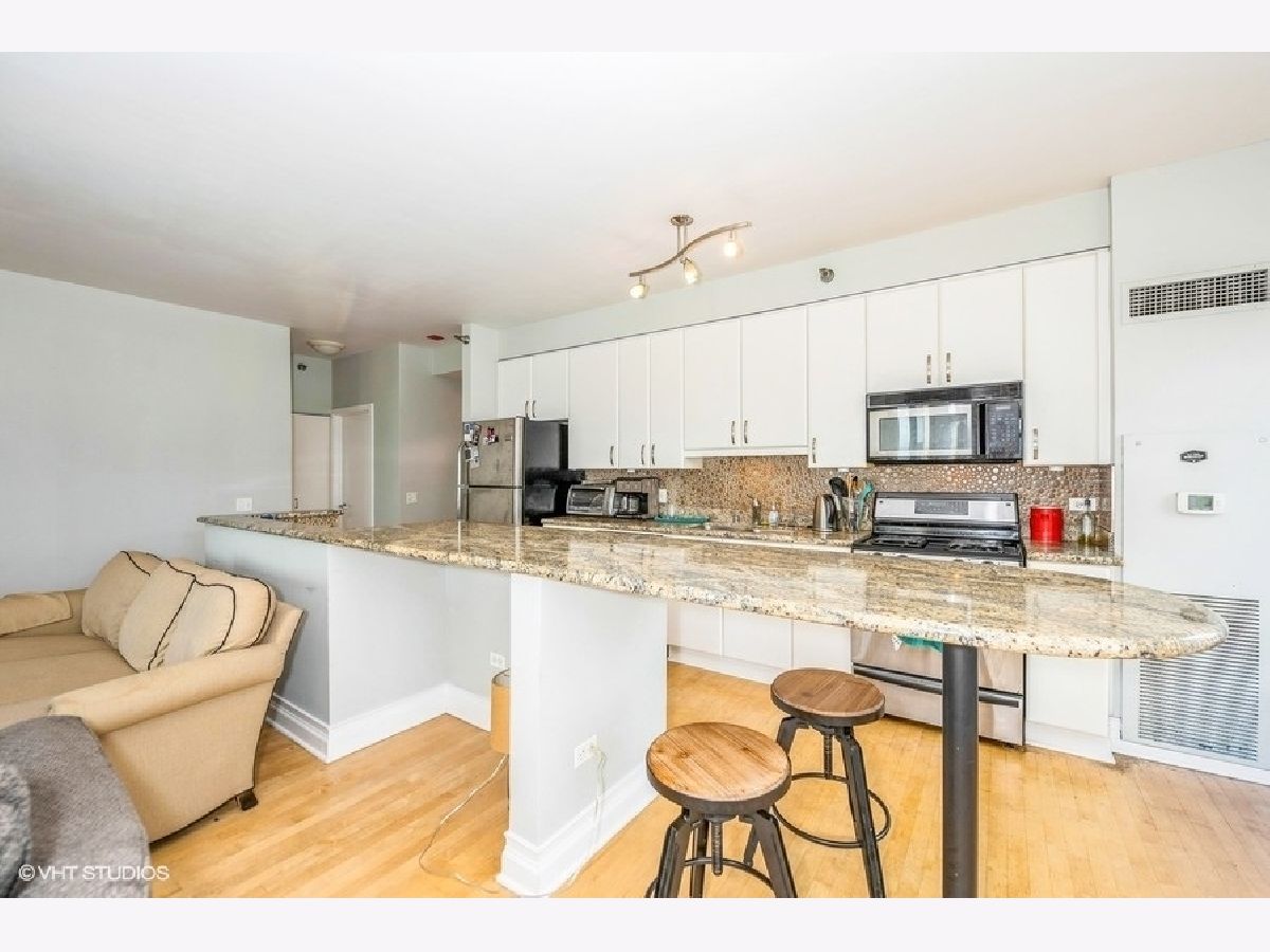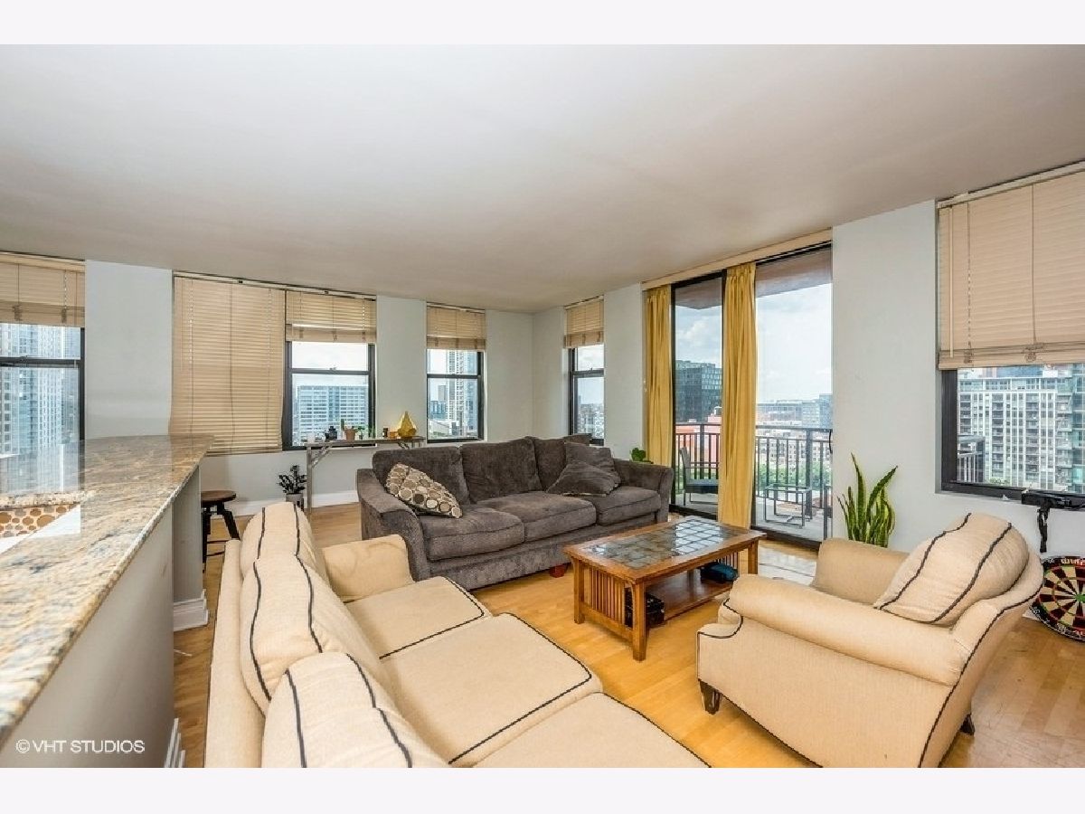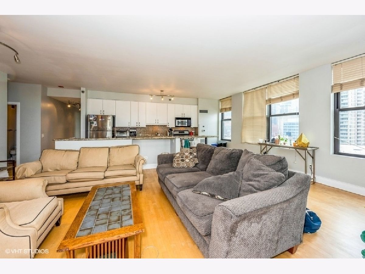 Sun-filled, corner 2bed/2bath premium unit in sought after Kinzie Station! Massive windows, natural sunlight, and jaw dropping views of sunset & the skyline. Expansive open concept floor plan with a separate room layout. Sprawling Living room with true dining area, perfect for entertainment. Kitchen with granite and premium stainless steel appliances. Oversized primary suite with double vanity bathroom and a huge, organized walk-in closet. Top tier building with 24-hour door staff, fitness room, dry cleaners, and indoor heated garage. Unbeatable location just steps away from Jewel, banking, Starbucks, salons, green space, The El, Metra, Randolph Street, Fulton Market, Chicago River, River North, and more! Terrific value with heat, internet and basic cable included. Premium parking spot available for an additional fee, make it yours today!