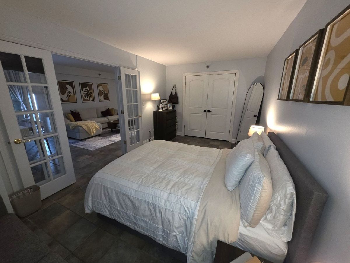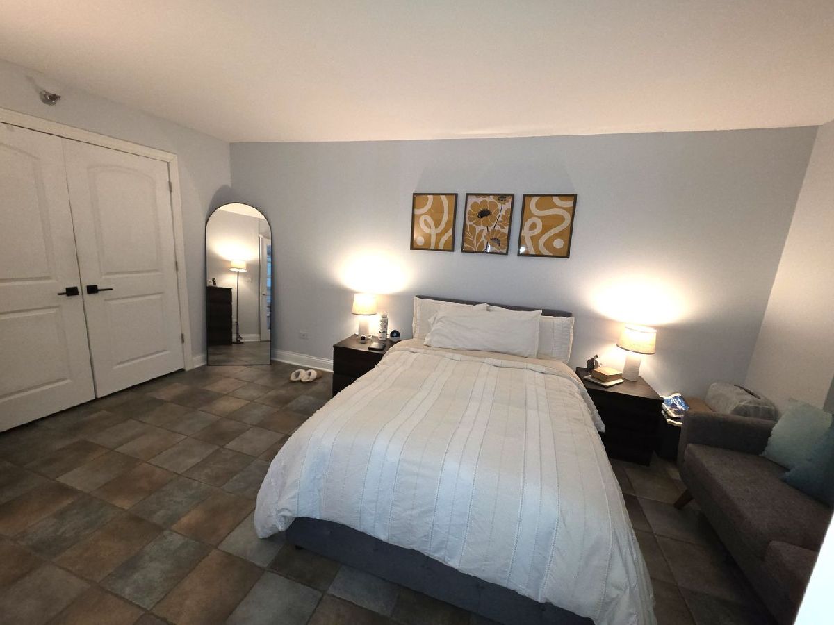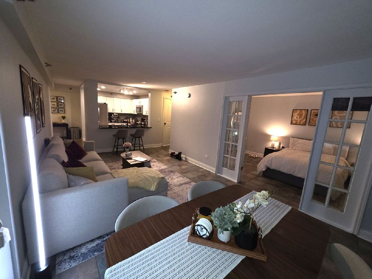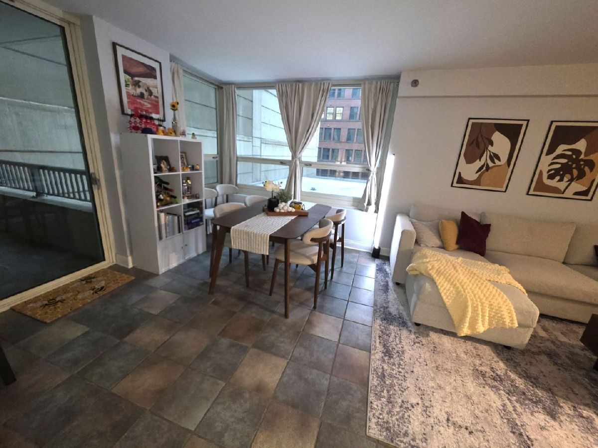 Bright & spacious, recently renovated FURNISHED River North 1 bedroom at The Sterling! Open layout features a separate entry foyer and lots of windows that flood the space with natural light. Remodeled kitchen features white shaker style cabinets, stainless steel appliances, granite countertops, custom subway tile backsplash, and a breakfast bar. Spacious living and dining room combo with access to a West facing 10x8 foot covered private terrace. Large bedroom offers plenty of space for a king-size bed and additional furniture. Abundant closet space. Beautifully remodeled bathroom features a large walk-in shower with custom tile surround, glass shower door, and a built-in bench. In unit washer/dryer! Full amenity building features outdoor pool with sundeck, two exercise rooms, tennis/pickle ball court, beautifully landscaped grilling patio with fire pit, dog run, 24-hour door staff, onsite property manager, building engineer, dry cleaners, CVS, 7-11 and Subway. Amazing location is close to River Walk, trendy River North restaurants including Prime & Provisions, RPM Seafood, Joe's Seafood & Steak, & TAO Chicago, Magnificent Mile, Millennium Park, entertainment, theater district, transportation, shopping & Loop! Monthly rent includes heat, air, water, basic cable & high-speed internet, and use of all building amenities. Private storage locker conveniently located on the same floor! Parking is available for rent in attached garage for $297/month. Small dogs OK with $500 additional deposit. No smoking. Available April 15th.
