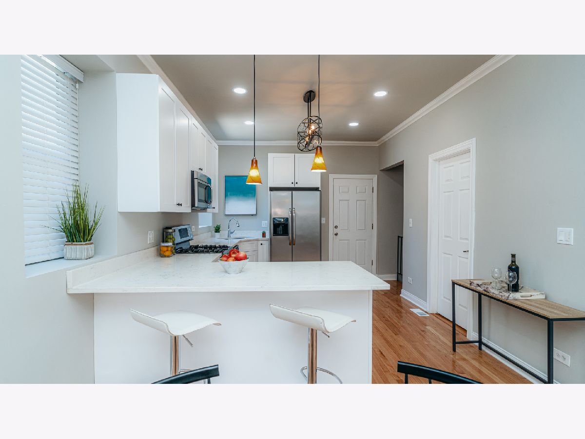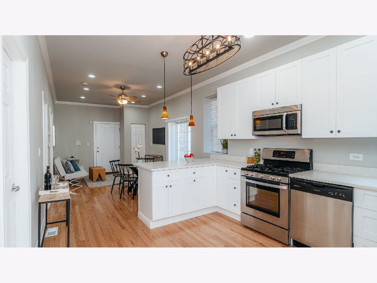 Welcome home to this recently updated beauty located in a classic Chicago building in the popular Logan Square neighborhood. Fashionable Logan Square 3 Bedroom boasts an open floor plan with multi-level living and HGTV-worthy, newer Kitchen! Gorgeous kitchen finishes include white shaker-style cabinetry, Quartz Countertops, Stainless Appliances and updated hardware. Main level is finished with gorgeous hardwood floors and comprised of the main living room, 2 bedrooms, full bathroom and balcony. Want extra space to roam....Additional Family Room in lower level finished with modern, grey wood-like flooring, full bedroom and full bathroom; as well as washer/dryer in unit. Great Location, steps from restaurants and all that Logan has to offer! 3/4 Mile to Logan Blue Line....Easy street parking or rental parking in area.