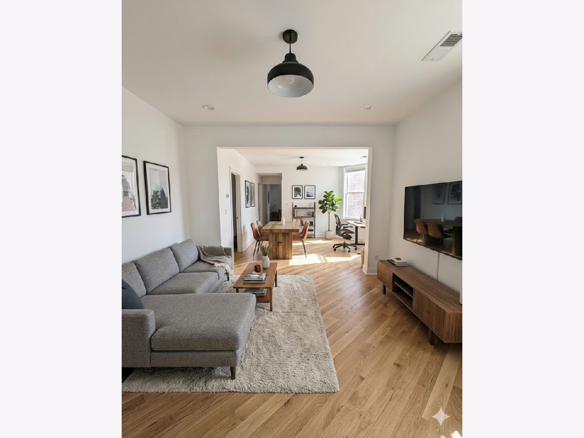 Discover this stunning, newly renovated 2-bedroom, 1-bathroom apartment on a quiet street in East Irving Park. Featuring a spacious open layout, this home boasts a large living room and dining room, perfect for entertaining. The gorgeous eat-in chef's kitchen is equipped with high-end appliances, and sleek quartz countertops. Enjoy designer finishes throughout, beautiful fixtures, and an abundance of natural light. Additional perks include full-size in-unit laundry, tandem parking available for $200 monthly. Conveniently located near dining, shopping, and public transit. Don't miss out on this incredible home! Photos are renderings, apartment is currently under construction. Tenants will pay all utilities plus a $80 dollar Rubs fee which includes, water trash and recycling.