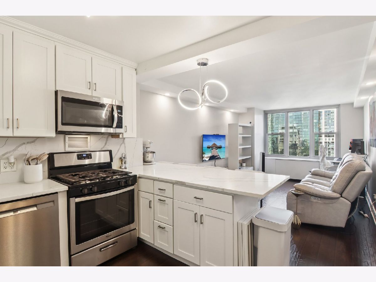 Stunning 1-Bed/1-Bth junior condo on the 37th floor with breathtaking views of Lakeshore East Park and surrounded by Maggie Daley, Grant & Millennium Parks. The updated unit features an open concept floor plan with gorgeous wood laminate floors that flow throughout. The living room is spacious and flows seamlessly into the update kitchen complete with a breakfast bar with seating for 4, white shaker cabinets, beautiful countertops and all SS appliances. The bedroom is a great size and has a large walk-in closet with custom shelving! The bathroom was renovated in 2024. The perks of this unit don't end there - enjoy all the resort-style amenities this building offers! You have everything you could ever want or need right at your fingertips. Amenities include one of the city's only indoor lit dome pools, a sundeck, a fitness center & spa, basketball and racquet ball courts, a library, business center, children's playroom, nail salon & spa, storage, 24/7 security and so much more. Almost everything is covered by your low monthly assessment as well - heat, AC, water, gas, cable & internet. All of this while being centrally located next to Chicago's best parks, the Lakefront & Riverwalk trails, and all that this area has to offer. Schedule your tour today to experience resort-style living every day.