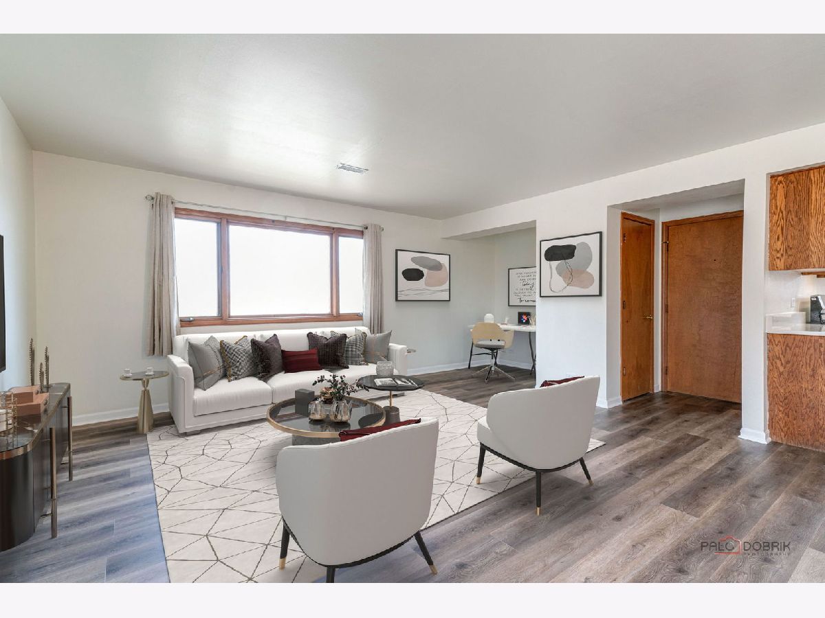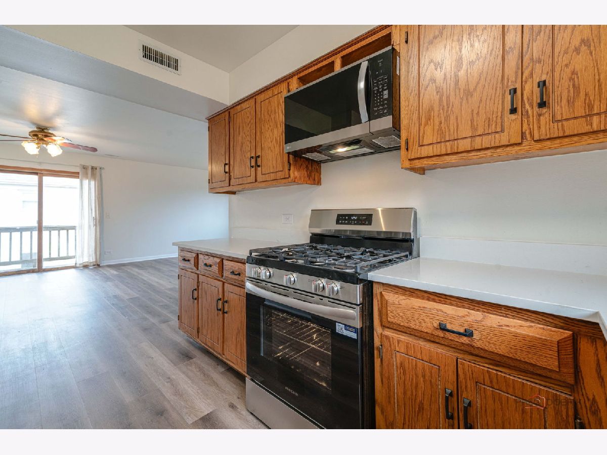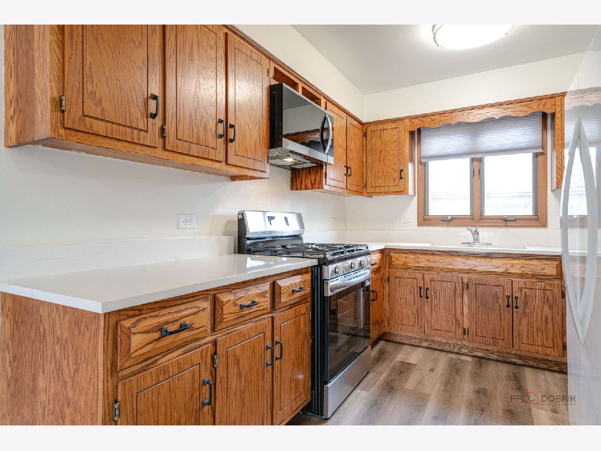 Bright, clean, and move-in ready 2-bedroom, 1-bath apartment in a secure, well-maintained building just minutes from downtown, the Metra, shopping, and dining. This freshly painted unit features new luxury vinyl flooring and a spacious open layout filled with natural light. The large eat-in kitchen offers plenty of room for a table and includes brand-new quartz countertops, a new stove and microwave, full-size refrigerator, and a newer stainless dishwasher. Both bedrooms are generously sized, providing comfortable living space. Enjoy the convenience of your own furnace, water heater, and central air conditioning. Step outside to relax or grill on the private balcony. The building also offers free on-site laundry and two parking spaces located behind the building. Available immediately. No pets and no smoking.
