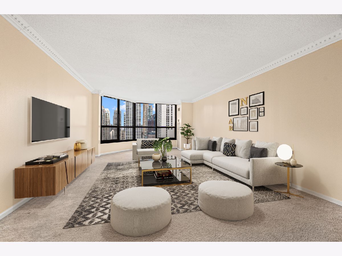 Available Now! Located on the 28th floor of the full-amenity River Plaza building, this 890 sq ft one bedroom condo offers bright, open living in one of Chicago's most desirable neighborhoods. The home features a freshly painted interior and an open-concept layout with large windows that bring in natural light and offer expansive city views. The kitchen includes granite countertops, stainless steel appliances, and a breakfast bar for added convenience.The primary bedroom is generously sized with a large picture window, soft carpeting, and an oversized walk-in closet with custom organizers. Additional coat and linen closets provide ample storage.River Plaza offers a wide range of amenities, including:24-hour door staff and on-site management, fitness center with cardio and weight equipment, indoor pool, hot tub, sun deck, business center, hospitality room, valet dry cleaning, and package room. Conveniently located just steps from the Chicago Riverwalk, Michigan Avenue, theatre district, and public transportation, this home provides easy access to everything the city has to offer. The monthly rental rate includes heat, A/C, water, cable, internet, and all building amenities. The owner will hold a one-month equivalent security deposit. Building has small move-in fee.