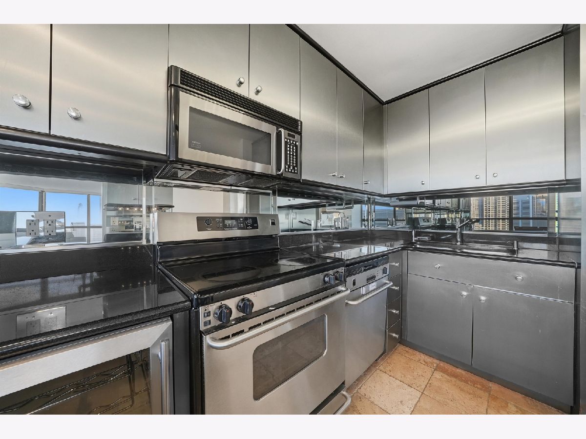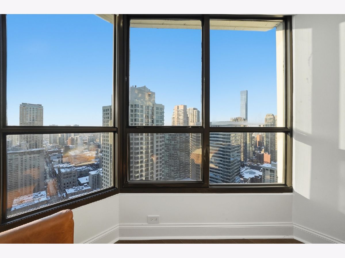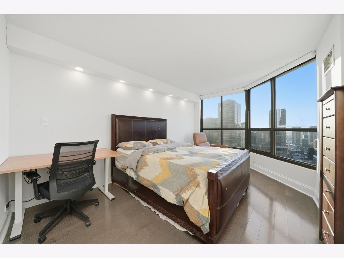 Breathtaking skyline views define this stunning 2-bedroom, 2-bath northwest corner residence. Oversized windows flood the home with natural light, highlighting the open-concept living space with beautiful bamboo flooring, ideal for both everyday living and entertaining. The spacious kitchen features granite countertops, an expansive breakfast bar, and a newer refrigerator with a built-in mini fridge. The primary suite offers a walk-in closet and a private ensuite bath, while the generously sized second bedroom is conveniently located near the second full bathroom. Additional highlights include a wet bar, bamboo flooring throughout, and a rare ventless in-unit washer/dryer installed in 2025. Recent upgrades include a full repaint in 2023, popcorn ceiling removal, upgraded remote-controlled blackout blinds and more! Parking available for an additional $300/month. This full-service building offers exceptional amenities, including an indoor pool and jacuzzi with river views, a large sun deck, premium fitness center, and 24-hour door staff. Ideally located in the heart of downtown Chicago, just steps from the Magnificent Mile and the Chicago River, with easy access to the Riverwalk, public transportation, grocery stores, and countless restaurants. From the moment you enter, you'll see how special this home truly is. Don't miss the immersive 3D tour-click the 3D button to walk through the home!