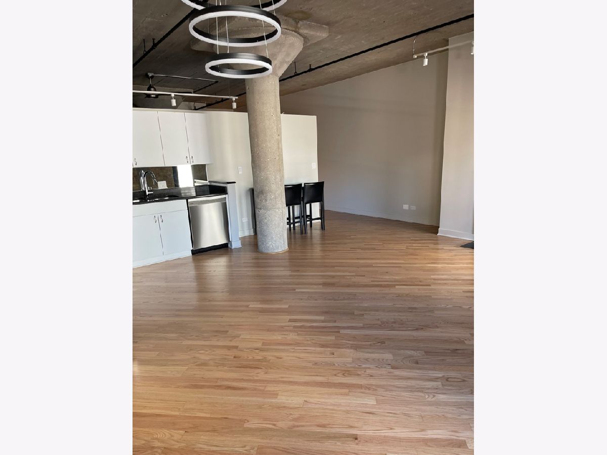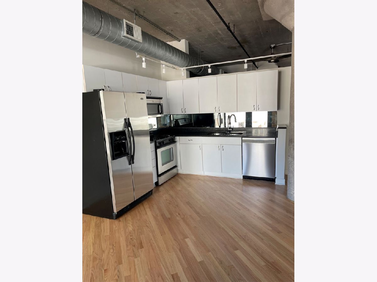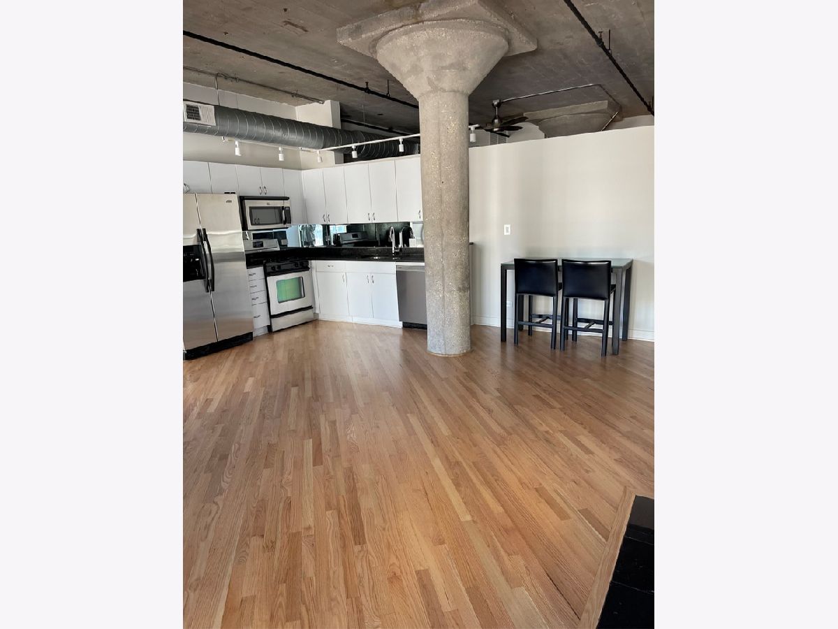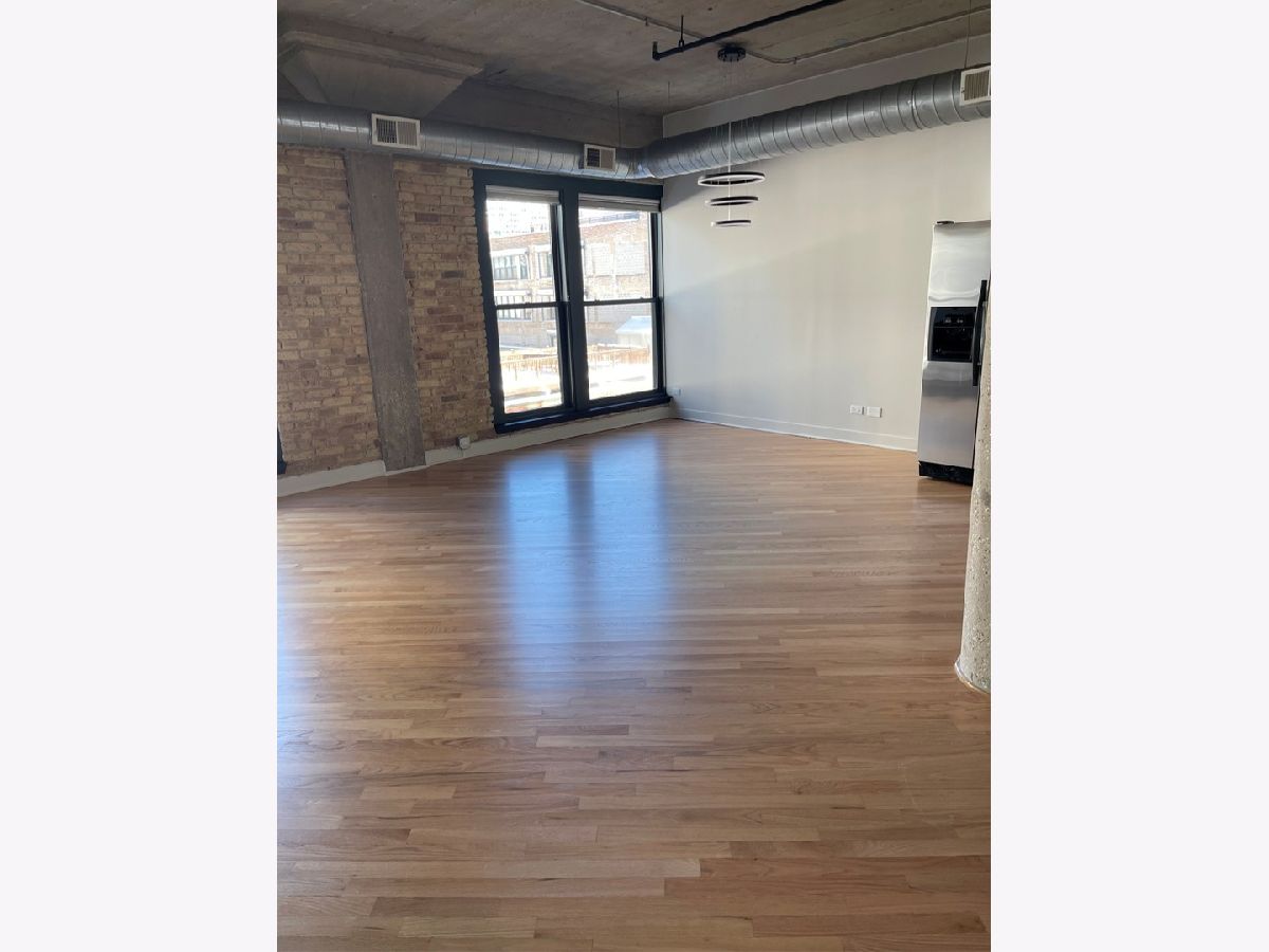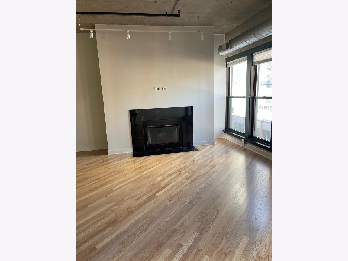 Terrific 1bd/1ba with garage parking in the heart of River North. Newly refinished hardwood floors, new lighting, freshly painted, wood burning fireplace, concrete ceiling and pillars. Great finishes throughout. In unit laundry, great urban view! Building offers 24hr doorman, well equipped workout room, great big deck with 3 BBQ's, fab views, bike room, cleaners and storage.