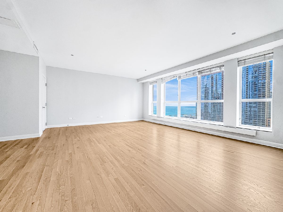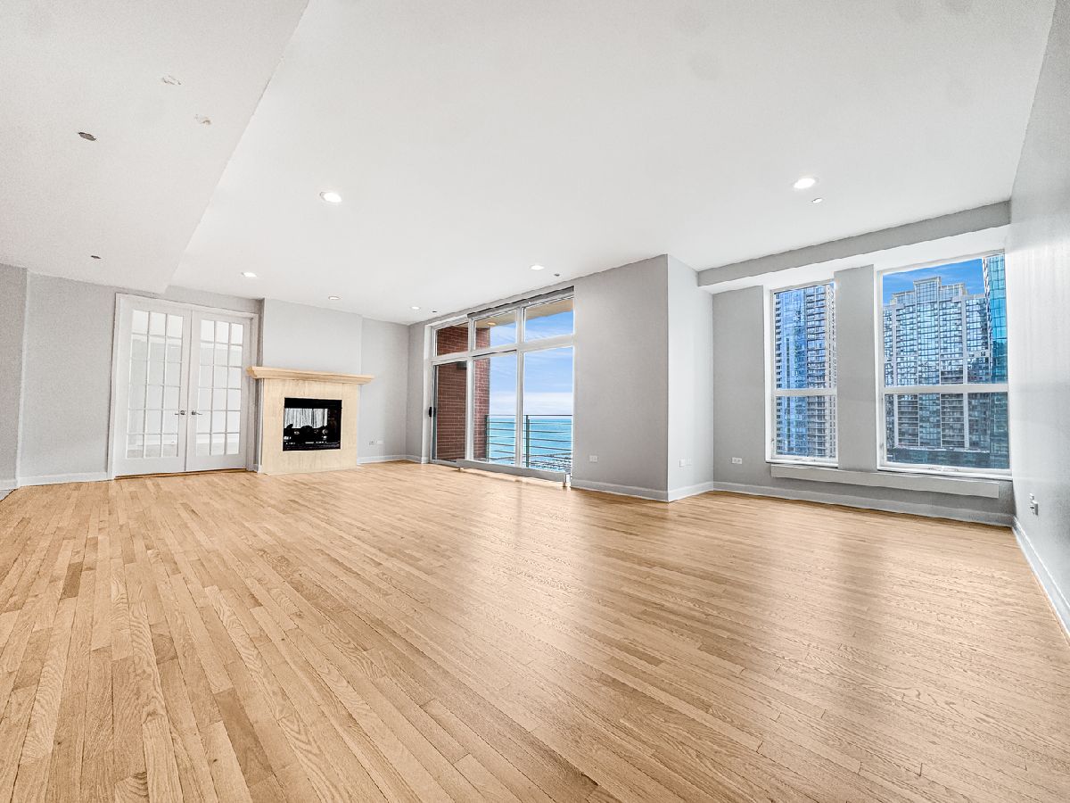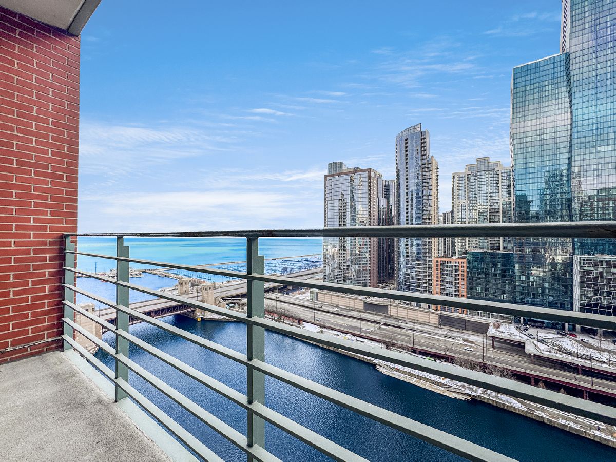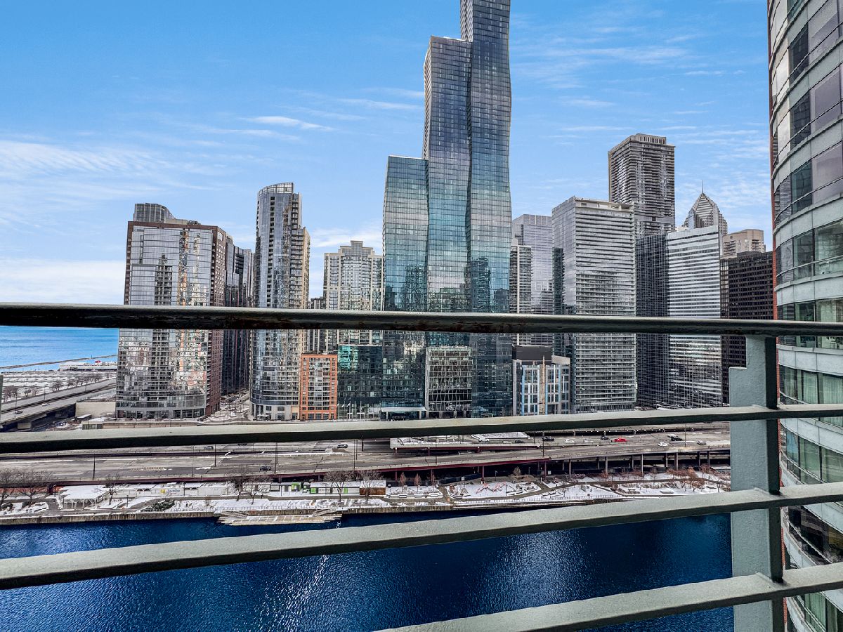 Exceptional 2,200-square-foot, 2-bedroom, 2-bath riverfront residence in the heart of Streeterville offering expansive living spaces and breathtaking south-facing views of the lake, river, and skyline. This beautifully updated home features newly refinished hardwood floors, fresh paint, and an impressive open layout ideal for both everyday living and entertaining. The oversized living and dining areas are anchored by a striking dual-sided fireplace and flooded with natural light from dramatic south-facing windows. The chef's kitchen is thoughtfully designed with stainless steel appliances, a Sub-Zero refrigerator, double ovens, wine storage, and abundant cabinetry-perfect for hosting or quiet evenings at home. The spacious primary suite is a private retreat, complete with a large walk-in closet and a luxurious ensuite bath featuring a double vanity and walk-in shower. Wake up to sweeping views of the lake, river, and city skyline. The split-bedroom floor plan enhances privacy, with the second bedroom offering its own ensuite bath, walk-in closet, and equally stunning views. Step outside to the expansive south-facing balcony overlooking the river-an ideal setting for morning coffee or evening relaxation. Residents of The Riverview enjoy full-service amenities including 24-hour door staff, a health club and fitness center, indoor pool, and outdoor sundeck. Perfectly positioned along the riverwalk and just moments from Northwestern University Feinberg School of Medicine, Whole Foods Market, Target, the lakefront, and Michigan Avenue. Includes one indoor parking space. Please note; the landlord has a strict NO PETS policy. Available for immediate occupancy.