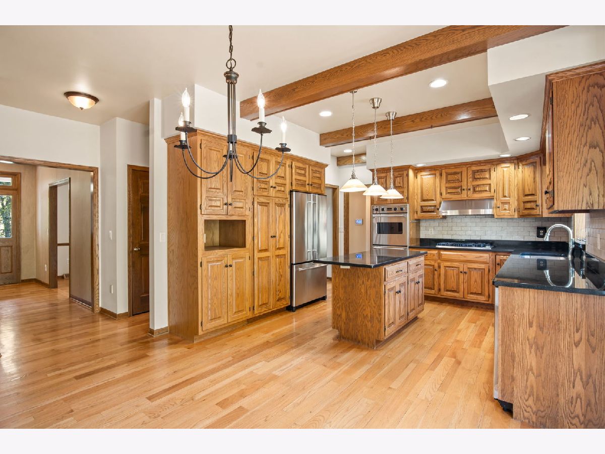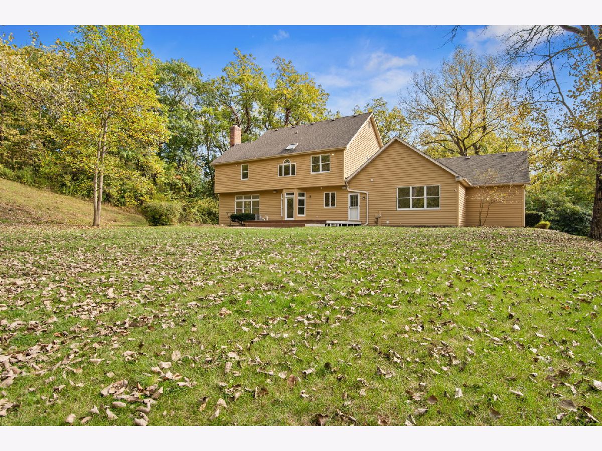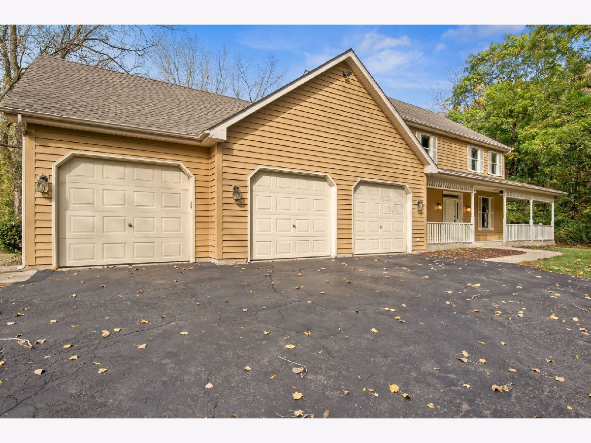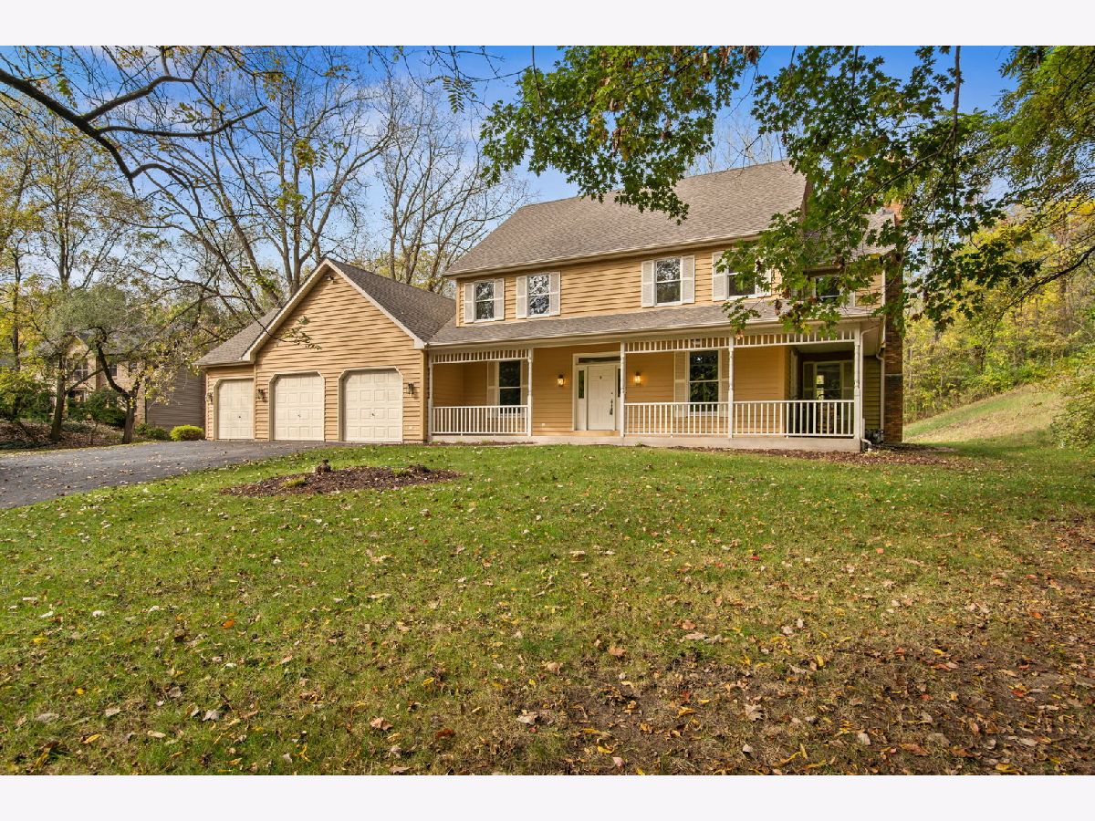 Nestled on a serene 1+ acre wooded lot in Elburn, this 4-bedroom, 2.5-bath cedar two-story home offers a perfect blend of space and charm. A wraparound front porch welcomes you to more than 2,800 square feet of living space featuring hardwood floors and neutral decor throughout. Enjoy a bright living room, formal dining room, and an eat-in kitchen with a beamed ceiling, granite countertops, stainless steel appliances, and tile backsplash. The inviting family room showcases a floor-to-ceiling brick fireplace, while the first-floor home office impresses with vaulted ceilings, skylights, built-ins, and a custom desk. Upstairs, all four bedrooms include hardwood flooring, and the primary suite features a cathedral ceiling, walk-in closet, and a deluxe private bath with skylights, double vanity, whirlpool tub, and oversized walk-in shower. Outside, a 3-car garage and a large backyard deck complete this private retreat surrounded by nature.