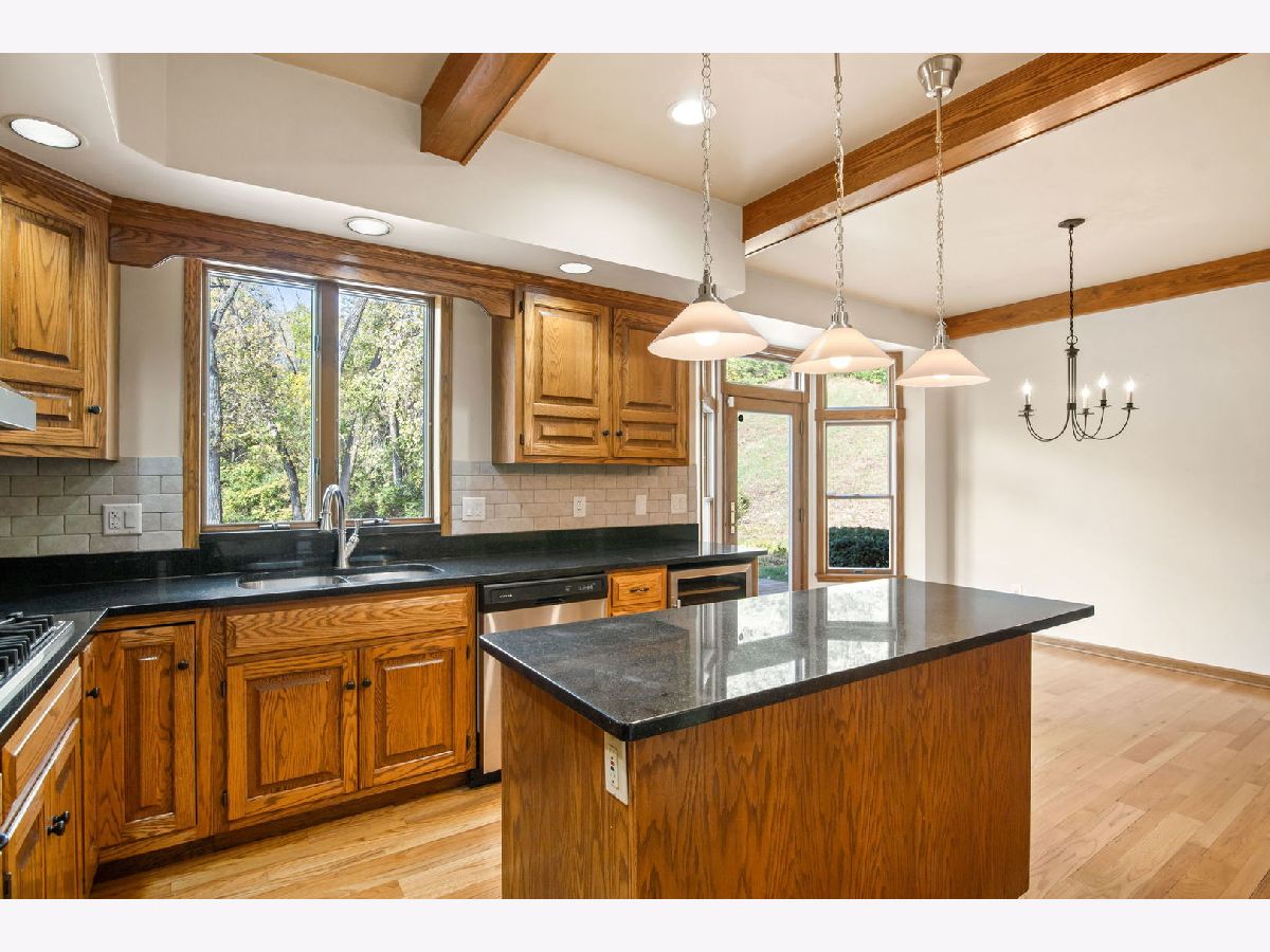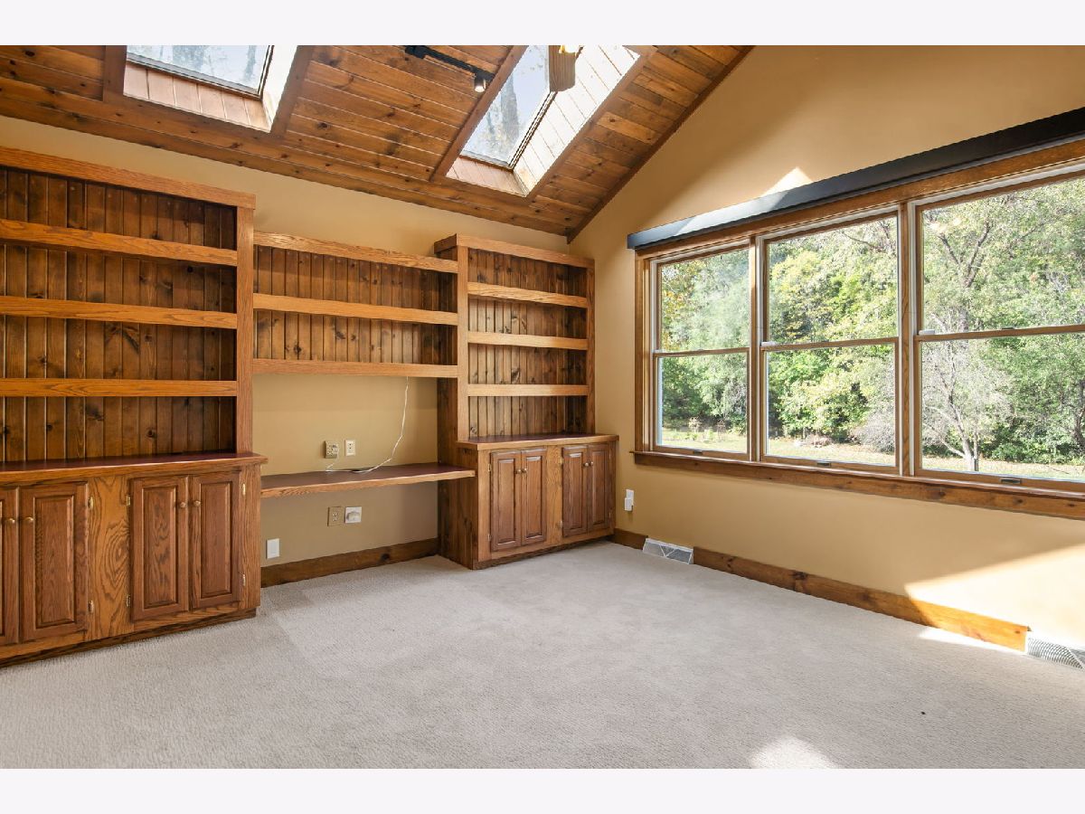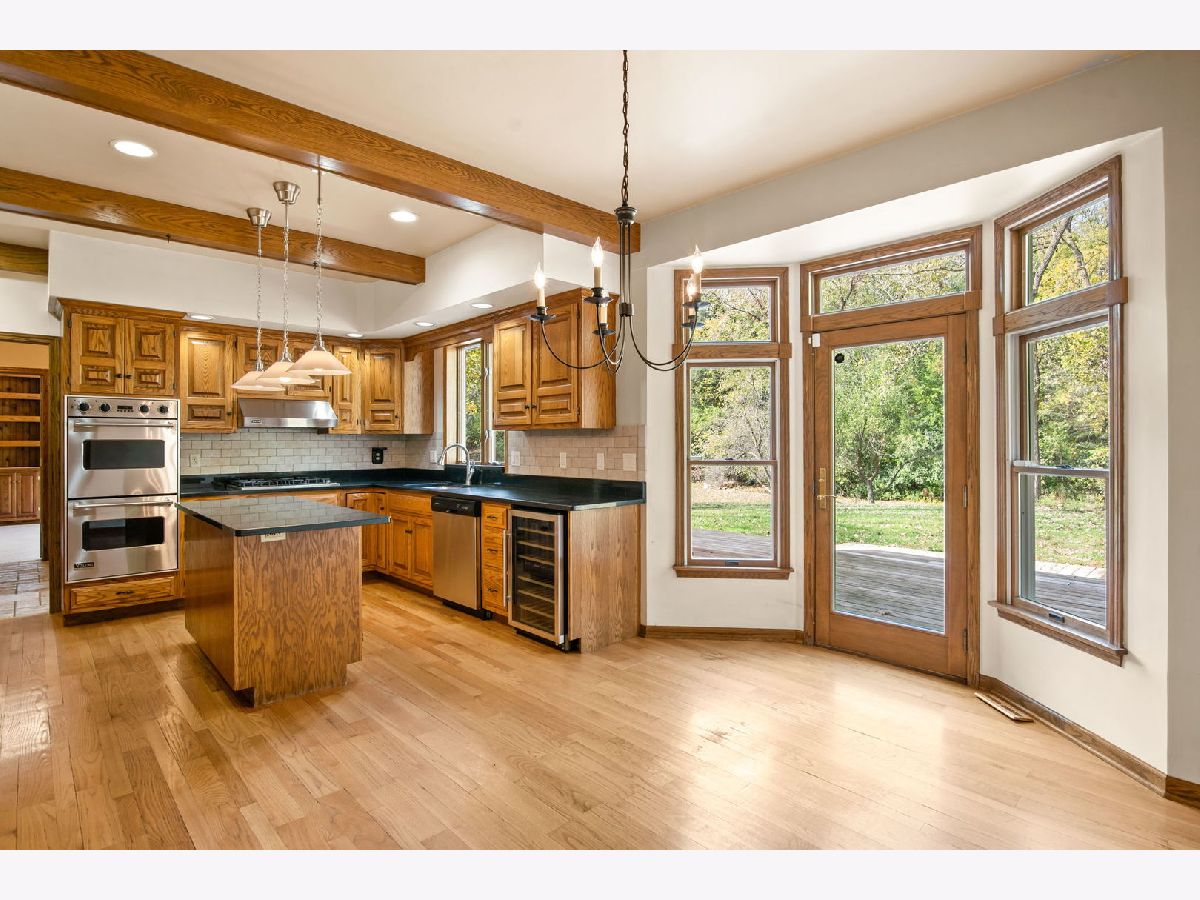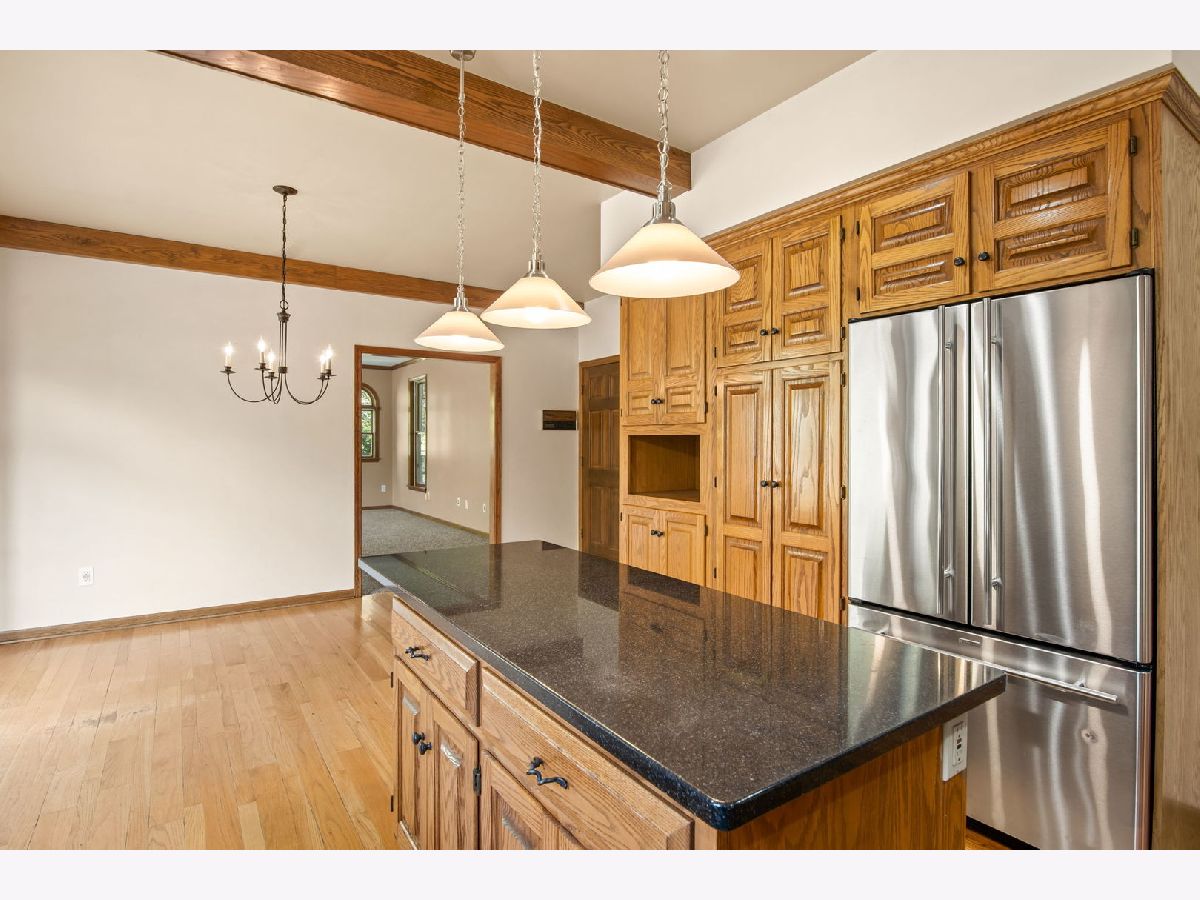 Nestled on a serene 1+ acre wooded lot in Elburn, this 4-bedroom, 2.5-bath cedar two-story home offers a perfect blend of space and charm. A wraparound front porch welcomes you to more than 2,800 square feet of living space featuring hardwood floors and neutral decor throughout. Enjoy a bright living room, formal dining room, and an eat-in kitchen with a beamed ceiling, granite countertops, stainless steel appliances, and tile backsplash. The inviting family room showcases a floor-to-ceiling brick fireplace, while the first-floor home office impresses with vaulted ceilings, skylights, built-ins, and a custom desk. Upstairs, all four bedrooms include hardwood flooring, and the primary suite features a cathedral ceiling, walk-in closet, and a deluxe private bath with skylights, double vanity, whirlpool tub, and oversized walk-in shower. Outside, a 3-car garage and a large backyard deck complete this private retreat surrounded by nature.