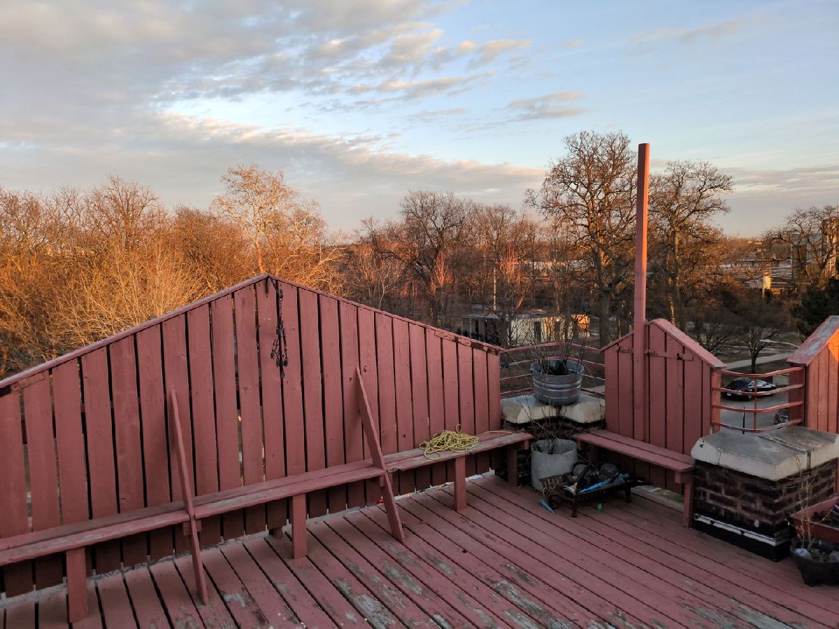 Beautifully remodeled TOP unit, with front ROOF-TOP Deck overlooking gorgeous LEVIN PARK! 3 LARGE bedrooms, Hardwood Flooring throughout. Large Living room with Cathedral ceilings. Stainless Steel Appliance include; refrigerator, stove, dishwasher, microwave and LAUNDRY in-unit! Large, Quiet, Gated back yard with deck for family use. Garage Parking is available upon request. WALK TO GREEN-LINE TRAIN!! Close to Oak Park amenities.