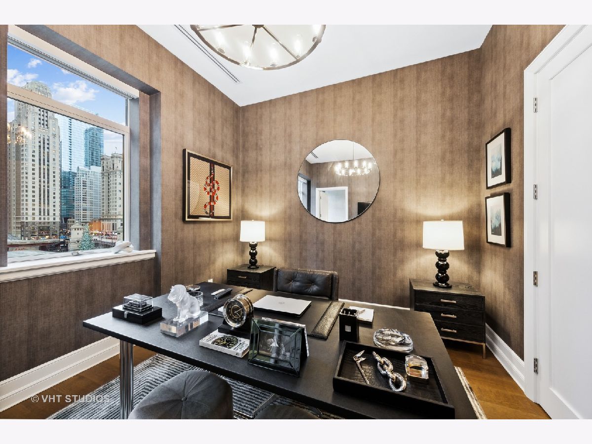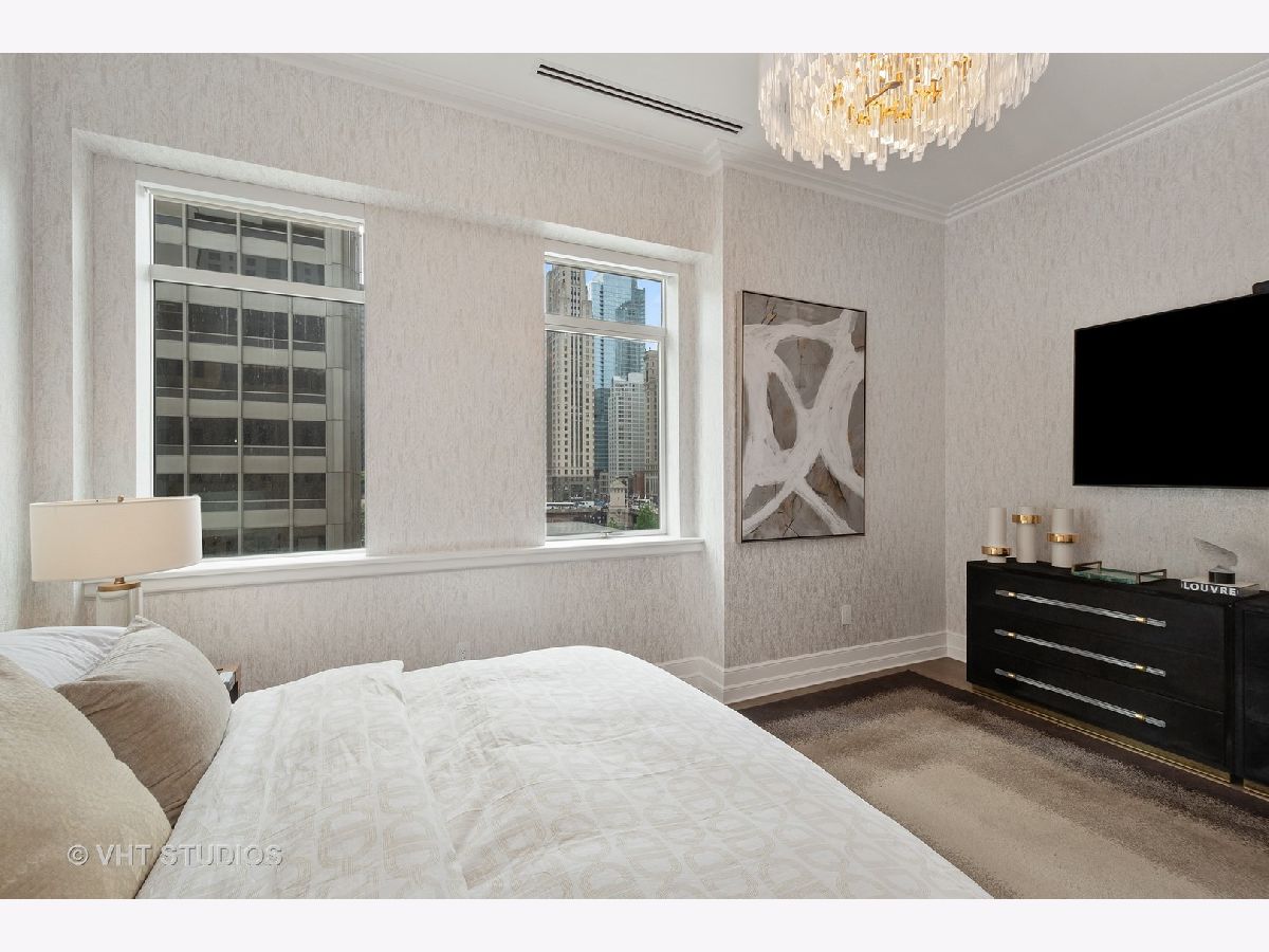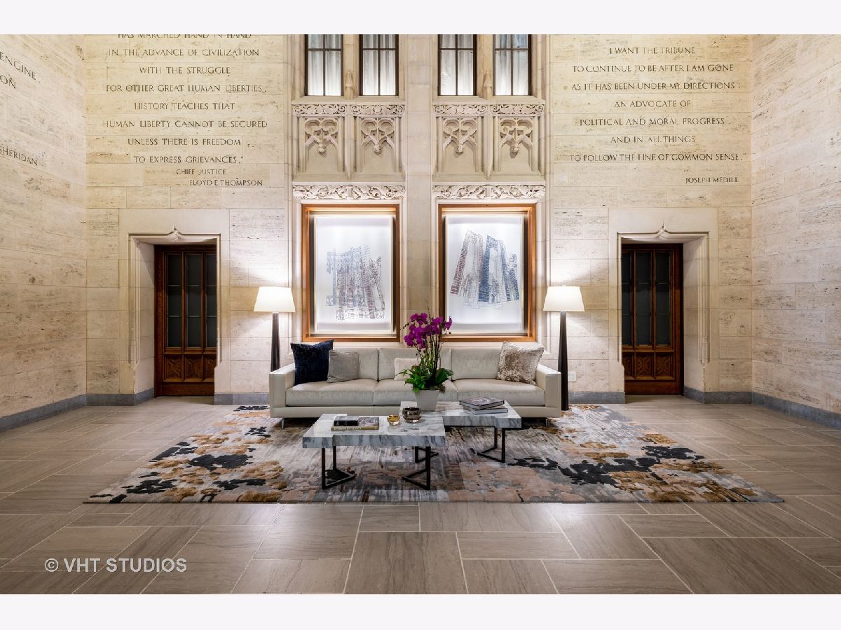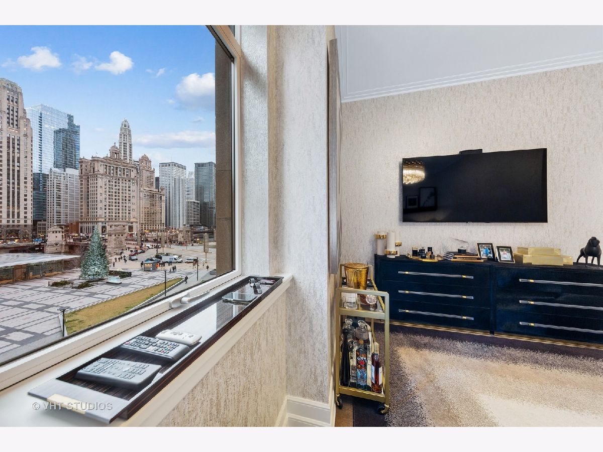Experience the pinnacle of luxury living in this breathtaking 2,900 SQFT, 3-bedroom, 3.1-bath residence at the iconic Tribune Tower. Designed with impeccable attention to detail, this home seamlessly blends classic elegance with modern sophistication. A grand foyer, ideal for displaying an art collection, leads to a masterfully crafted floor plan adorned with intricate crown molding, soaring 12-foot ceilings, and wide-plank white oak hardwood floors. Expansive, elongated windows frame striking neo-Gothic architectural details while offering unobstructed south and west views of the private park, Chicago River, and skyline. The generously proportioned living space is designed for both refined entertaining and everyday comfort, featuring a stately marble fireplace, a bespoke entertainment center, and an elegant dining area with awe-inspiring river views. The chef's kitchen is a masterpiece, boasting quartzite countertops, an oversized island, white Shaker cabinetry, a wine refrigerator, and the finest appliances, including a Wolf range/oven, Sub-Zero refrigerator/freezer, and two Miele dishwashers. Retreat to the lavish primary suite, where city skyline views set the stage for relaxation. A custom walk-in closet complements the spa-inspired ensuite bath, a sanctuary wrapped in white marble with intricate inlays, heated floors, a dual vanity, freestanding soaking tub, and an oversized glass-enclosed shower. Two additional ensuite bedrooms echo the same level of refinement with luxurious finishes. Every detail of this residence has been thoughtfully curated, from $50K in custom closet designs to remote-controlled light-filtering and blackout blinds, designer chandeliers, sconces, imported tile accent walls, and exquisite accent wallpaper. Residents of the Tribune Tower enjoy world-class amenities, including a spectacular 75' indoor/outdoor pool, an expansive sun deck with Wolf appliances, a state-of-the-art fitness center, a golf simulator, private meeting rooms, a game room with billiards and board games, and two catering kitchens featuring Wolf and Sub-Zero appliances-perfect for hosting extraordinary events. Elevate your lifestyle with exclusive access to "The Crown" on the 25th floor, where a breathtaking 360-degree panorama of Chicago unfolds. This exceptional home includes three premium adjacent parking spaces-one equipped with an electric car charger-and two additional storage units. Indulge in the extraordinary. Schedule your private viewing today.