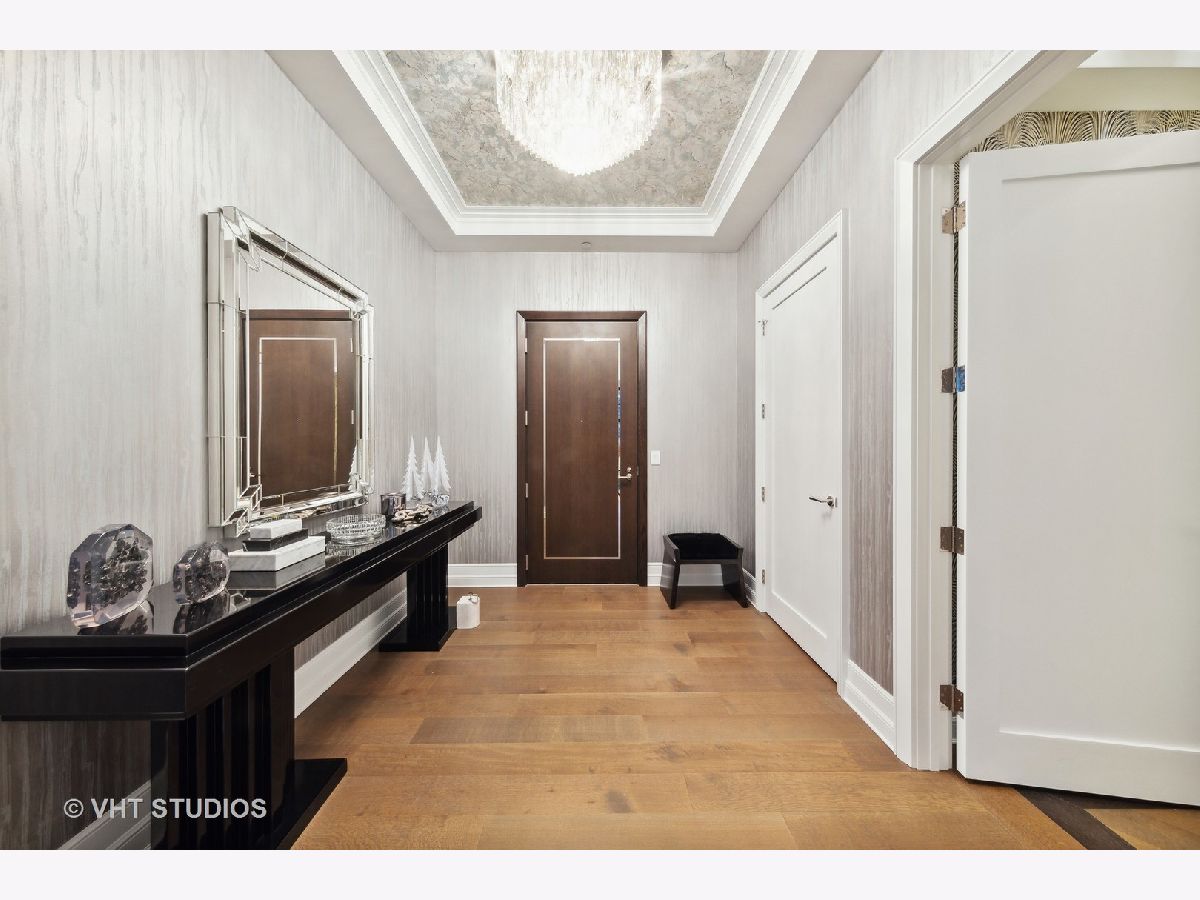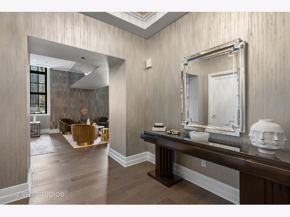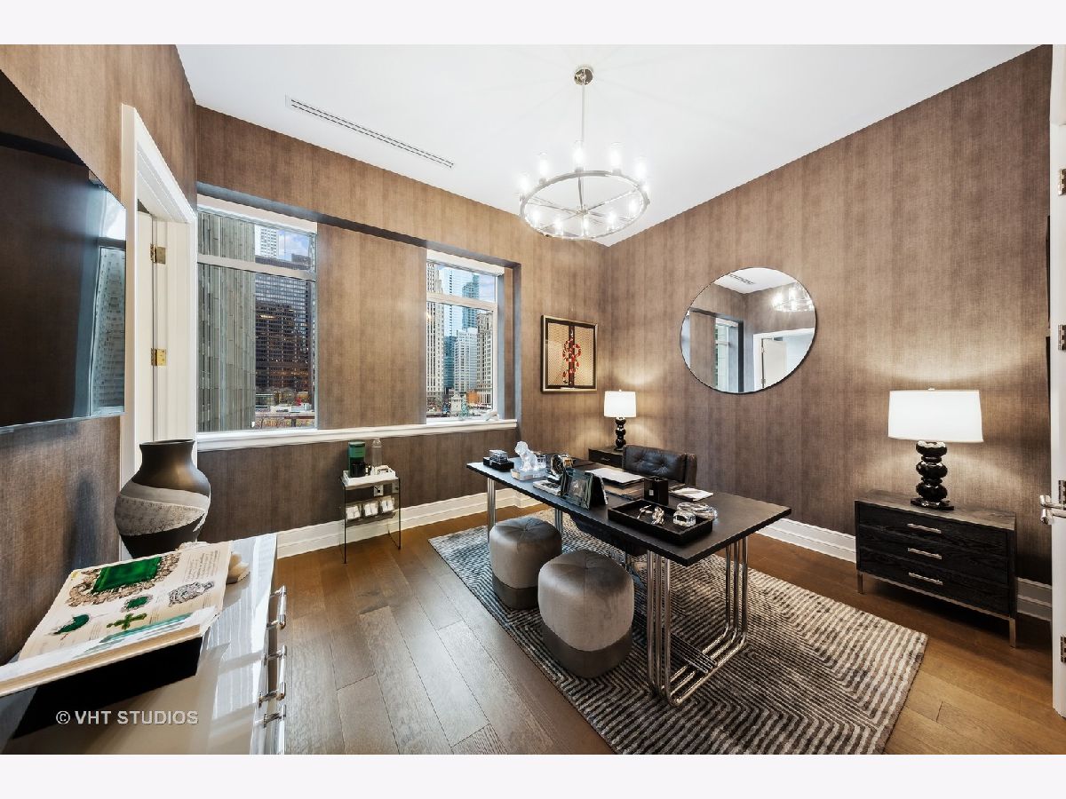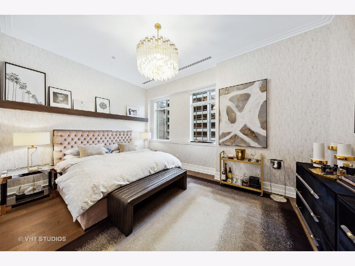 Experience the pinnacle of luxury living in this breathtaking 2,900 SQFT, 3-bedroom, 3.1-bath residence at the iconic Tribune Tower. Designed with impeccable attention to detail, this home seamlessly blends classic elegance with modern sophistication. A grand foyer, ideal for displaying an art collection, leads to a masterfully crafted floor plan adorned with intricate crown molding, soaring 12-foot ceilings, and wide-plank white oak hardwood floors. Expansive, elongated windows frame striking neo-Gothic architectural details while offering unobstructed south and west views of the private park, Chicago River, and skyline. The generously proportioned living space is designed for both refined entertaining and everyday comfort, featuring a stately marble fireplace, a bespoke entertainment center, and an elegant dining area with awe-inspiring river views. The chef's kitchen is a masterpiece, boasting quartzite countertops, an oversized island, white Shaker cabinetry, a wine refrigerator, and the finest appliances, including a Wolf range/oven, Sub-Zero refrigerator/freezer, and two Miele dishwashers. Retreat to the lavish primary suite, where city skyline views set the stage for relaxation. A custom walk-in closet complements the spa-inspired ensuite bath, a sanctuary wrapped in white marble with intricate inlays, heated floors, a dual vanity, freestanding soaking tub, and an oversized glass-enclosed shower. Two additional ensuite bedrooms echo the same level of refinement with luxurious finishes. Every detail of this residence has been thoughtfully curated, from $50K in custom closet designs to remote-controlled light-filtering and blackout blinds, designer chandeliers, sconces, imported tile accent walls, and exquisite accent wallpaper. Residents of the Tribune Tower enjoy world-class amenities, including a spectacular 75' indoor/outdoor pool, an expansive sun deck with Wolf appliances, a state-of-the-art fitness center, a golf simulator, private meeting rooms, a game room with billiards and board games, and two catering kitchens featuring Wolf and Sub-Zero appliances-perfect for hosting extraordinary events. Elevate your lifestyle with exclusive access to "The Crown" on the 25th floor, where a breathtaking 360-degree panorama of Chicago unfolds. This exceptional home includes three premium adjacent parking spaces-one equipped with an electric car charger-and two additional storage units. Indulge in the extraordinary. Schedule your private viewing today.