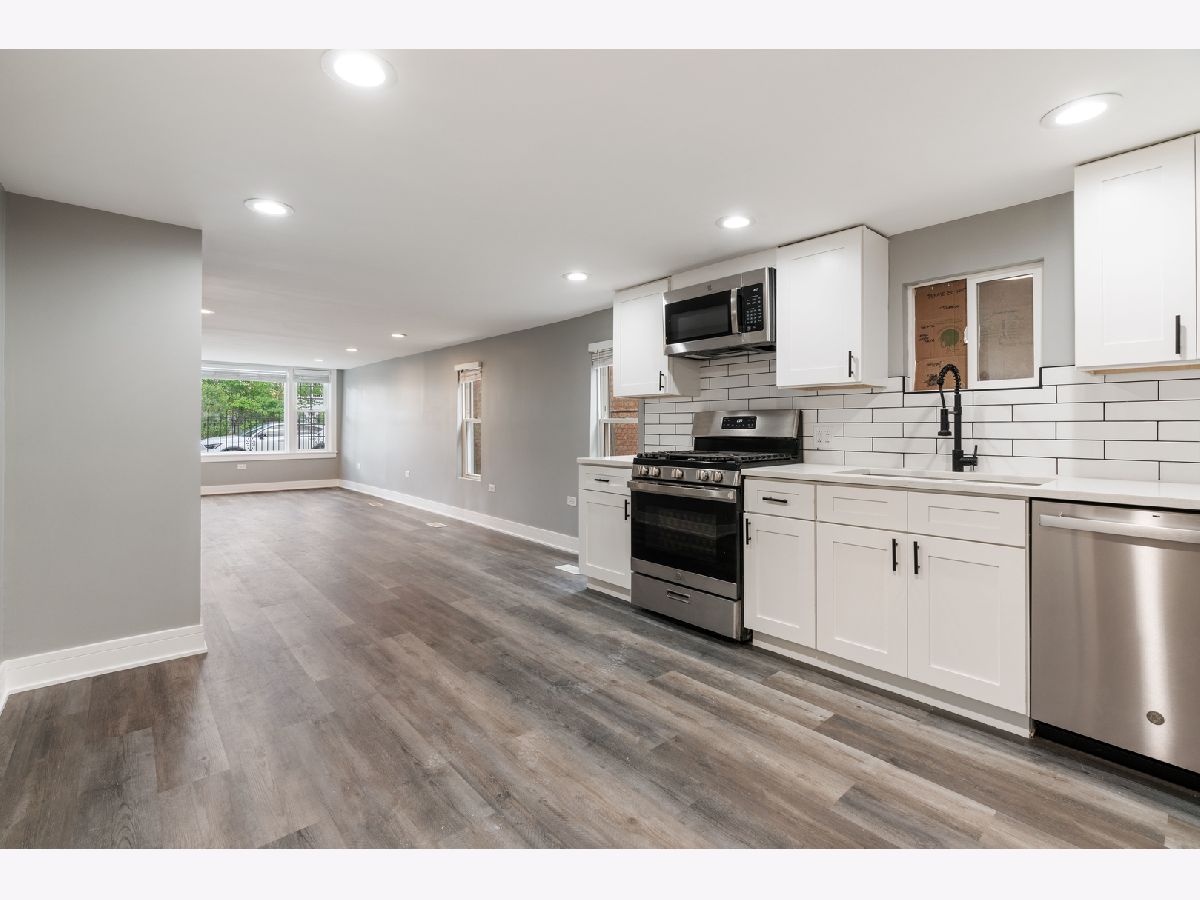 This renovated 3 bedroom 1 bath condo is a true gem located on a charming tree-lined street in Albany Park, a vibrant neighborhood celebrated for its cultural diversity, thriving local dining scene, walkable streets, and convenient access to top-rated schools, parks, and public transit. This modern ground floor unit only has a single step down to enter. The kitchen was recently redone with all stainless steel appliances, even a dishwasher! Also included is a private washer and dryer in the unit. Additionally, you have a large storage closet in the garage. Garage parking available for $200/month. 2 pet max with combined weight under 50lbs. Water is included in the rent, tenant pays gas/electric/internet. Application fee $100 per person. One time move in fee of $1100.