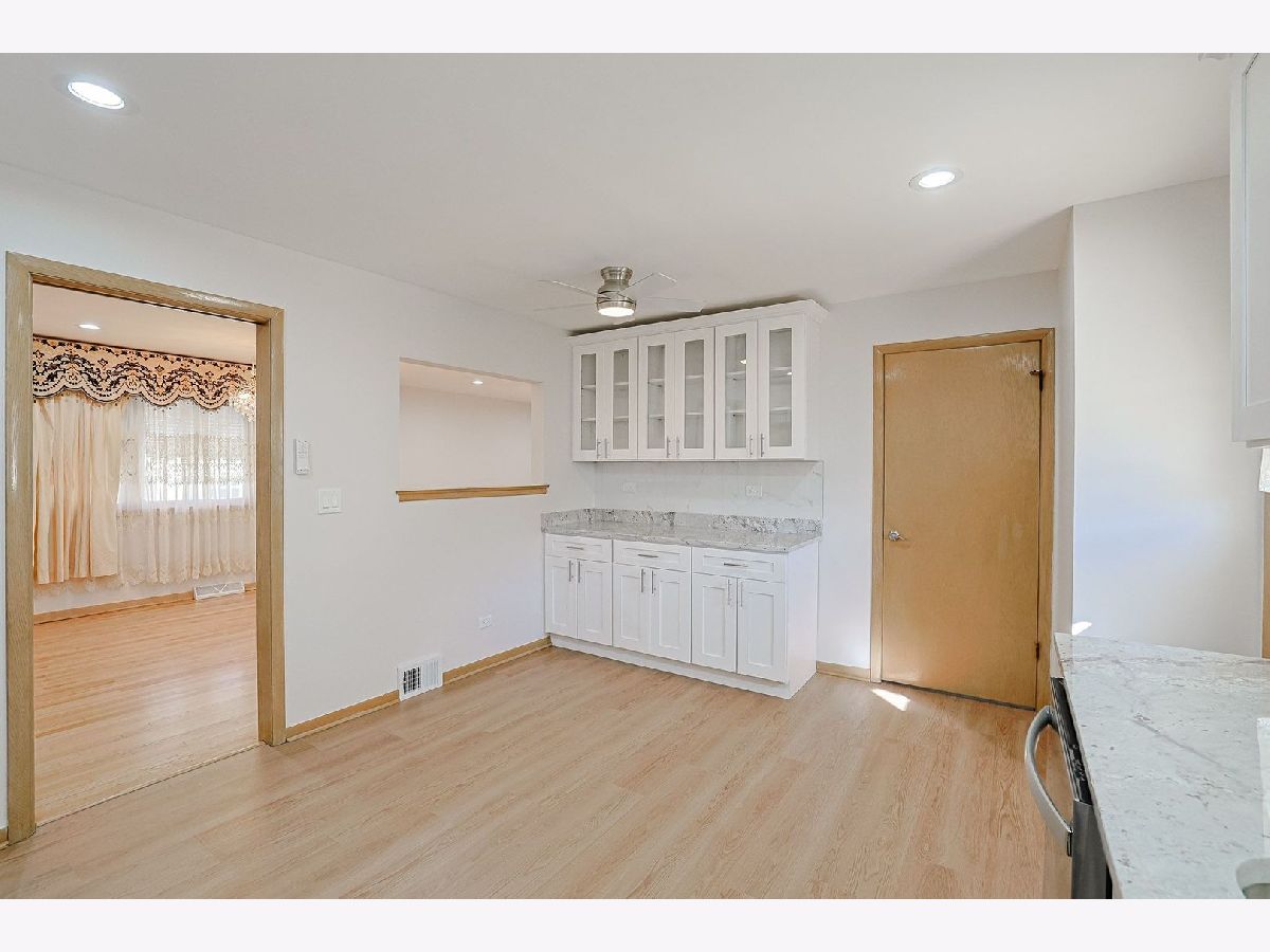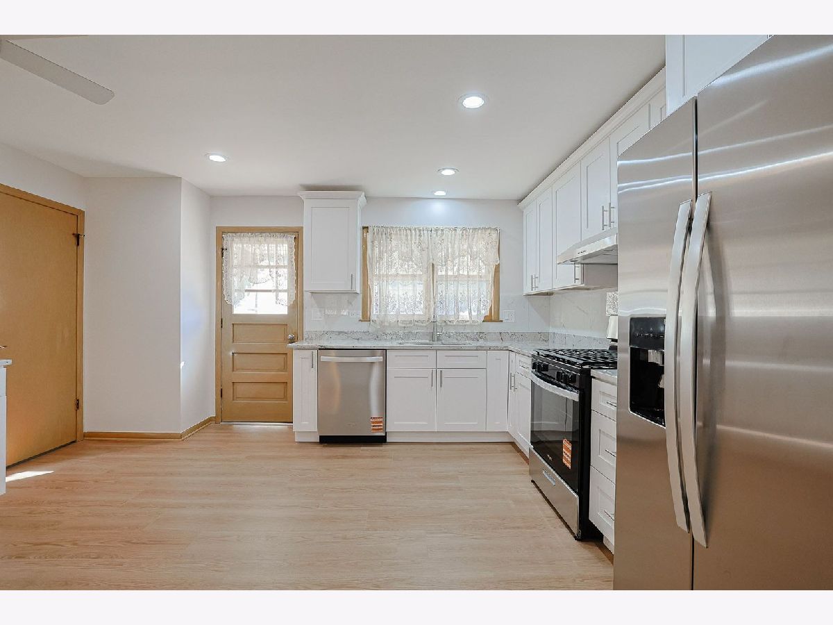 Stunning Brick Raised Ranch Modern Updates & Prime Location. Welcome to this beautifully updated all brick raised ranch, offering a perfect blend of classic charm and modern luxury. This spacious 3+1 bedroom, 2-bathroom home is move-in ready and situated in a quiet, sought-after neighborhood. Main Level Highlights Modern Kitchen: Completely updated with brand-new flooring, sleek white cabinetry, and elegant granite countertops. New Appliances: Fully equipped with new stainless steel kitchen appliances, including a side-by-side refrigerator, freestanding gas oven, and dishwasher. Refined Living Space: Features a large living room combined with an L-shaped dining room, perfect for entertaining. Hardwood Flooring: Freshly refinished hardwood floors run throughout all bedrooms, the living room, and the dining room. Freshly Painted: The entire home has been updated with a fresh, contemporary paint palette. Expansive Finished Basement High Ceilings: Rare 92-inch ceiling height creates an airy, open feel. Premium Finishes: Stunning 24 x 48-inch porcelain tile flooring and fresh paint throughout. Natural Light: Plenty of windows and a convenient outside exit door. Outdoor Space & Parking Garage: Attached 2-car garage for easy access, storage and a provision for EV charging. Backyard Oasis: Enjoy a quiet evening on the concrete patio overlooking a beautifully maintained backyard. Unbeatable Location Commuter Friendly: Less than 8 miles from O'Hare International Airport. Schools: Located very close to Devonshire Elementary School, Friendship Middle School and Elk Grove High school. Convenience: Minutes away from a wide variety of shopping and dining options. Sold As-Is