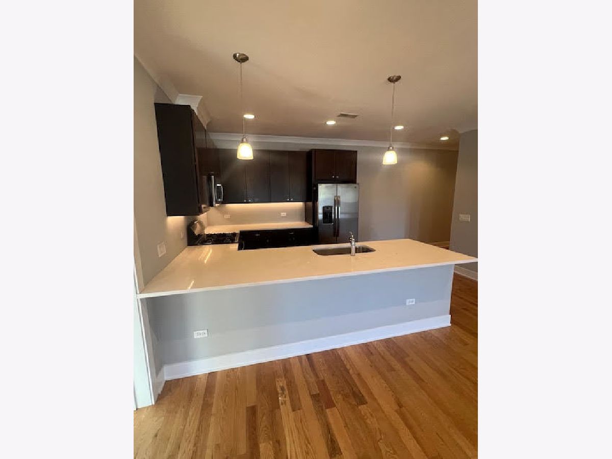 Discover modern elegance in this 3-bedroom, 2-bath residence located in a boutique newer construction building. Perfectly positioned within walking distance of both the CTA Blue Line and Metra, this home combines refined design with unmatched accessibility. A private elevator ride brings you to the expansive rooftop deck, an ideal setting for hosting guests or unwinding with skyline views. Inside, the open layout highlights wide-plank hardwood floors, abundant natural light, and a chef's kitchen featuring quartz counters and premium stainless-steel appliances. Each bedroom offers generous proportions, Enjoy year-round comfort with central heating and cooling, plus the ease of in-unit laundry. Step onto your private balcony to enjoy your own outdoor escape.