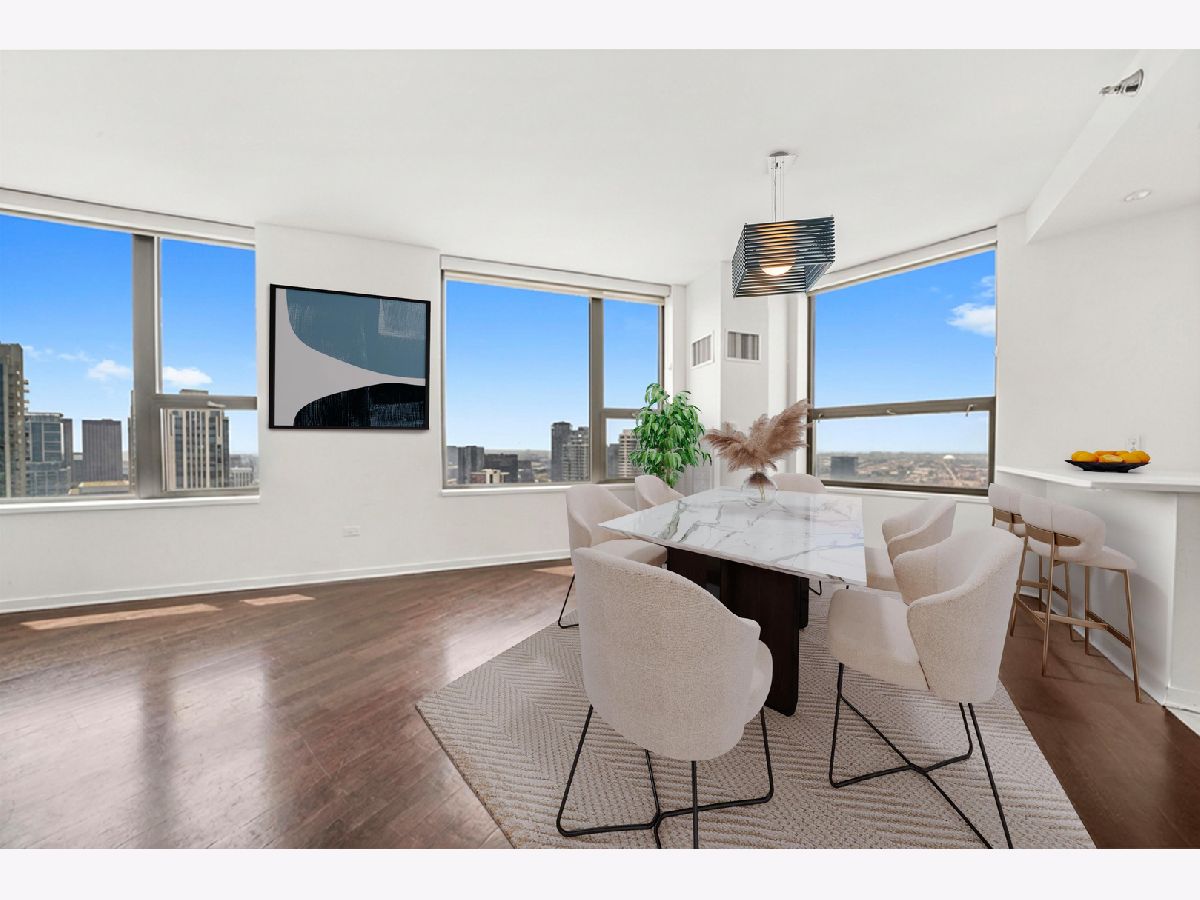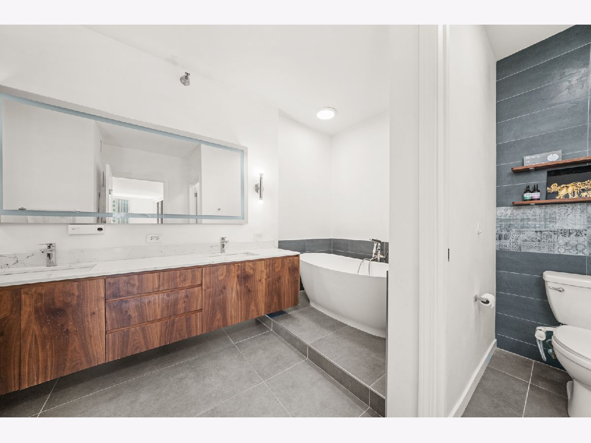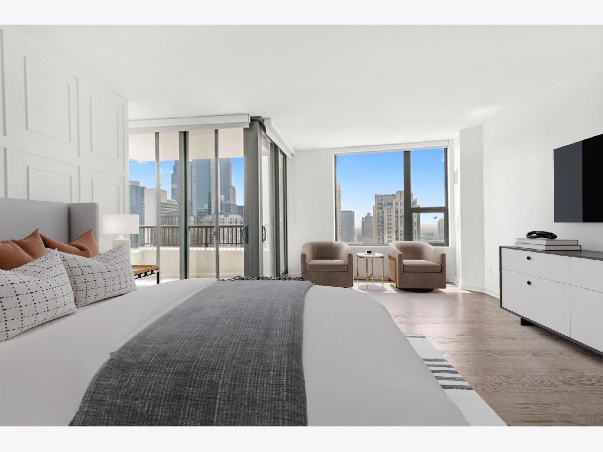 Absolutely stunning and rarely available, this expansive 4-bedroom, 3.1-bath residence in Kinzie Park Tower offers commanding views of Chicago's iconic skyline. This beautifully renovated home features four spacious bedrooms, two oversized private terraces, two garage parking spaces, and extensive upgrades throughout. The gorgeous open kitchen has been thoughtfully updated with painted gray cabinetry, quartz countertops, subway tile backsplash, induction cooktop, and stainless-steel appliances. Rich dark flooring, sophisticated lighting, and refined finishes add warmth and elegance throughout the home. The expansive primary suite offers a true retreat with a slate bathroom featuring a separate tub and shower, along with a massive walk-in closet. Floor-to-ceiling wraparound windows provide breathtaking 180-degree views facing east, south, and west, filling the home with natural light and showcasing Chicago's spectacular skyline. Kinzie Park is a premier gated riverfront community offering exceptional amenities including 24-hour attended entry and door staff, free guest parking, a state-of-the-art fitness center, outdoor pool, landscaped gardens, private Riverwalk access, bike room, social room with full kitchen, and on-site management. One heated garage parking space INCLUDED! One additional garage parking space is available for $300/month. Located in the vibrant Fulton River District, this home puts you steps from some of Chicago's best dining, shopping, and entertainment. Enjoy acclaimed restaurants such as Gibsons Italia, Carnivale, and Piccolo Sogno, with East Bank Club and Jewel-Osco nearby. With a Walk Score of 92, transportation is incredibly convenient with easy access to Ogilvie Transportation Center, the Clinton Green & Pink Line, multiple bus routes, and both O'Hare and Midway airports within approximately 25 minutes. Explore the property in 3D-click the 3D tour button to walk through every detail of this remarkable home.