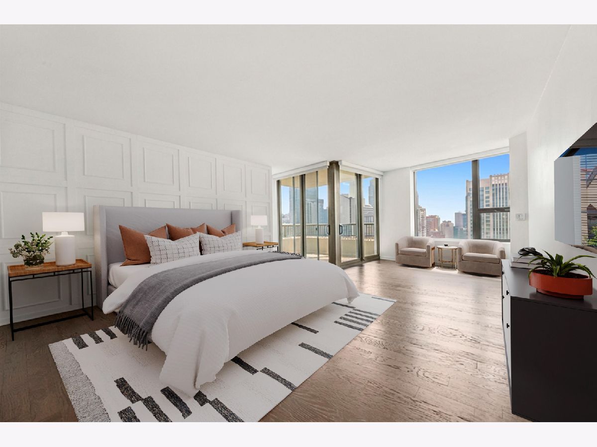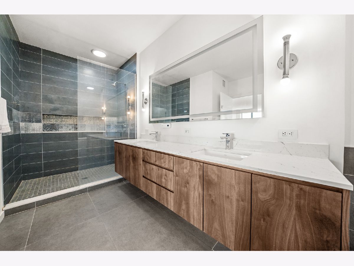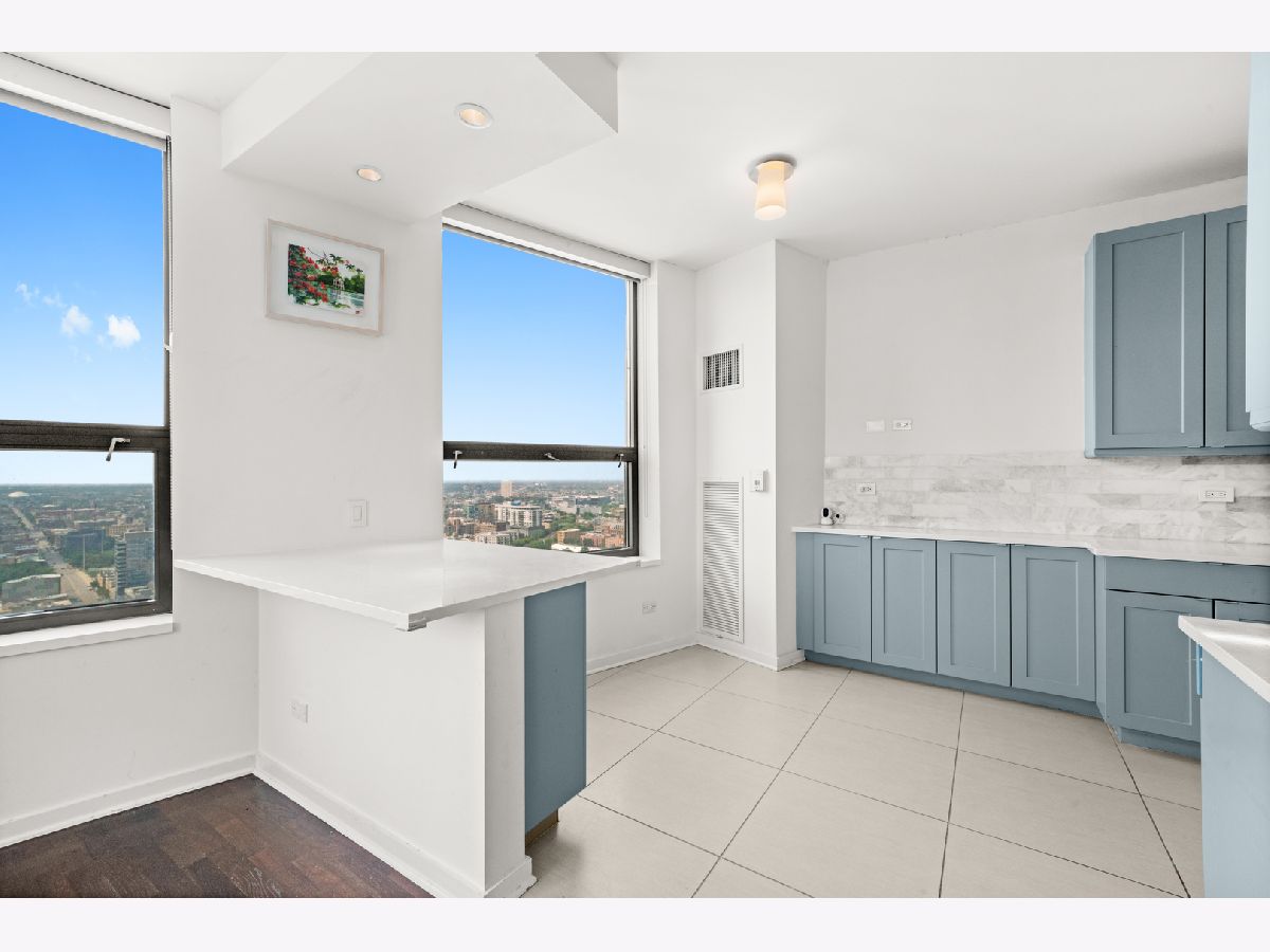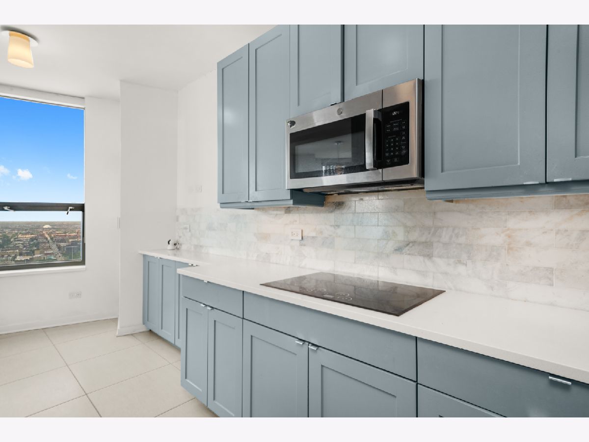 Absolutely stunning and rarely available, this expansive 4-bedroom, 3.1-bath residence in Kinzie Park Tower offers commanding views of Chicago's iconic skyline. This beautifully renovated home features four spacious bedrooms, two oversized private terraces, two garage parking spaces, and extensive upgrades throughout. The gorgeous open kitchen has been thoughtfully updated with painted gray cabinetry, quartz countertops, subway tile backsplash, induction cooktop, and stainless-steel appliances. Rich dark flooring, sophisticated lighting, and refined finishes add warmth and elegance throughout the home. The expansive primary suite offers a true retreat with a slate bathroom featuring a separate tub and shower, along with a massive walk-in closet. Floor-to-ceiling wraparound windows provide breathtaking 180-degree views facing east, south, and west, filling the home with natural light and showcasing Chicago's spectacular skyline. Kinzie Park is a premier gated riverfront community offering exceptional amenities including 24-hour attended entry and door staff, free guest parking, a state-of-the-art fitness center, outdoor pool, landscaped gardens, private Riverwalk access, bike room, social room with full kitchen, and on-site management. One heated garage parking space INCLUDED! One additional garage parking space is available for $300/month. Located in the vibrant Fulton River District, this home puts you steps from some of Chicago's best dining, shopping, and entertainment. Enjoy acclaimed restaurants such as Gibsons Italia, Carnivale, and Piccolo Sogno, with East Bank Club and Jewel-Osco nearby. With a Walk Score of 92, transportation is incredibly convenient with easy access to Ogilvie Transportation Center, the Clinton Green & Pink Line, multiple bus routes, and both O'Hare and Midway airports within approximately 25 minutes. Explore the property in 3D-click the 3D tour button to walk through every detail of this remarkable home.