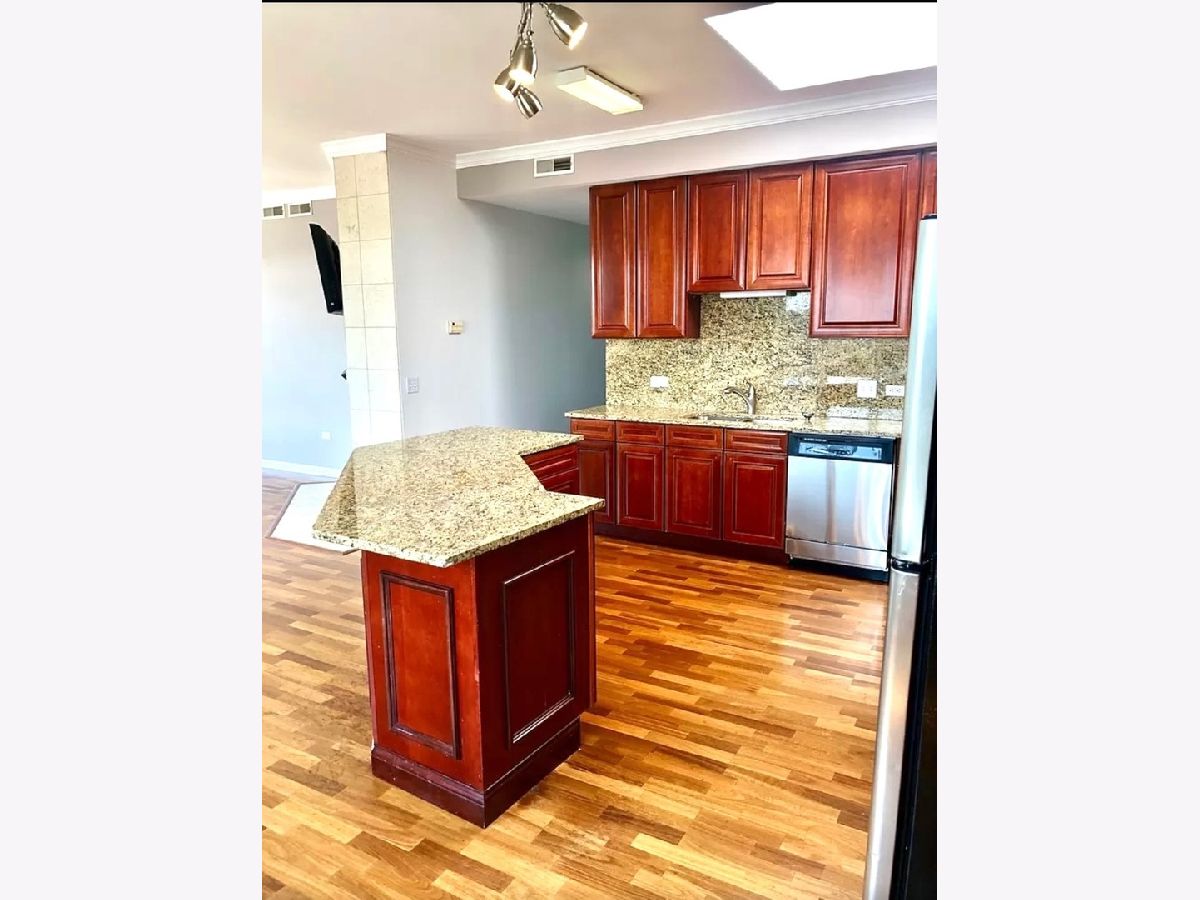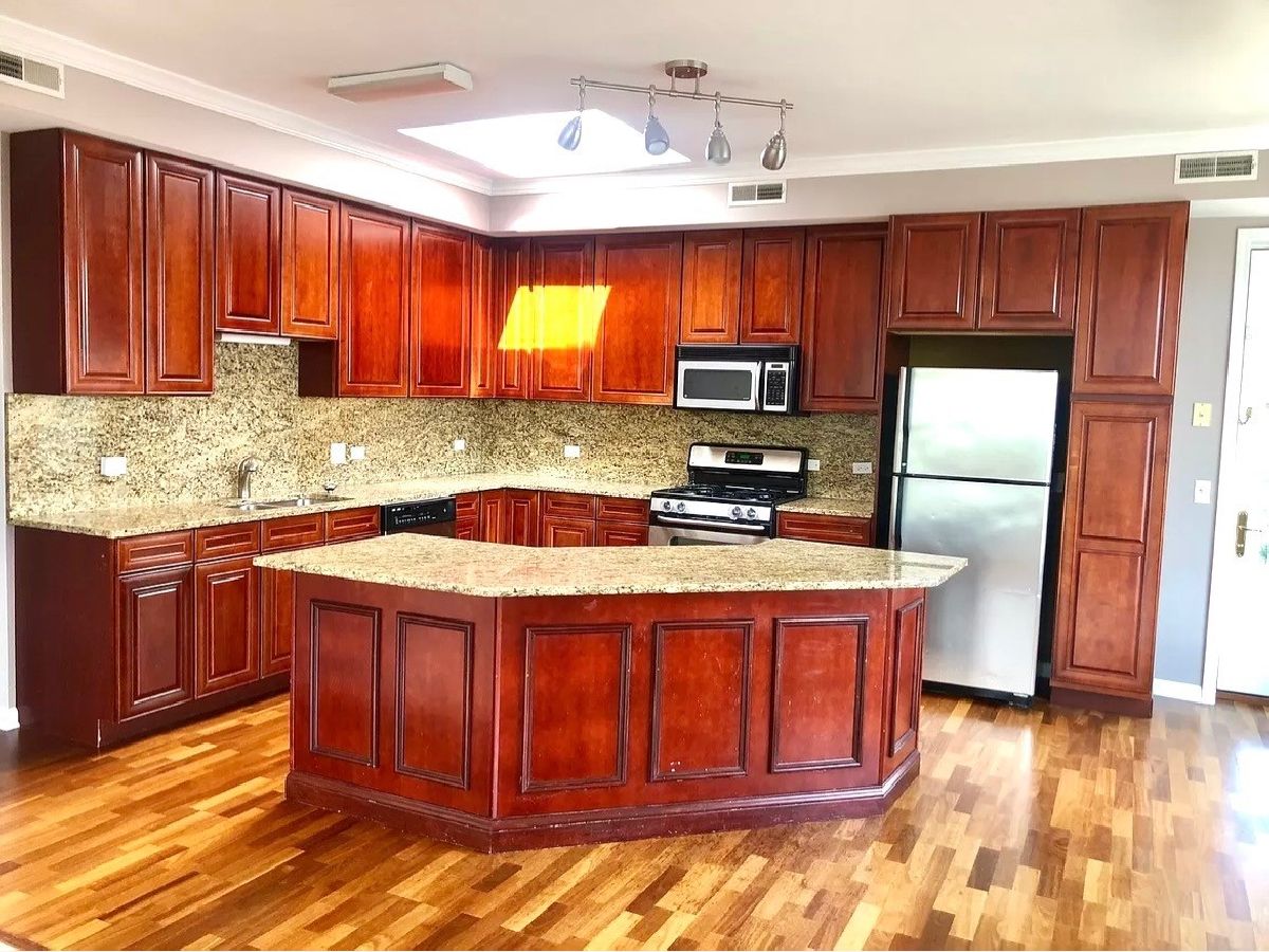 HUGE TOP FLOOR PENTHOUSE WITH SKYLINE VIEWS! OPEN FLOOR PLAN! RENT INCLUDES: GAS/WATER/HEAT//WASHER/DRYER IN UNIT. INDOOR HEATED GARAGE PARKING SPACE INCLUDED, PERMIT PARKING & FREE STREET PARKING IN AREA. ELEVATOR BUILDING- HARDWOOD FLOORS THROUGHOUT ,MAPLE KIT CABINETS, GRANITE COUNTER TOP, STAINLESS STEEL APPLIANCES,LARGE EAT IN SPACE, DINING & LIVING AREAS. MASTER BATH HAS LARGE SOAKING TUB AND SEPARATE SHOWER W/ BEAUTIFUL MARBLE TILE, AND LARGE LINEN CLOSET. MASTER BEDROOM HAS LARGE WALK- IN CLOSET. BALCONY ACCESS FROM BEDROOM AND KITCHEN/DINING. SKYLIGHTS IN KITCHEN! Near Blue line and 90/94 Express way!CTA @ Corner! Great Transportation Access! NO PETS.