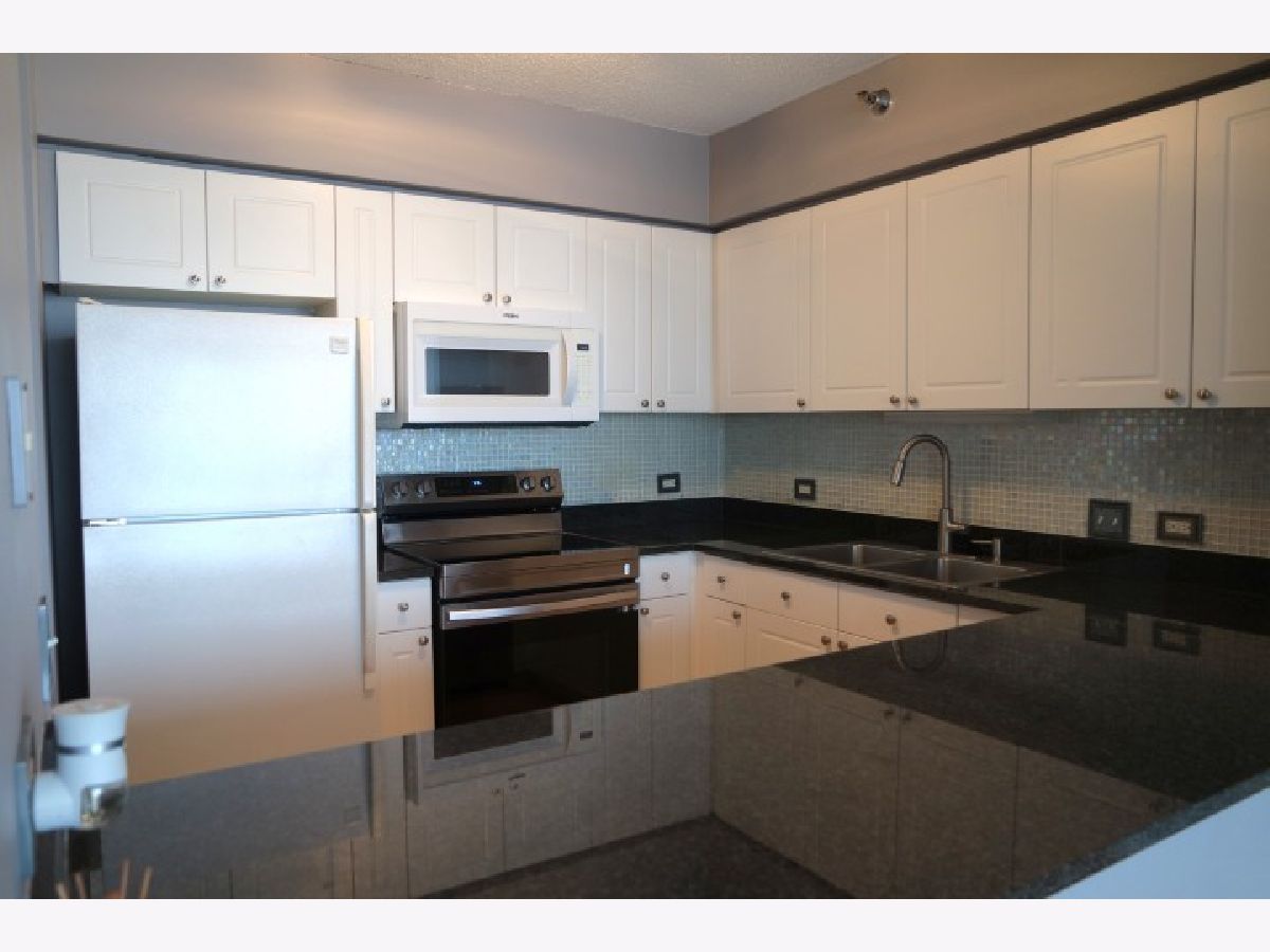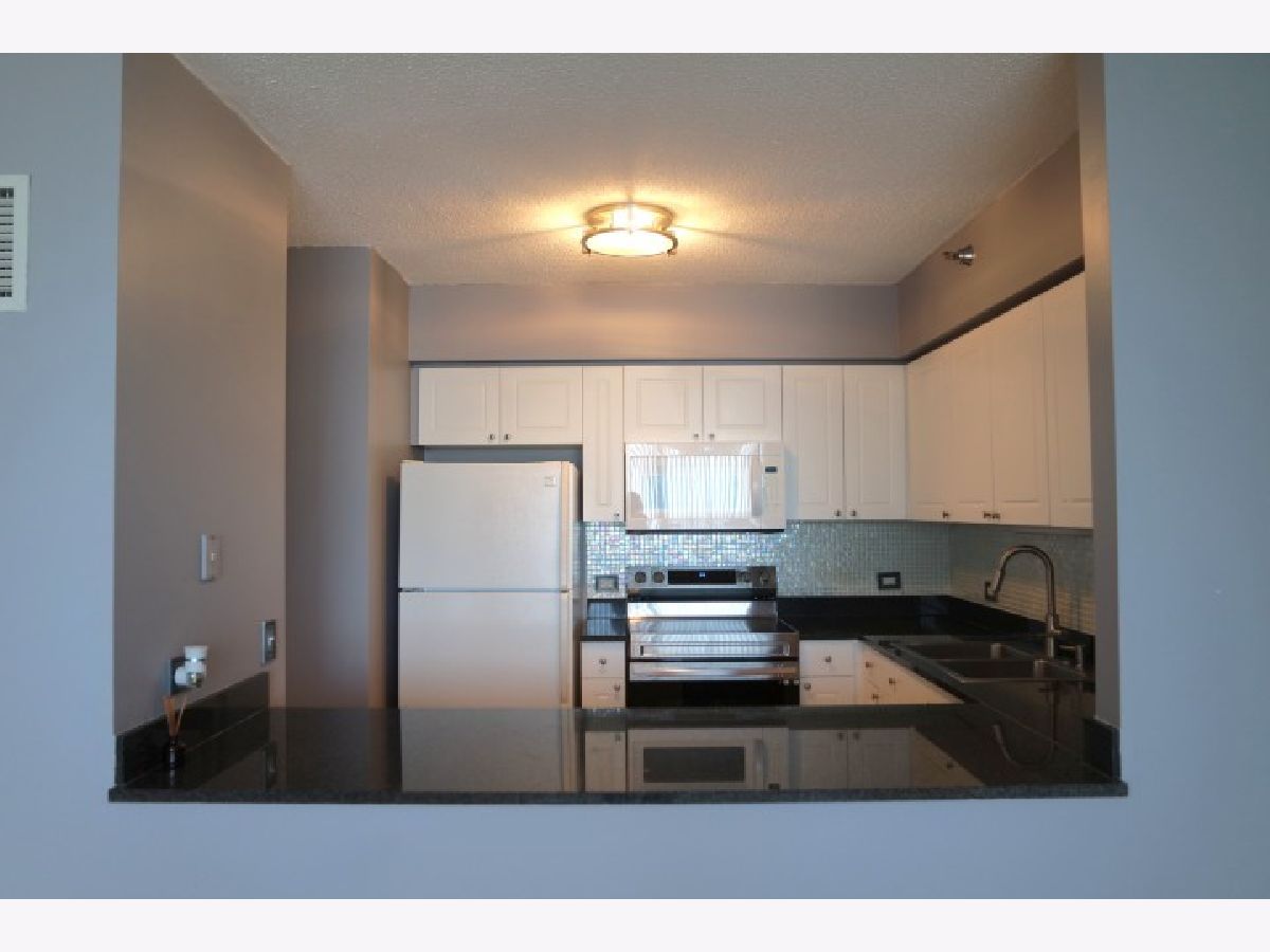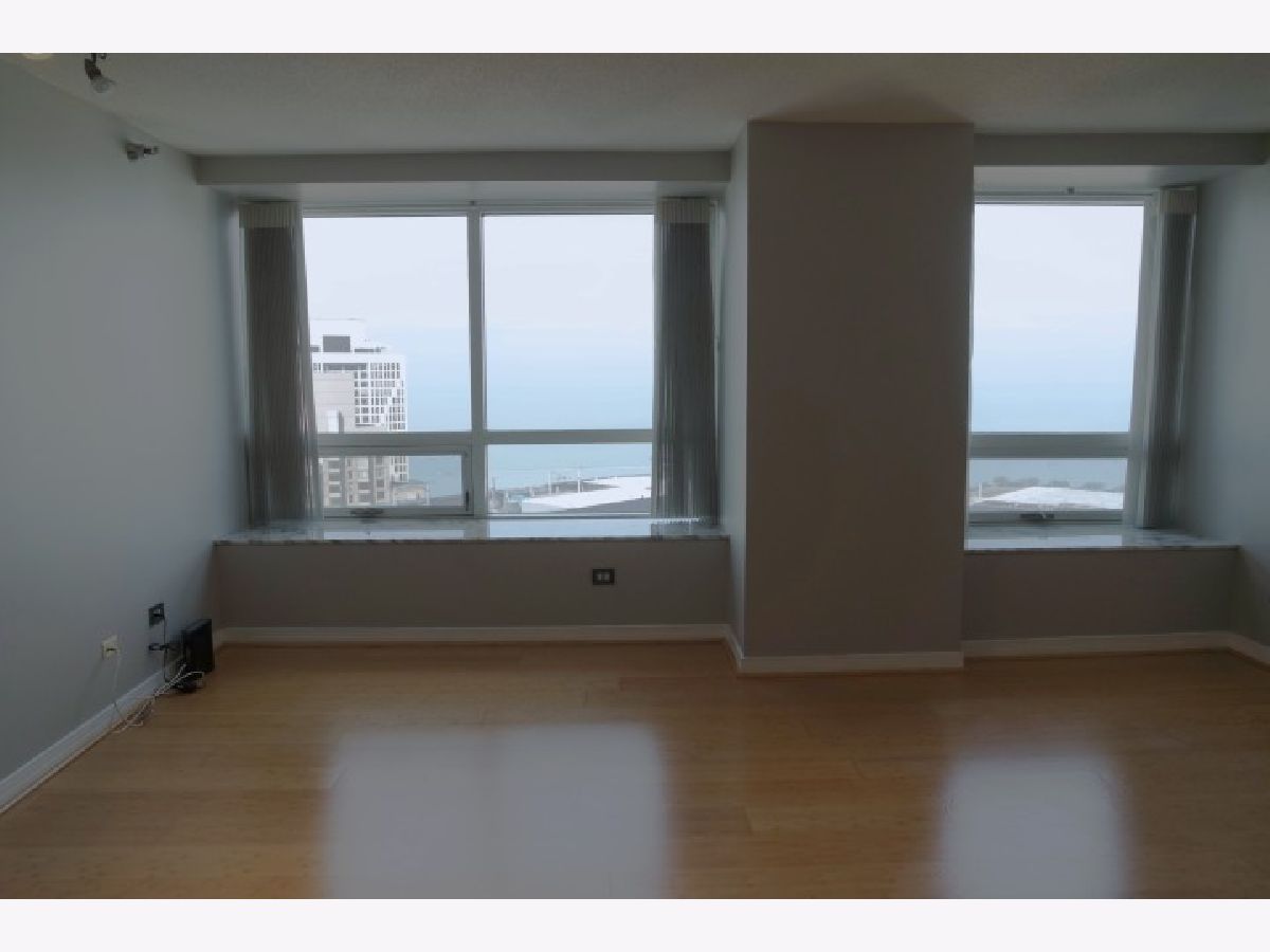 Stylish high floor with lake view studio at River East Center Condominiums. This spacious 650 sqft studio has a large open kitchen with breakfast bar and plenty of cabinet space. The over-sized living space can accommodate a comfortable furniture arrangement with bed. Large dressing area with ample closet space. You will enjoy the marble window ledges perfect for seating and enjoying the breathtaking views of Lake Michigan. Full Amenity building with 24-hour door staff, exercise room, entertainment suite and Outdoor Terrace with private seating areas and grill areas. Storage locker included. Rental Parking Available. Condo is available for April 1,2026 No Pets Move-in/out is $400 (Monday-Friday) and $525 (Sat)