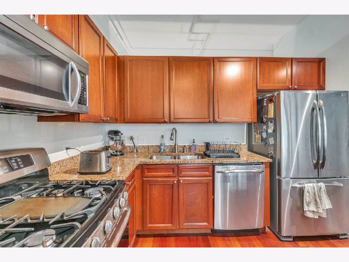 Indoor garage parking included in monthly rent. Large lofted 1 Bed, 1 Bath condo with an abundance of natural light. Located in sought after Loop high rise! Unit includes jacuzzi tub, granite counter tops, stainless steel appliances, hardwood floors, fireplace, IN UNIT washer & dryer, oversized balcony and floor to ceiling windows. Building amenities include 24 hr doorman, fabulous rooftop deck, storage unit, fitness center, bus stop, business center, hospitality room. Great location! 5 minutes away from CTA stations, right beside the I90 highway. Very well maintained and safe building.