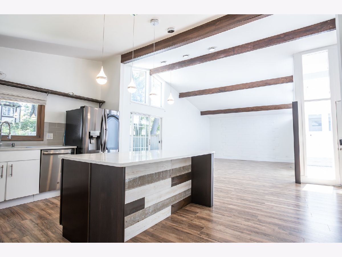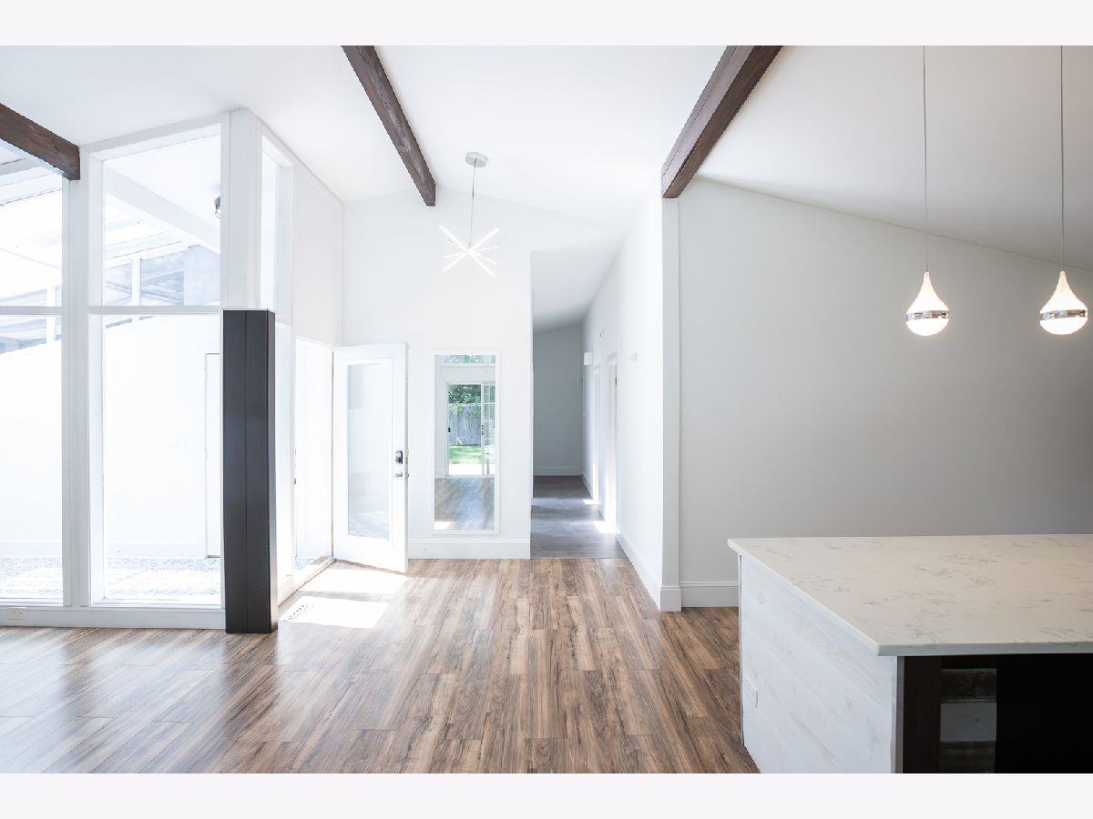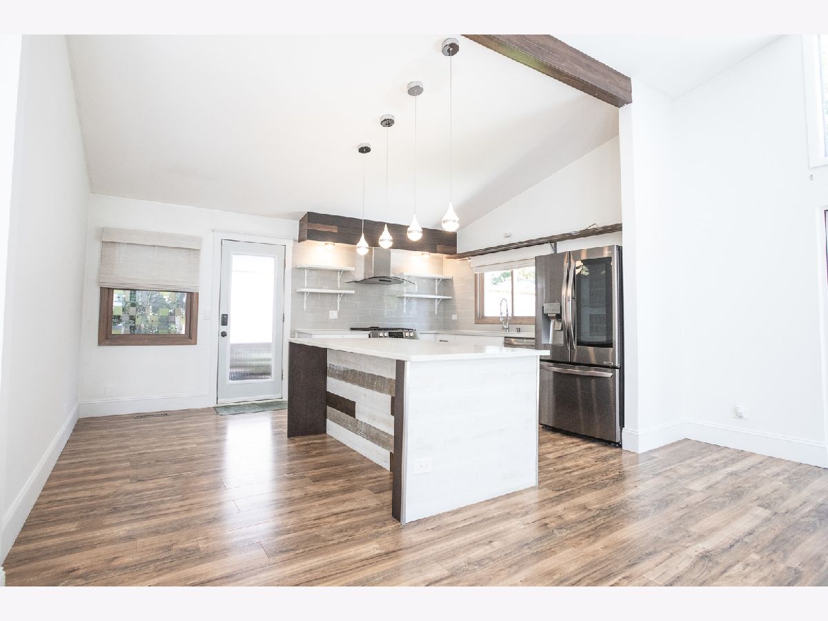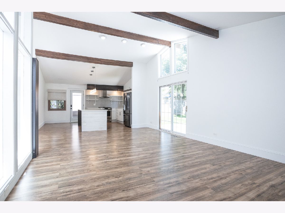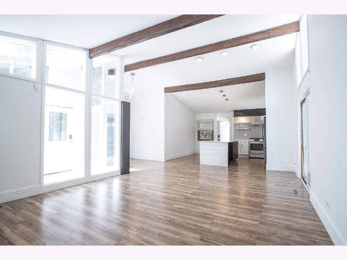 Welcome to your new home at 523 Green Bay Rd in Highland Park's coveted Ravinia Highlands-an impeccably updated 1960's mid-century ranch that radiates charm and contemporary style. This 3-bedroom, 2-bath retreat welcomes you with a bright, glass-enclosed atrium-a stunning and luminous entryway that sets the tone for the rest of the home. Step inside to discover a light and airy open floor plan, where vaulted ceilings and exposed wood beams lend architectural interest alongside fresh paint and gleaming new floors throughout. The fully renovated kitchen is a chef's delight, featuring sleek stainless steel appliances, quartz countertops, and a spacious island perfect for casual meals or entertaining. Both bathrooms have been upgraded: the primary suite offers a walk-in closet and a beautifully appointed, modern bath, while the hall bath shines with a new vanity, mosaic tile backsplash, and a skylight-infusing everyday routines with luxury. Outside, enjoy your newly sodded backyard, ideal for relaxation, and a convenient one-car garage with ample storage. No pets, no smoking. Available immediately at $3,750/month, with a one-month security deposit required. Experience the best of Ravinia living-just walking distance to Rosewood Beach, Ravinia Festival, shops, restaurants, and the Green Bay Trail-perfectly combining style, convenience, and comfort.