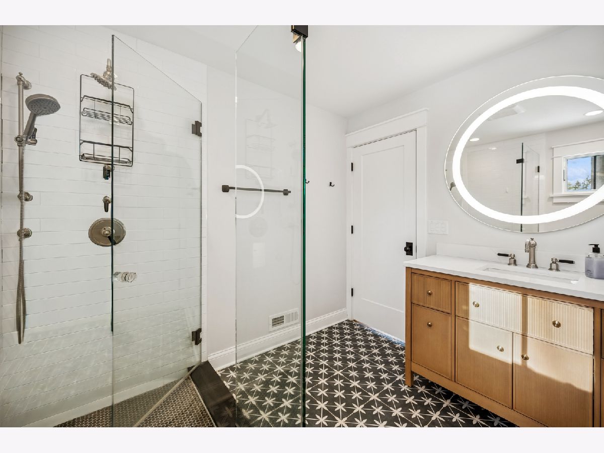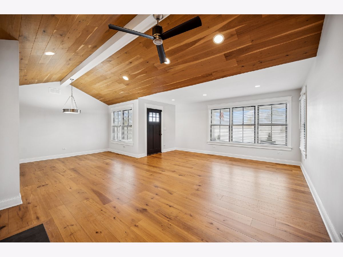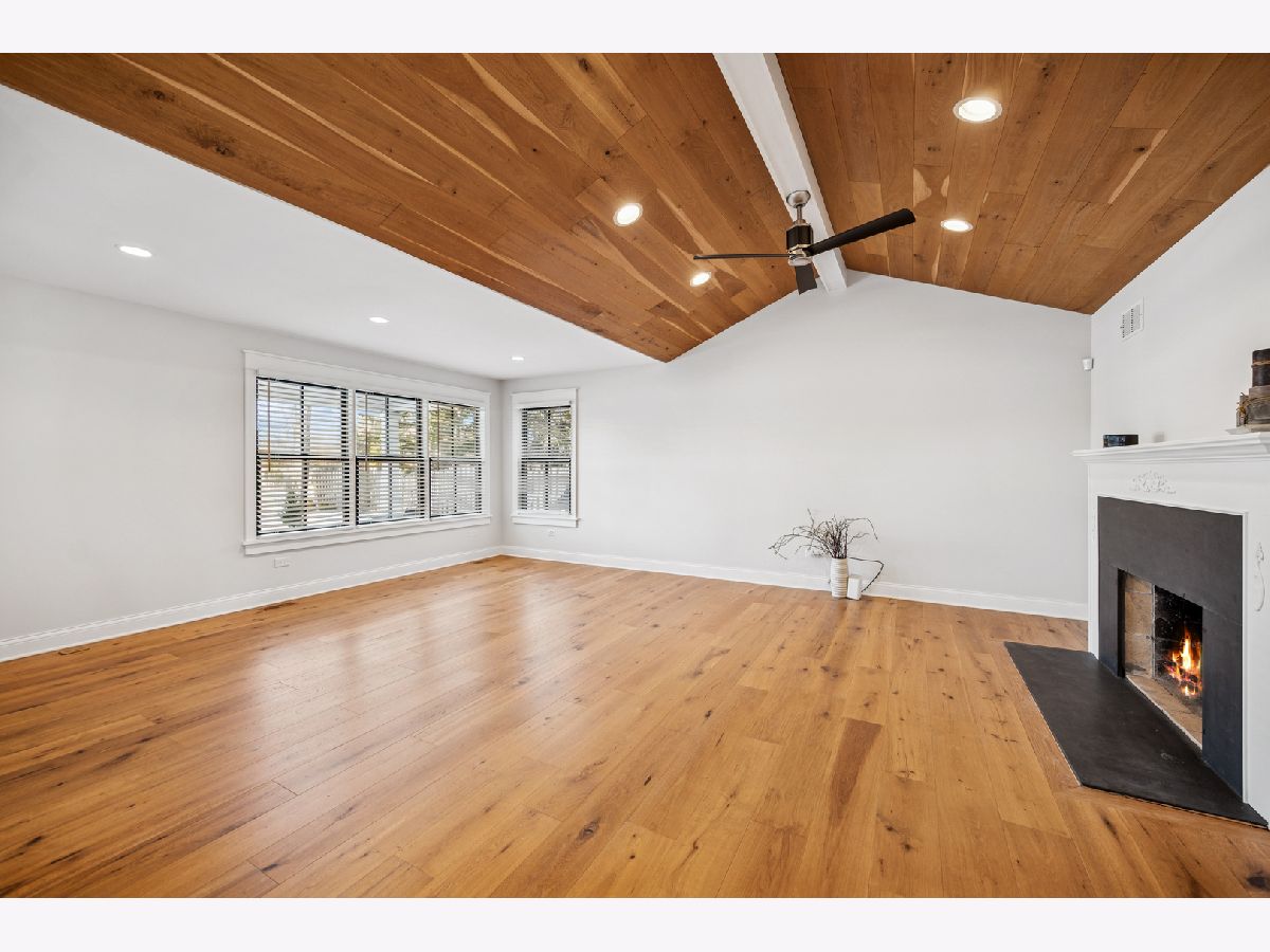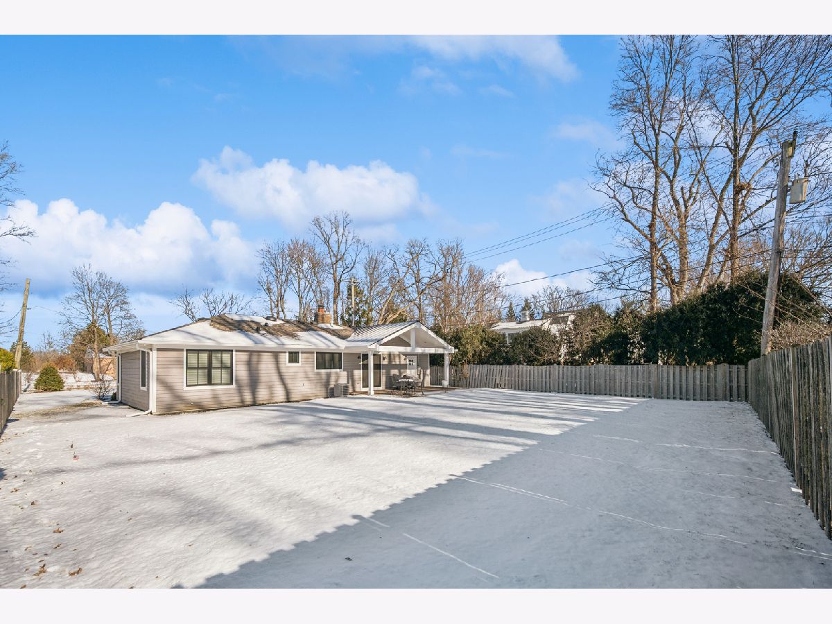 Welcome to this "JEWEL BOX" ranch home updated inside and out. Meticulous throughout, this home offers a large open living and dining room with vaulted ceiling. Main living space and bedrooms have white oak floors with a subtle color stain. Large, newer gourmet kitchen with top-of-the line appliances and loads of counter space for the chef and entertaining. Kitchen has French doors that open to the back brick patio and large backyard with wonderful Southern exposure. Oversized deluxe bathroom with high-end fixtures and shower. Enjoy sitting out front on the covered patio to watch golfers come and go from Deerpath Gold Course. The garage is deep and offers extra space for storage. The wood burning fireplace is for decoration purposes only. Move right in and enjoy this perfect location that is walk to town, train and shops. Home was totally rehabbed in 2018 with further upgrades in 2025.