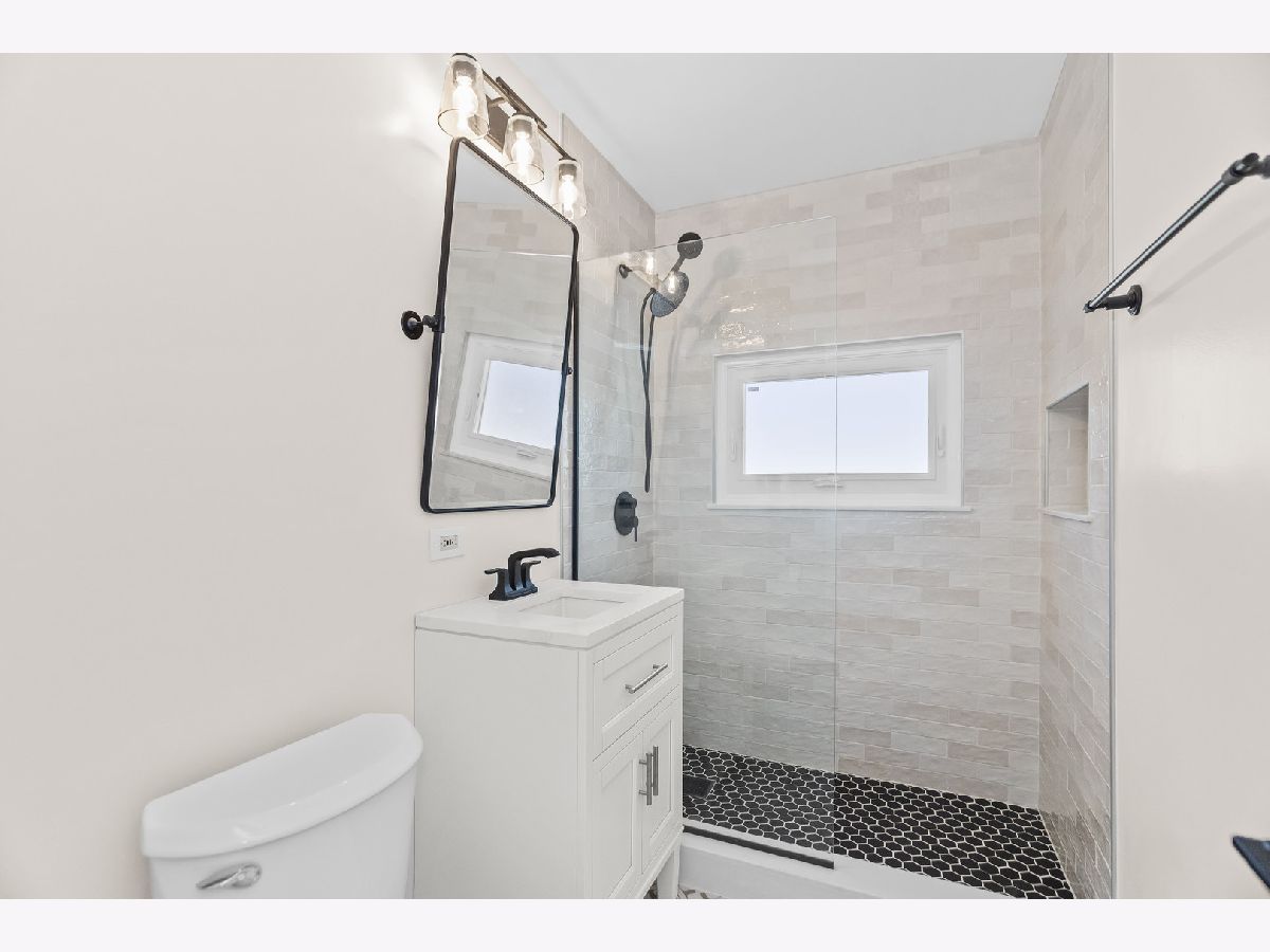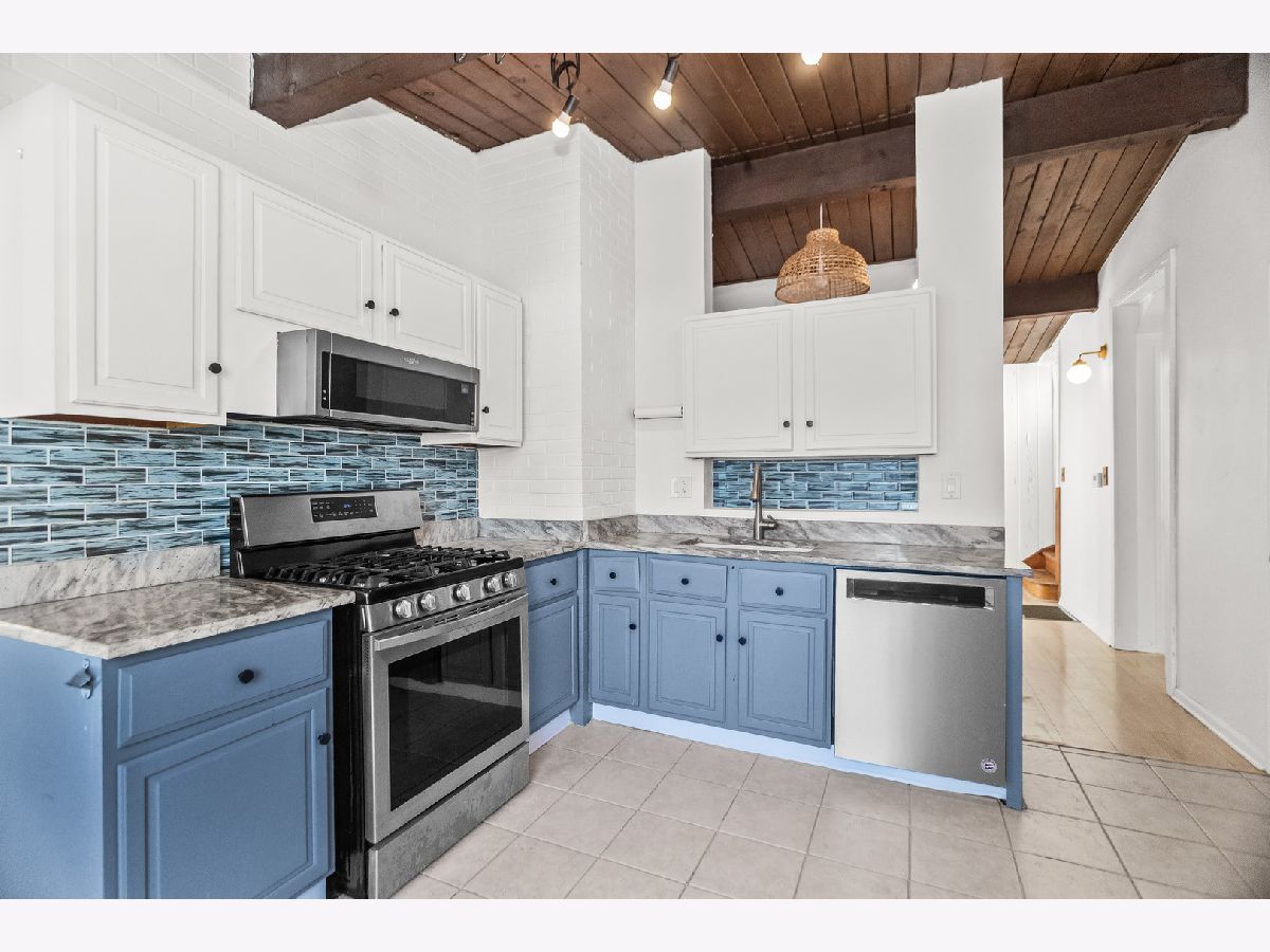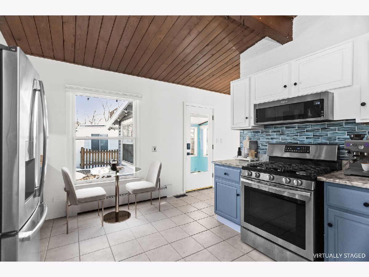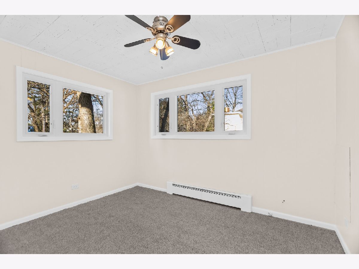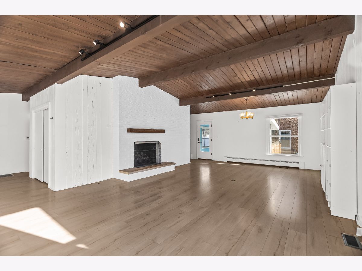 This charming mid-century home offers 4 bedrooms, 2 updated baths, and a thoughtful blend of character, light, and modern comfort. Step inside and feel the difference. Updated energy-efficient windows, fresh paint in all bedrooms and baths, and abundant natural light throughout. The stunning great room features 10-ft vaulted ceilings, exposed beams, Pecky cypress walls, and a floor-to-ceiling brick gas fireplace-perfect for everyday living and entertaining. The dining area flows into the updated kitchen with stainless steel appliances, Italian granite countertops, two-tone cabinetry, blue glass backsplash, and a walk-in pantry/baker's nook. The main level includes two bedrooms with custom closets, an updated bath, new carpet, and a versatile 3-season room ideal for an office or sun porch. Upstairs are two additional bedrooms (including one with an oversized closet), and a brand new Bosch mini-split for added comfort. A fully renovated bath, brand new windows flooding the floor with natural light. A fully finished basement (429 s.f.) offers flexible living space with many built-ins, storage, a second fridge, and newer washer/dryer. Set across from a forest preserve with walking and biking trails, the home also features a large fenced yard, brick-paver patio, pergola, and one-car garage. Major updates include a recent 30-year roof and gutters (2024), finished basement, 200-amp electrical, and EverDry waterproofing. Prime Highland Park location-near the Chicago Botanic Garden, forest preserves, great schools and walking distance from Metra! Warm, bright, and move-in ready. No pets, no smokers, please.